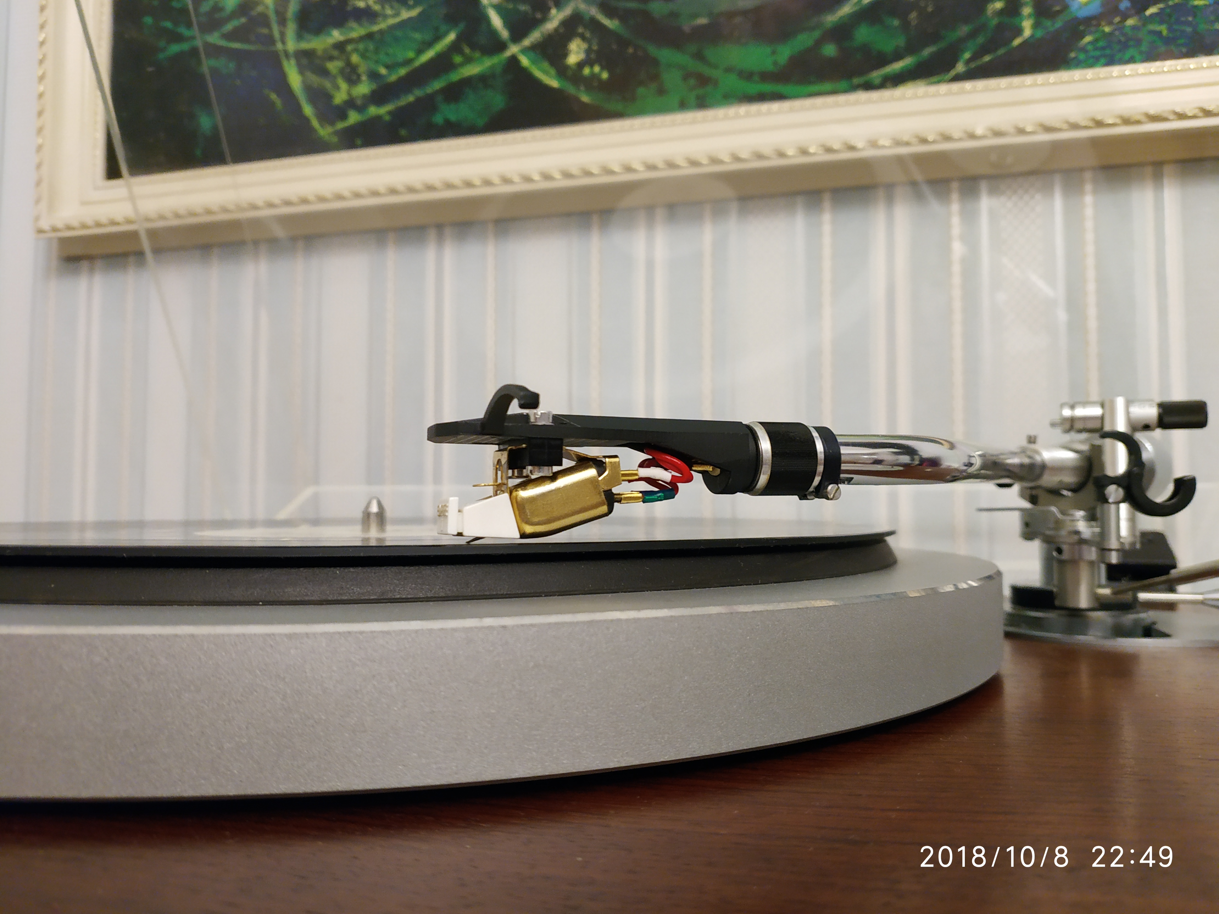 А как поставишь голову, тонарм немного опусти, чтобы он был параллельно пластинке.