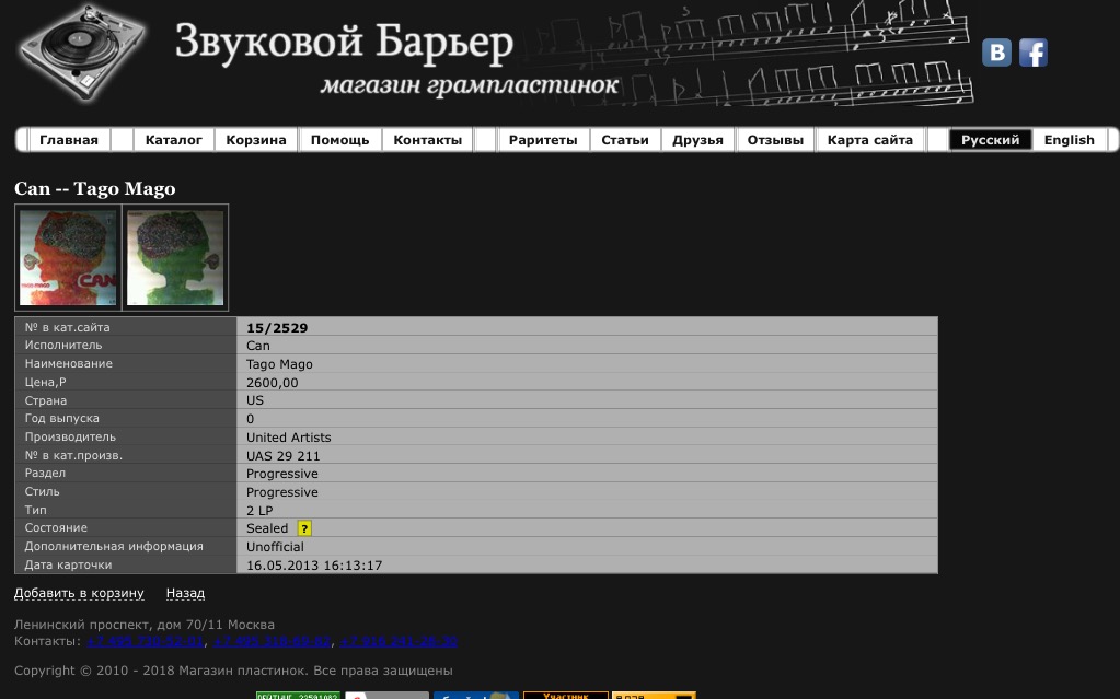 Что за зверь (не в плане музыки, а в плане качества) Can "Tago Mago" (unofficial version)? В самом магазине говорят, что unofficial version = бутлег и обычно плохого качества. В свое время я эту пластинку себе не оставил, в компакт-диск подарил. Сейчас интерес возобновился.