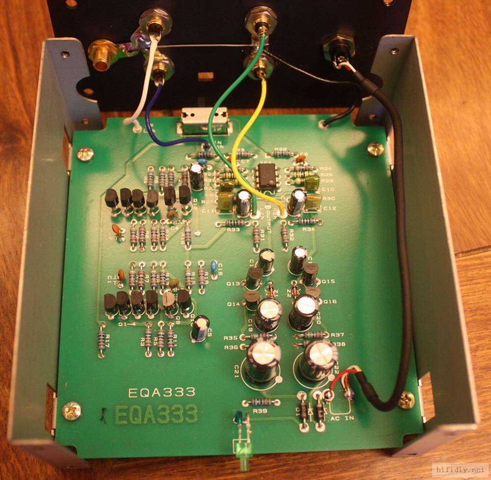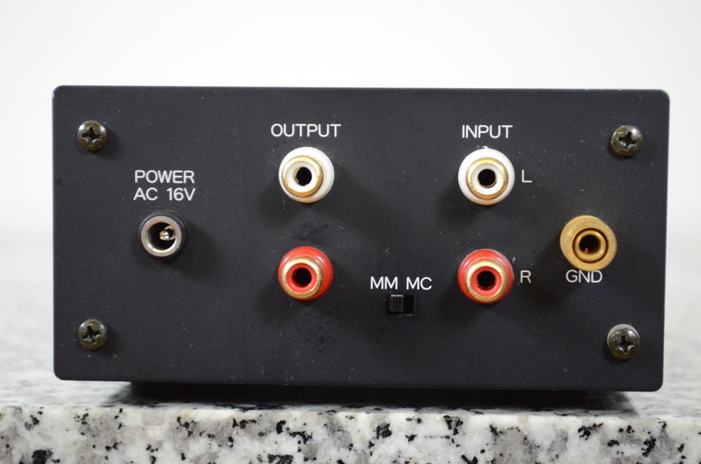 Схемотехника усилительной части фоно корректора состоит из параллельно используемых двухступенчатых полевых транзисторов прямой связи, для уменьшения уровня шумов на входе для MС картриджей, и полевых управляющих транзисторов на входе ММ. При этом используется стабилизированное питание с выносным адаптером на 220В.