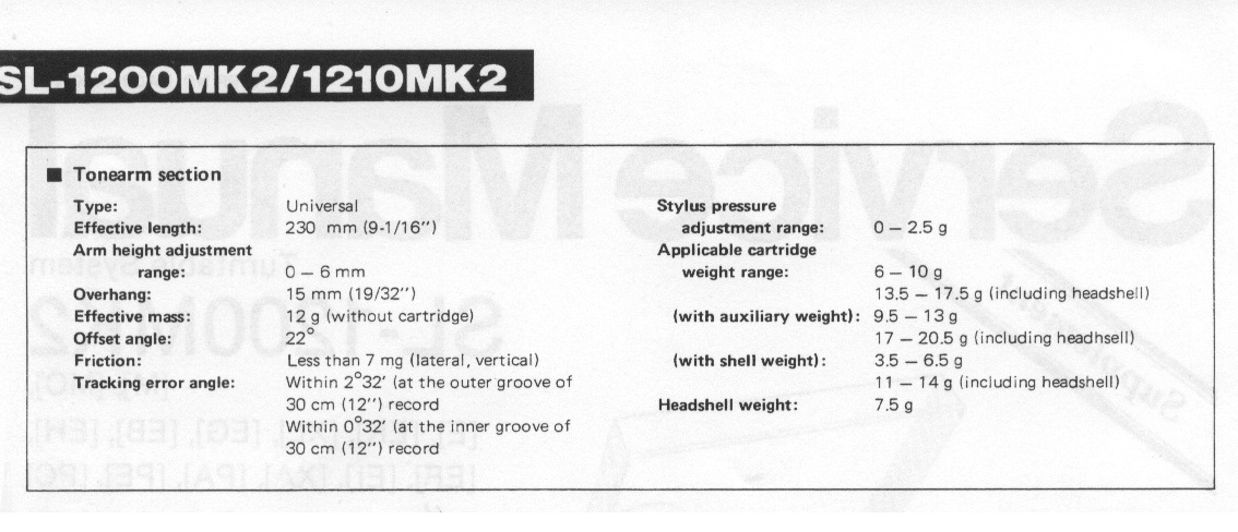 В сервис-мануале на модель 1200 мк2 указана эффективная масса тонарма 12 грамм ( без картриджа ) .При этом родной шелл - 7,5 грамм . Максимальная масса шелла с картриджем рекомендована в 17,5 грамм ..... Если на этом Техниксе применять 13-граммовый шелл АТ , и голову АТ-150 на нем - то уже не укладываемся в рекомендации производителя вертушки хотя бы по весу , и балансировке тонарма ....
