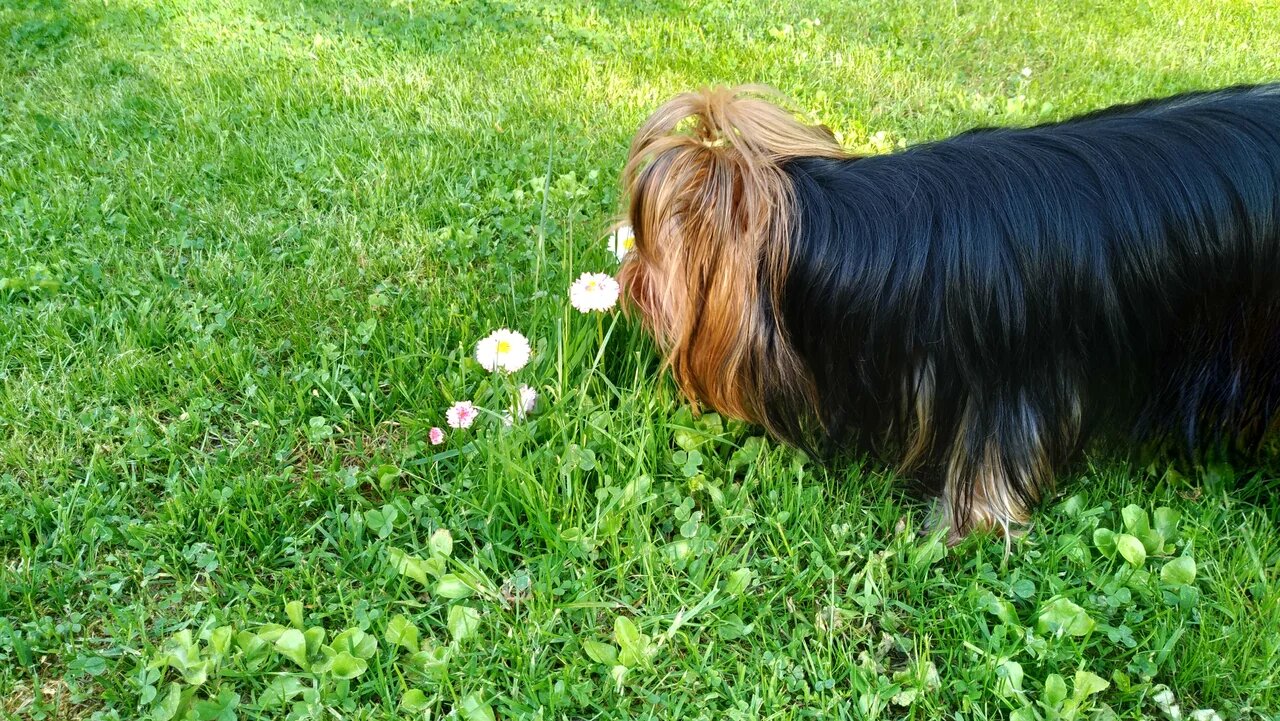 Моя красавица любит нюхать маргаритки...