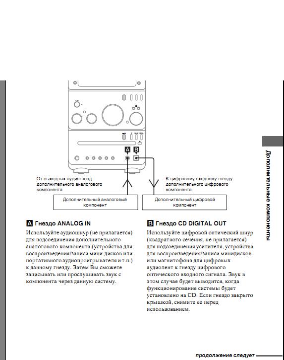 Здравствуйте, возникла необходимость подключить муз.центр Sony CMT-GPZ7 к компьютеру. Но разъемов для AUX на задней стороне муз.центра нет.Подскажите пожалуйста новичку, возможно ли это вообще сделать нехитрым путем? Фото из мануала вырезал.