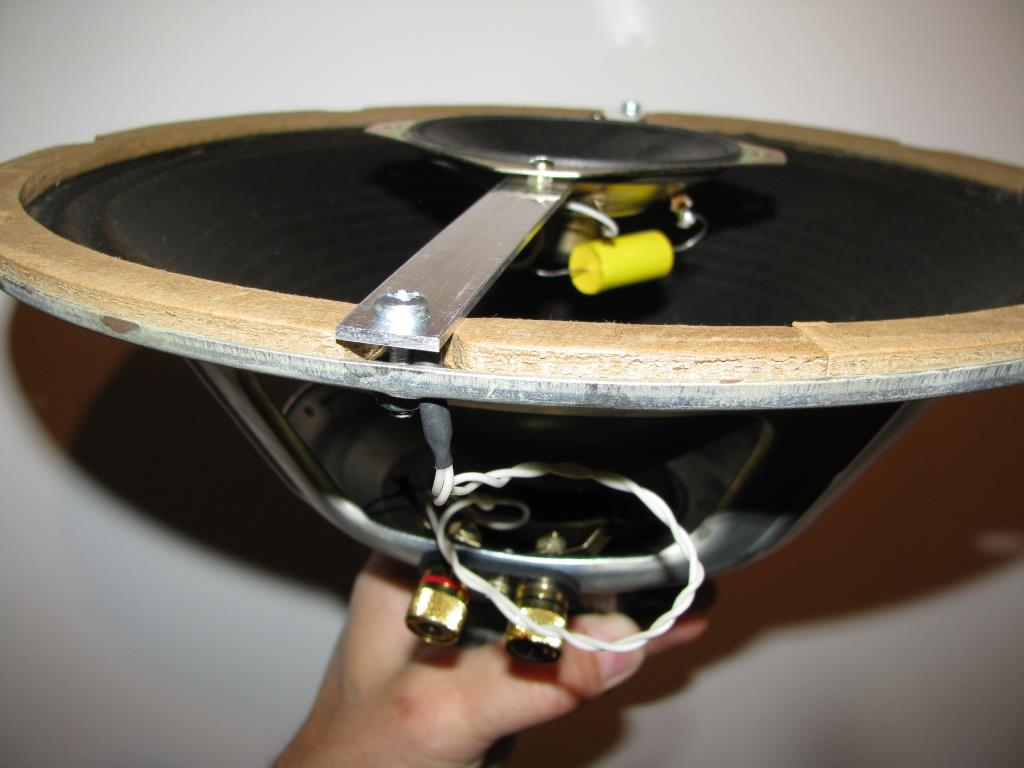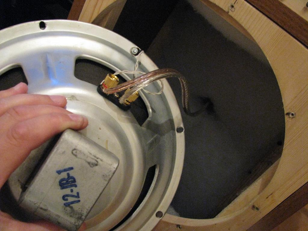 Продолжая "заблуждение" мэтров акустики, я взял типовой американский эстрадный 12" динамик фирмы CTS, поменял ему разъемы, придав более значимый вид и удобство пользования, сделал крепеж для твитера, припаял заранее подобранный конденсатор и необходимую проводку. Убедившись на слух в правильности конструкции собрал второй динамик и вставил оба в АО по типу сужающейся ТЛ в которой прежде стояли University DIFFUSICONE 12 S200, результат превзошел ожидания!