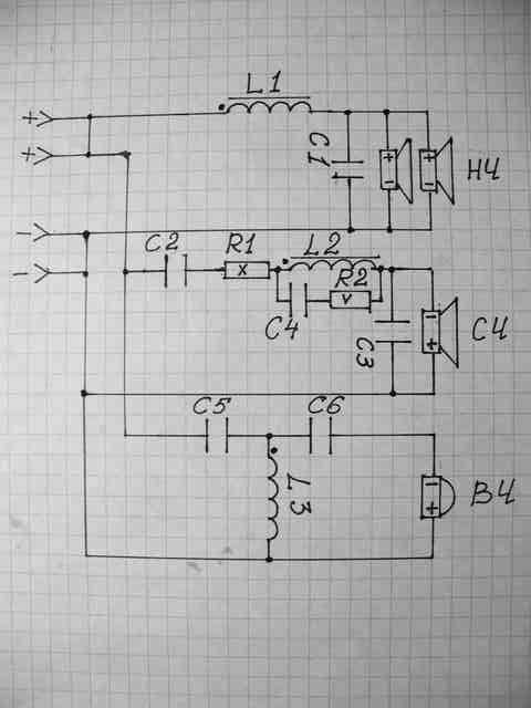Нашел в просторах интернета, доработка victa 700 Выкладываю электрическую схему VICTA 700 рис.1. Все данные передал мне Wolf_V, ранее он выкладывал фото фильтра, схема платы рис.2 тоже его. Номиналы элементов: L1 – 3.3мГн; L2 – 0,82мГн; L- 0,18мГн C1 – 56мкФ; C2 - 33мкФ; C3 - 15мкФ; C4 – 0,82мкФ; C5 – 5,6мкФ; C6 - 10мкФ R1 – 0,56Ом; R2 – 10Ом Как видим из схемы, АС образована тремя НЧ, СЧ, ВЧ полосами. НЧ головка ограничена НЧ фильтром второго порядка (L1,C1) 12 Дб/окт с полиномом фильтра, адоптированным под конкретную головку без звена Цобеля. СЧ головка ограничена ВЧ фильтром первого порядка (C2) 6Дб/окт и фильтром второго порядка (L2,C3) 12 Дб/окт, адоптированным под конкретную головку без звена Цобеля. Резистор R1 снижает чувствительность СЧ головки на 1Дб. Уже знакомое нам, фазовращательное звено (C4, R2), для адаптации фильтра второго порядка к синфазному подключению. ВЧ головка ограничена ВЧ фильтром третьего порядка (C5, L3, C6) 18 Дб/окт с полиномом Баттервота. НЧ и СЧ головки подключены противофазно, для правильной фазировки СЧ и НЧ звена, т.е. второго и первого порядков. СЧ и ВЧ головки подключены синфазно. Точки стыков НЧ и СЧ 500Гц, СЧ и ВЧ 2800Гц. Схемотехника серии VICTA – это хорошо продуманные инженерные разработки, но, конечно же, не без недостатков. Часто видно, что мало уделяется времени на обкатку изделий, это VICTA 500, 200, а особенно 100, теория теорией, а практика не помешает. Экономят средства при разработке, это VICTA 700, тут, конечно же, подкачал первый порядок ВЧ фильтра СЧ звена. ВЧ фильтр первого порядка обычно вообще не рекомендуется использовать, т.к. спад крутизны ВЧ фильтра не достигает теоретического значения 6Дб/окт, а продолжает уменьшаться к основной резонансной частоте, нагружая головку и внося искажения. Да и само ассиметричное подключение второй – первый вносит искажения основного лепестка направленности фильра и разное время задержки сигнала в этих фильтрах. Второй же порядок подразумевает наличие еще одной катушки, а это дорого. Доработка: Варианта доработки два: первый без изменения схемы, второй с изменением первого порядка ВЧ фильтра СЧ звена на второй рис.3. Т.к. АЧХ в области среза фильтра достаточно гладкие, мною был применён фильтр Линквица-Райли второго порядка с гладкой АЧХ. На рис.4 схематическое изображение стыков НЧ и СЧ головок, с точками срезов и стыка, пунктиром обозначен второй порядок фильтра СЧ головки. Номиналы элементов доработки с изменённым порядком рис.3: C2 – 24мкФ; L4 – 2,2мГн, всё остальное без изменений. 1. Перепаиваем катушки индуктивности на плате фильтра так, что бы сигнал (+) входил на внутреннею обмотку катушки, а выходил с внешней (на схеме центр обмотки катушки отмечен точкой). Они могут стоять правильно, могут нет. 2. Меняем электролитические конденсаторы на полипропиленовые. Т.к. их три и довольно большого номинала, то можно поменять не все. Самый большой результат нам даст замена C2 (33мкФ), меньший C3 (15мкФ), и самый меньший C1 (56мкФ). 3. Для второго варианта переделки. a. Меняем местами R1 и C2. b. Заменяем C2 (33мкФ) на полипропиленовый (24мкФ) c. Вставляем катушку L4 (2,2мГн), как показано на схеме рис.3.