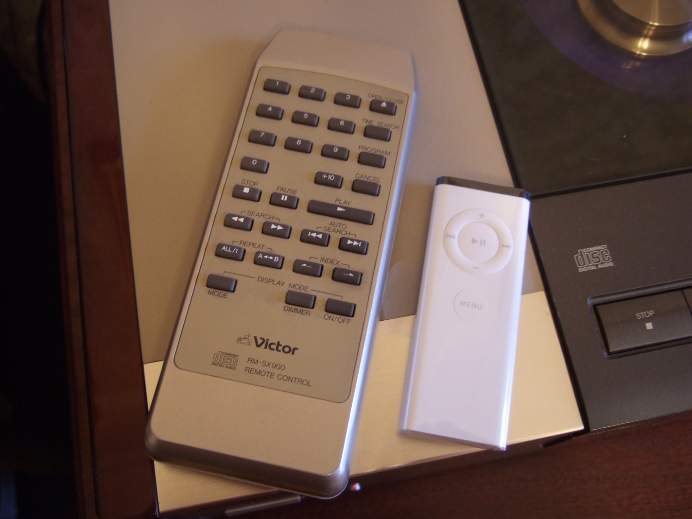 С компа файлы воспроизводились прогой по фамилии Front Row («первый ряд»); при этом недоступны все остальные функции компьютера, включая регулировку громкости и т.д., но зато всё прекрасно управляется с пульта размером с зажигалку, в котором, как оказалось, уже установлены батарейки (!). Вообще-то при воспроизведении через штатные динамики или аналоговый выход с пульта можно и громкость регулировать, но при активном цифровом выходе эта функция блокируется. Можно пользоваться и i-Tunes; в этом варианте все функции компьютера доступны (опять же кроме регулировки громкости на цифровом выходе). Пульт работает и с i-Tunes тоже, но, когда сидишь возле компа, он просто не сильно нужен.