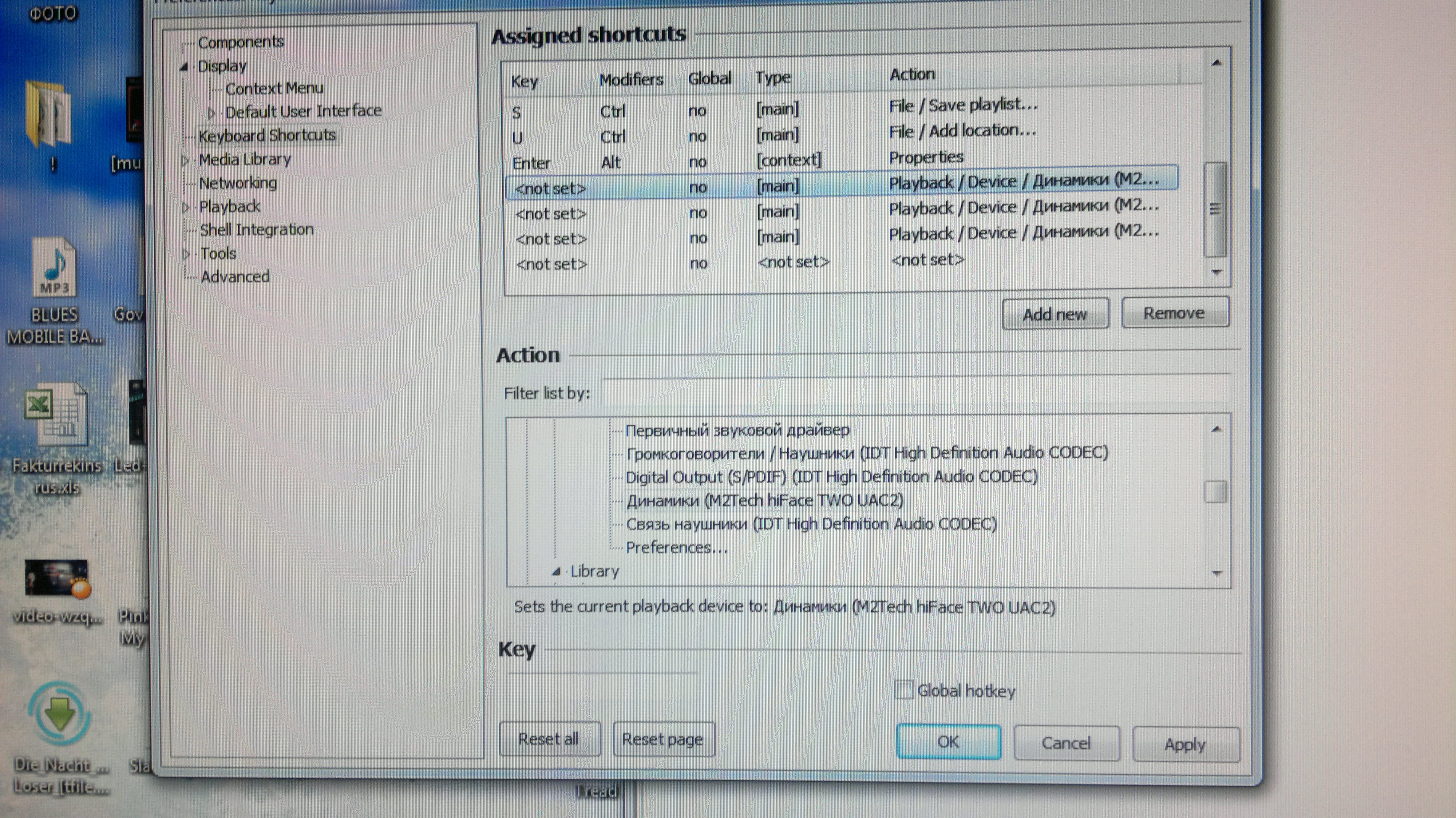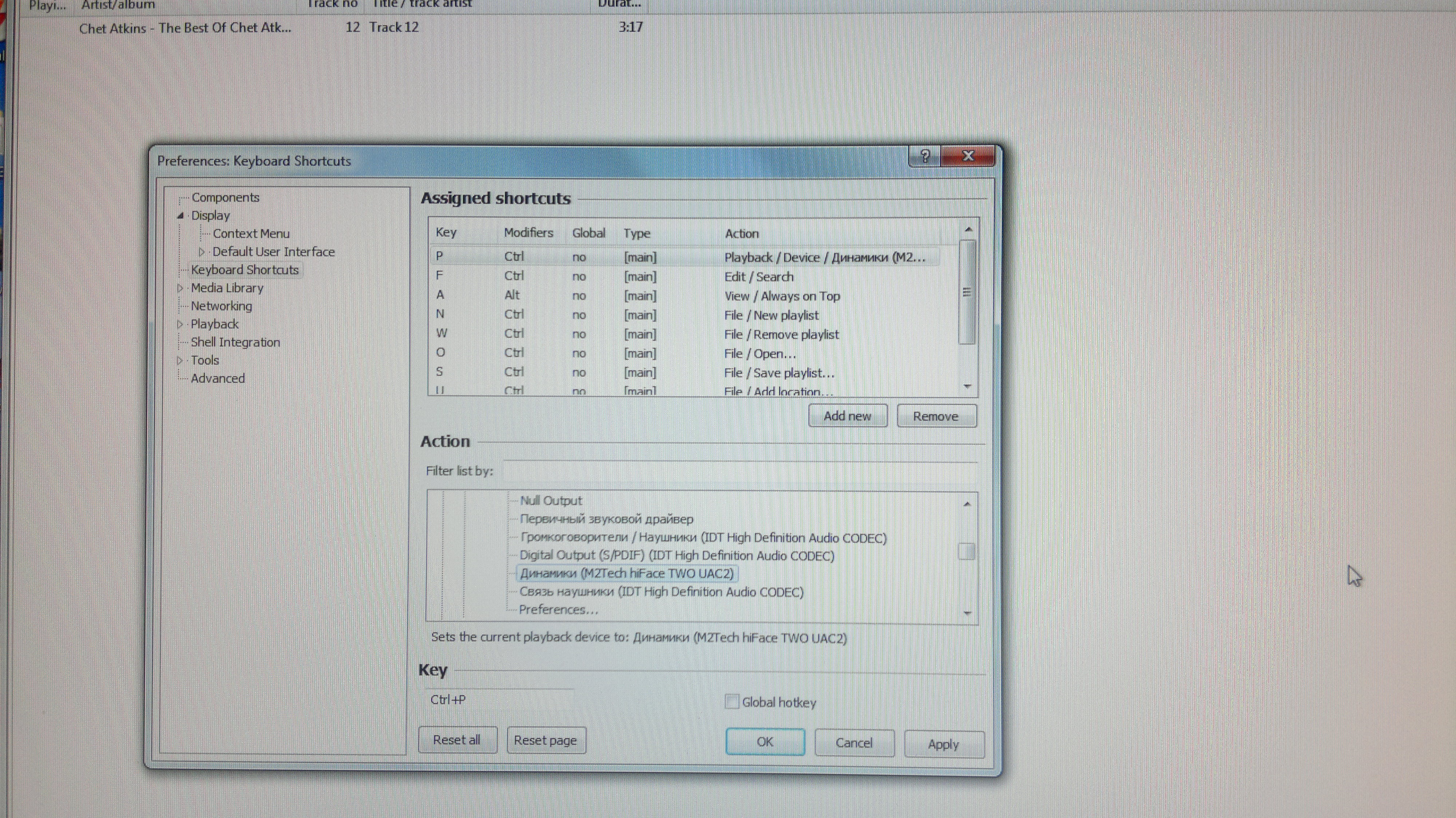 Повторяю: в колонке слева playback -> output, выбрать m2 tech, нажать apply -> OK