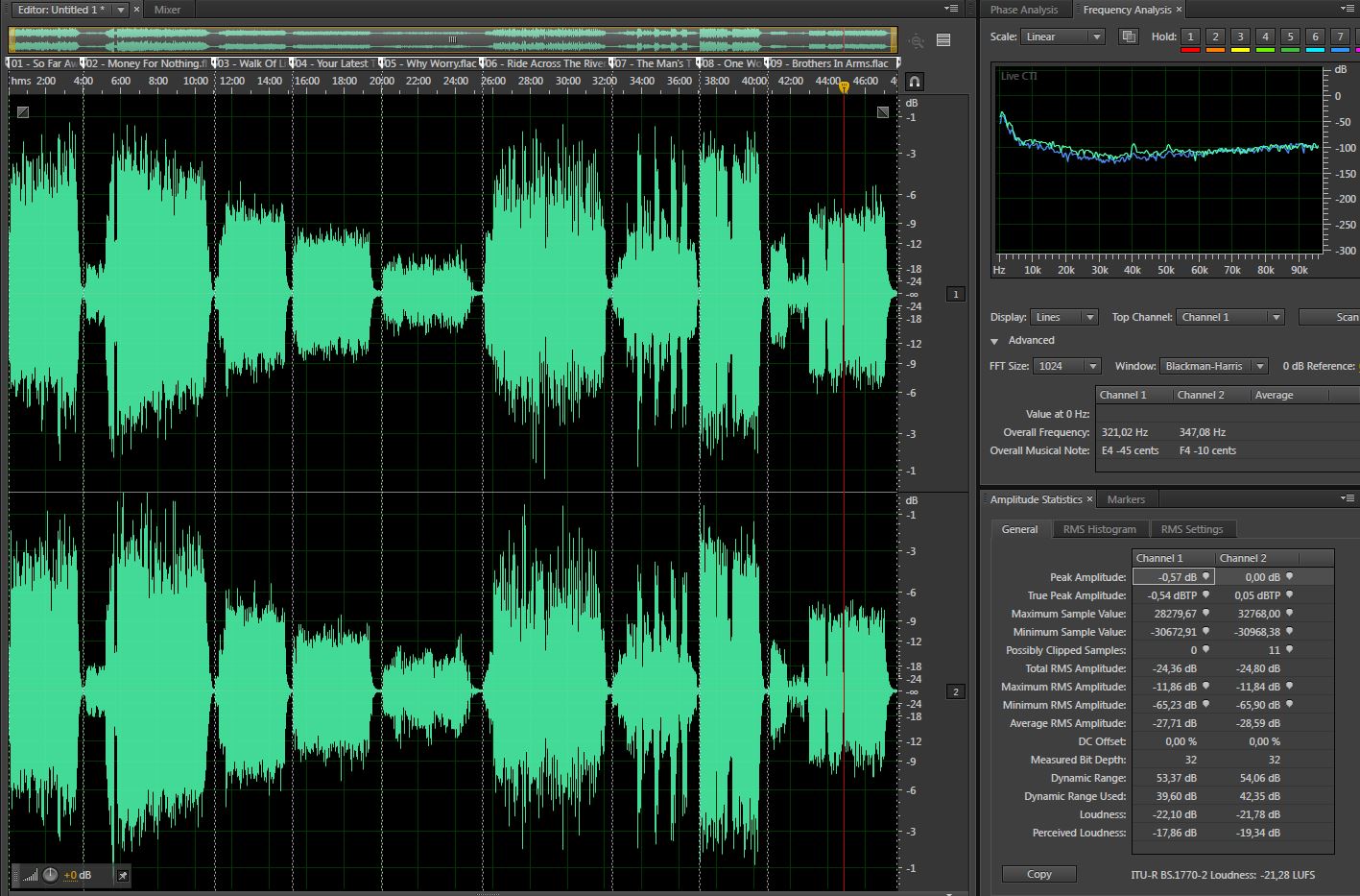 dadd, возвращаясь к твоему вопросу о Dire Straits. Ты или ленишься получать знания или сознательно провоцируешь собеседников. Мне не в лом зайти в сеть, скачать 5-6-7 рипов и выложить волновые формы с анализом уровней. Могу потратить пару часов времени, но встает вопрос - зачем? Мне это не интересно, так как я уже обьяснил, что я к рипам с винила отношусь крайне отрицательно. Если нужен аналог - покупай винил, если нужна цифра - покупай СD, DVD, SACD, BD и т.д. Удовлетворить твое любопытство? Можно. Но что дальше? Ты будешь искать и покупать этот лучший винил? Что-то по твоим постам не видно интереса ни в покупке ни просто разобраться в сущности происходящего. Конкретные примеры. Пожалуйста. Вот, например, рип с американского диска 85 года. Якобы без обработки, с ортофоновской головы и корректора на ELAC-е (круть! Некоторые другие вообще не указывают чем делали, наверно пальцем, или пишут другую разную ахинею). Скачай и послушай. Нравится? Уж не знаю, что этот козлина делал с записью, но звучит она очень забавно.