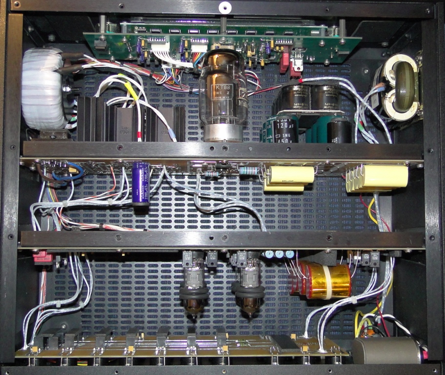 По поводу лампы, что якобы не играет сложные вещи и большие составы. Был на модернизации фонокорректор Audioresearh, так вот ему не только навесной монтаж сделали, а ещё и трансформаторы (питание) поставили с серебряными обмотками, разъёмы серебро, вообщем весь фонокорректор получился на серебре. Так вот к всеобщему удивлению, стал играть настолько динамично, быстро, что никогда в жизни не сказал бы, что он ламповый. Очень ровный, с достоверным звуком получился корректор.