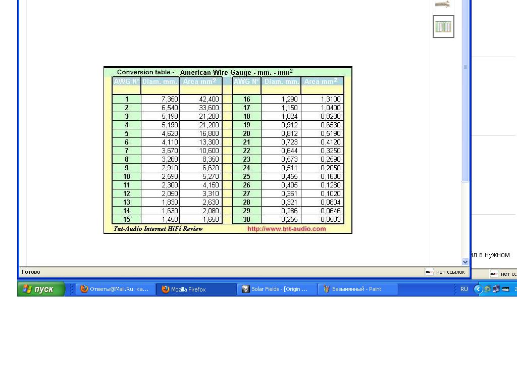 Вот таблица сечений: