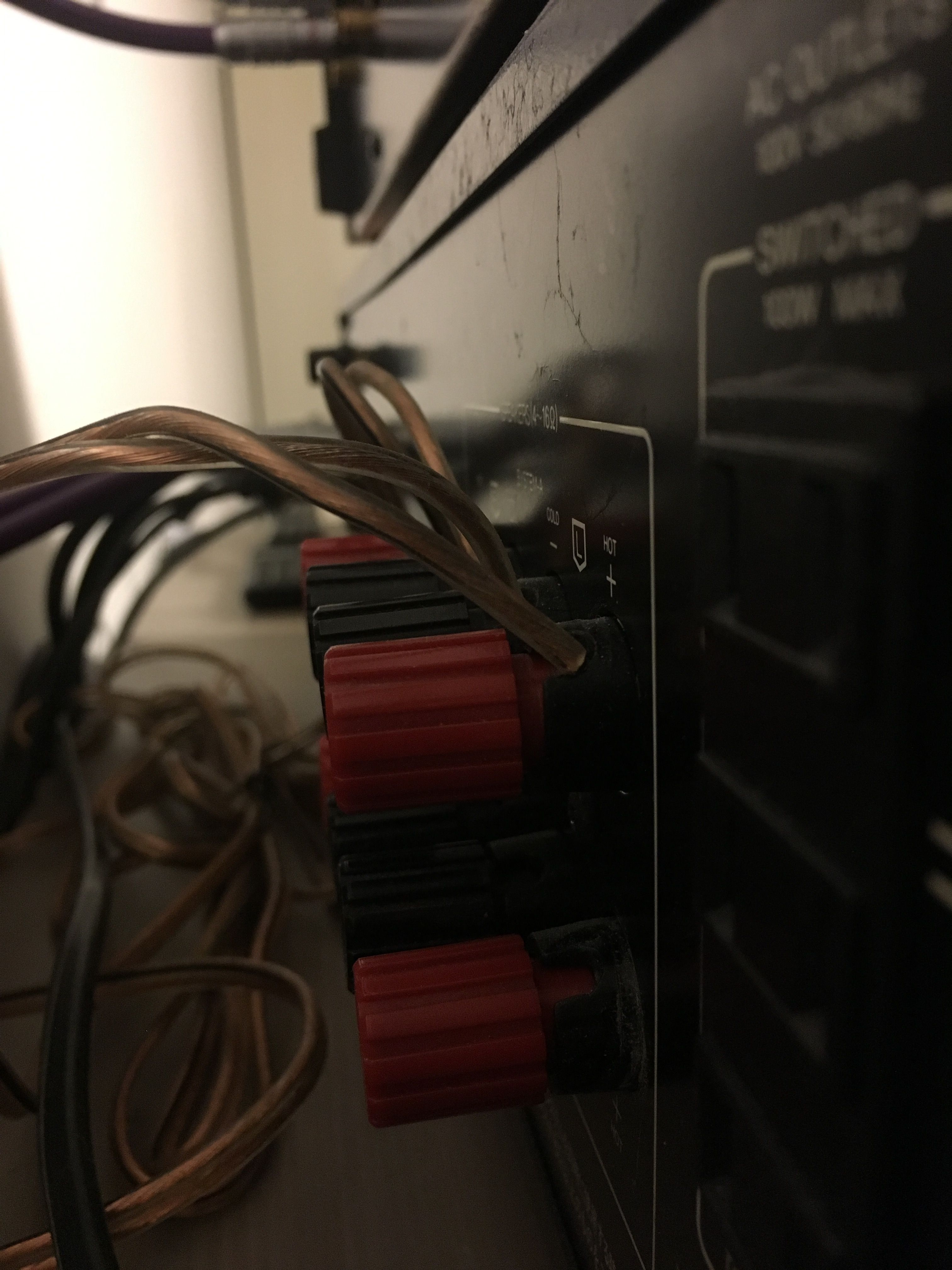 Я менял клеммы на усилителе на кошерные.