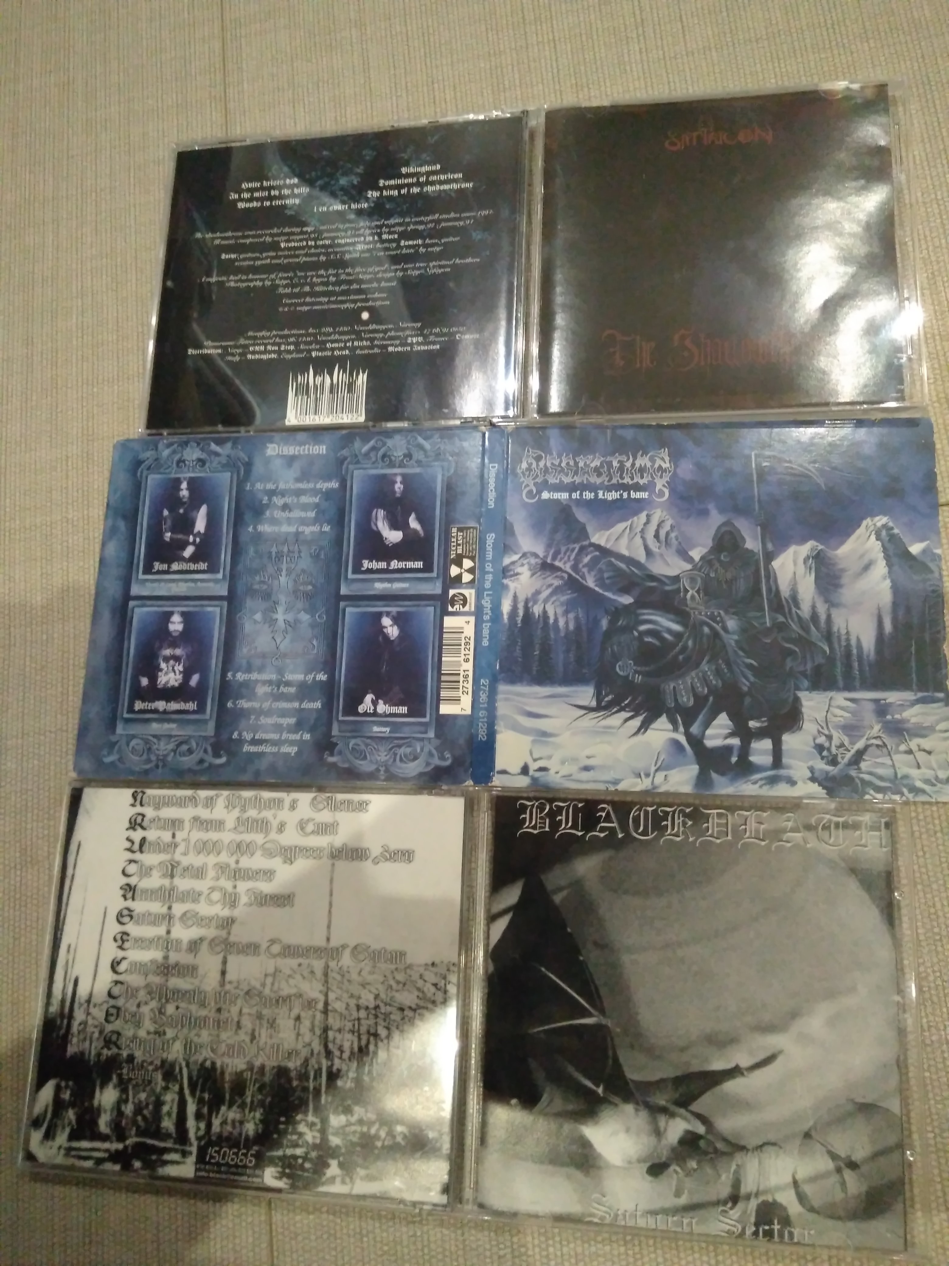 Там путаница есть... первым полагаю будет без штрих-кода с матрицей DURECO, без ifpi. В любом случае, на всех этих ранних изданиях использован один и тот же мастеринг. DURECO [01] FOGCD 001 First press with no barcode spine reads: FOG 001 SATYRICON - DARK MEDIEVAL TIMES MOONFOG PRODUCTIONS Second press with barcode spine reads: 84-20372 SATYRICON - DARK MEDIEVAL TIMES MOONFOG PRODUCTIONS Also the first press has a darker cover/booklet with black logo and album title. Booket opens up and has black background with silver lettering. Turn it over and it's black background with silver lettering. Second press has very light gray, almost glossy looking, cover with gray logo and album title. Booket opens up and has silver background with black lettering. Turn it over and it's black background with silver lettering.
