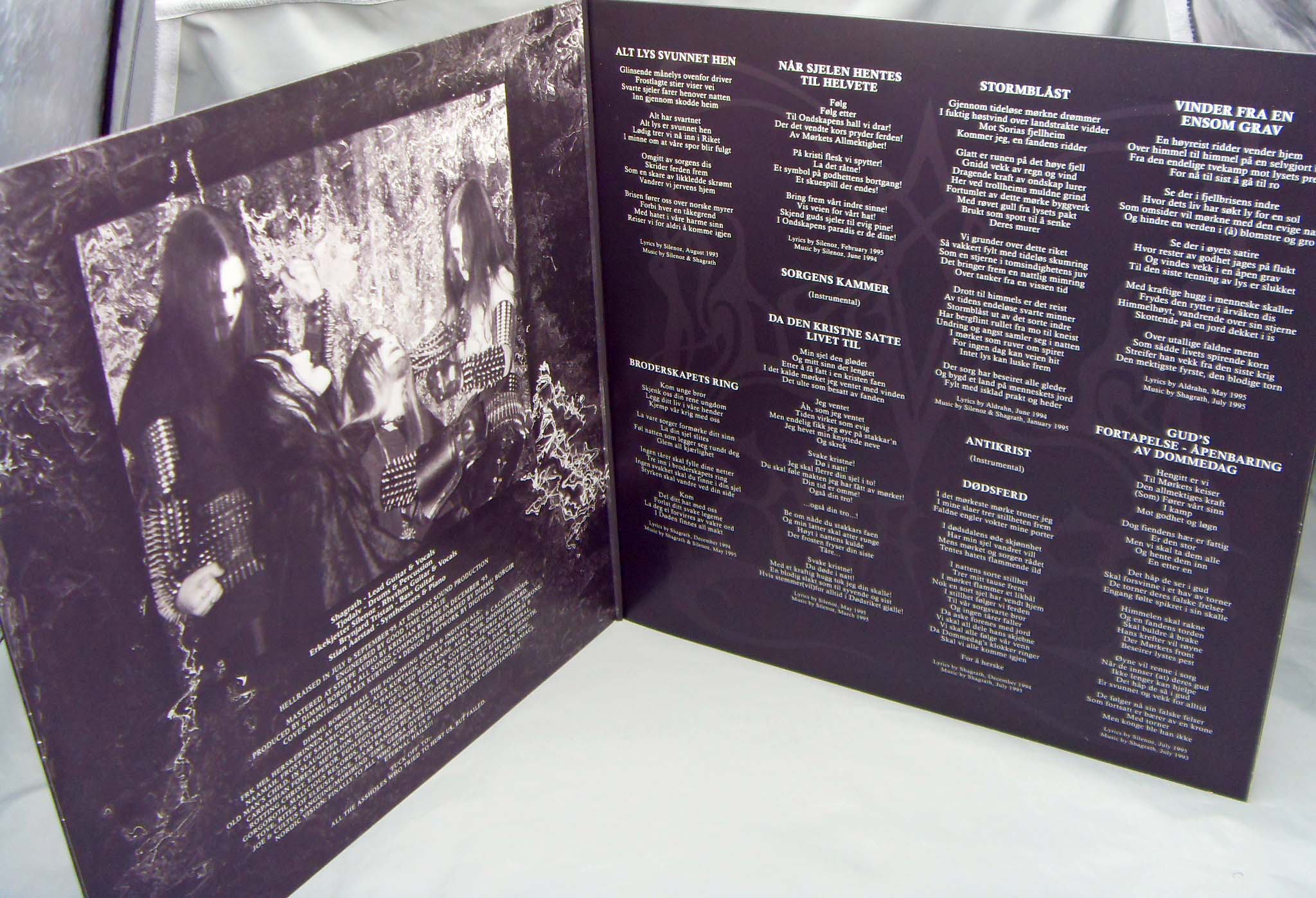 На "Stormblåst" эти норвежские ребята еще придерживаются того направления, что мы наблюдали на первом полноформатнике. Состав с тех пор не поменялся. Это почти все тот же вдумчивый среднетемповый блэк с сырым звучанием, сдобренный хорошими порциями симфонизма. Разве что на этот раз команда чуть-чуть прибавила в скорости. Главное, атмосферные моменты, навевающие грусть, все еще остались. На следующих релизах коллектива мы можем наслаждаться инфернальным вальсом темных сил, в то время, как здесь мы с Вами мерзнем среди холмов, обдуваемых суровыми скандинавскими ветрами. На этот раз работа Стиана, к примеру, стала значительнее, объем использования им его инструментов увеличился. Тут Вам и околосимфонические проигрыши и замечательные партии фортепьяно, в которых удивляешься его профессионализму. Альбом как раз и начинается с такой восхитительной партии. Пока еще никто не отменял чарующие, медитативные переборы струн. Отдельно я хотел бы выделить следующие композиции: печальную песню под названием «Broderskapets ring», полностью клавишную «Sorgens kammer» и «Antikrist» с мгновенно запоминающейся мелодией. Вышеупомянутая инструменталка просто бесподобна, может даже злобного чернушника заставить взгрустнуть. Но почему же ее не включили в перезаписанную версию этого альбома? Дело в том, что, по словам Шаграта, Стиан ее придумал не сам, а взял из какой-то игры, и во избежание проблем группа отказалась от нее. Остальные песни на должном уровне, не беспокойтесь, иначе придется уже отмечать все номера диска.
