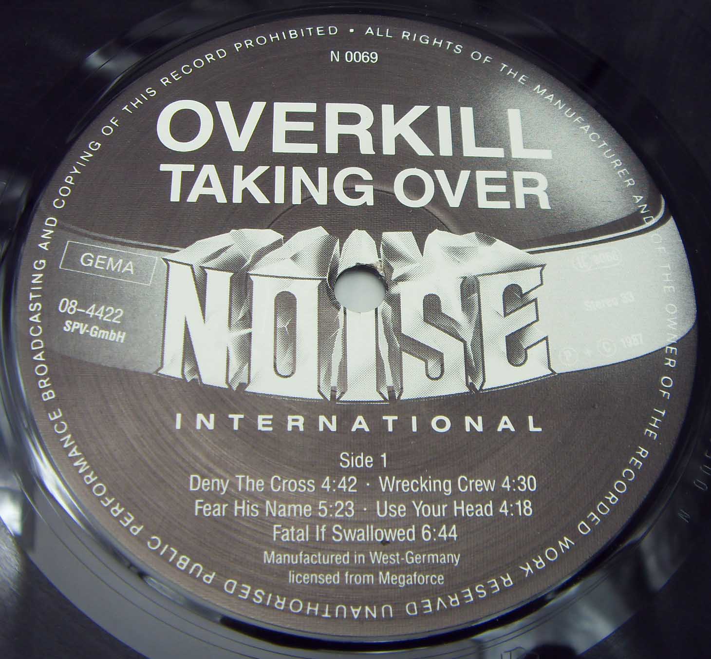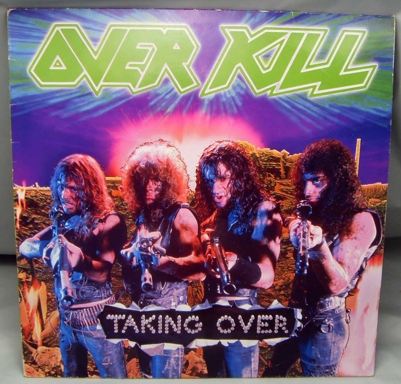 Железяка трэшевая ранняя Overkill – Taking Over Label: Noise International – N 0069 Format: Vinyl, LP, Album Country: Germany Released: 1987 Genre: Rock Style: Heavy Metal, Thrash Tracklist A1 Deny The Cross 4:42 A2 Wrecking Crew 4:30 A3 Fear His Name 5:23 A4 Use Your Head 4:18 A5 Fatal If Swallowed 6:44 B1 Powersurge 4:34 B2 In Union We Stand 4:23 B3 Electro-Violence 3:43 B4 Overkill 2 (The Nightmare Continues) 7:10 Рецензия Darkside.ru Второй альбом «Taking Over» американские трешеры Overkill выпускали уже на новом лейбле Atlantic Records. Материал, содержащийся на «Taking Over», представлял собой более спид металическое, более тяжелое и мощное продолжение дебютной работы «Feel The Fire». Вокал Элсворта также примечателен из-за его чистого пения, хотя теперь он стал много использовать более резких криков, наподобие Удо Диркшнайдера. Качество записи не очень изменилось, и хотя оно неплохое, но всё же некая сырость и недоработанность чувствуется, всё-таки на дворе 1987 год. Обложка вышла не очень примечательной, но достаточно агрессивной. В общем, то пластинка не содержит в себе каких-либо мега-шедевров, но вот среди, в целом, однообразного музыкального материала всё же можно выделить несколько симпатичных композиций. В целом, «Taking Over» смотрится несколько слабо по сравнению с предыдущим дебютным альбомом «Feel The Fire», где порции угарного треш метала были удачно совмещены с порциями цепляющей мелодики, но отрицать что «Taking Over» возможно станет одним из сильнейших альбомов в истории группы тоже я не могу, поскольку количество хороших вещей