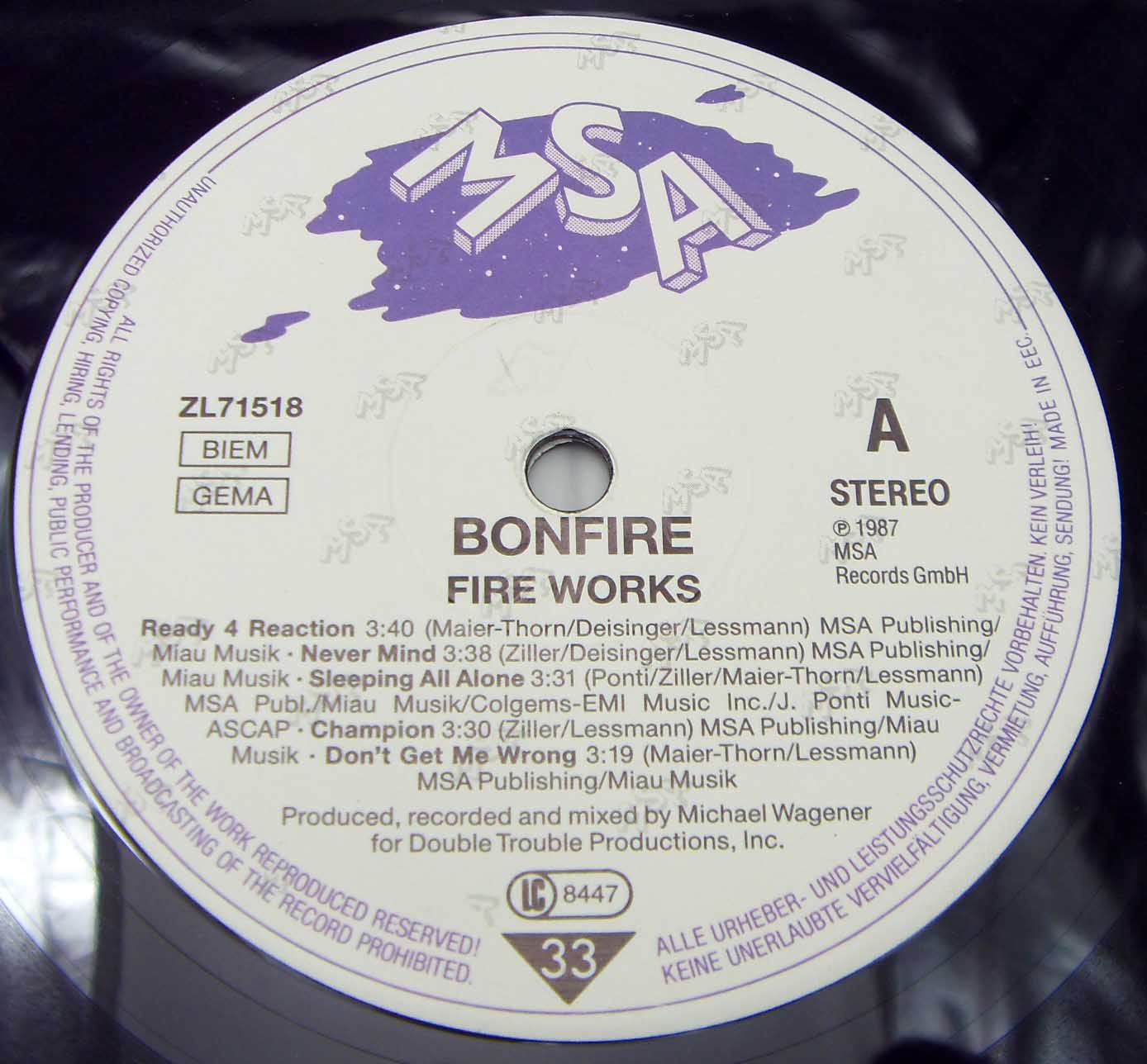 жестянка бодро металлическая Bonfire – Fire Works Label: MSA Records – ZL 71518 Format: Vinyl, LP, Album Country: Germany Released: 1987 Genre: Rock Style: Hard Rock, Heavy Metal Tracklist A1 Ready 4 Reaction 3:40 A2 Never Mind 3:38 A3 Sleeping All Alone 3:31 A4 Champion 3:30 A5 Don't Get Me Wrong 3:19 B1 Sweet Obsession 3:04 B2 Rock Me Now 4:17 B3 American Nights 3:42 B4 Fantasy 4:40 B5 Give It A Try 4:23 Рецензия Darkside.ru Второй лонгплей стал для группы Bonfire шагом вперед и до сих пор является самой успешной их работой за все время существования. Саунд теперь стал еще лучше по сравнению с дебютником - несмотря на 1987 год записи, звук просто великолепен даже с позиции современного слушателя, при том, что несет в себе потрясающую атмосферу 80-х годов. Не зря после этого альбома группа ездила в глобальный тур с самими Judas Priest! Каждая песня - хит, все отточено до блеска, при этом продюсер и участники коллектива не переборщили с коммерцией, их музыка достаточно тяжела, чтобы называться металлической. К музыкантам, как обычно, никаких претензий - сыграно слаженно, по-немецки четко и с задумкой. Кстати, на барабанах здесь стучал ударник замечательной американской пауэр-металлической формации Fifth Angel Кен Мэри. На альбоме присутствует достаточно разнообразный материал - от хэви металлических тяжеляков до хард роковых песенок с небольшим влиянием глэма. Лирика, как и раньше, посвящена в основном любовной и рок-н-ролльной тематике, что и неудивительно, учитывая ориентацию Bonfire на североамериканскую аудиторию. Такого "Bonfire" уже никогда не выпустит, именно с "Fire Works" надо начинать знакомство с творчеством этого немецкого коллектива. Еще одно бессмертное творение из 80-х.