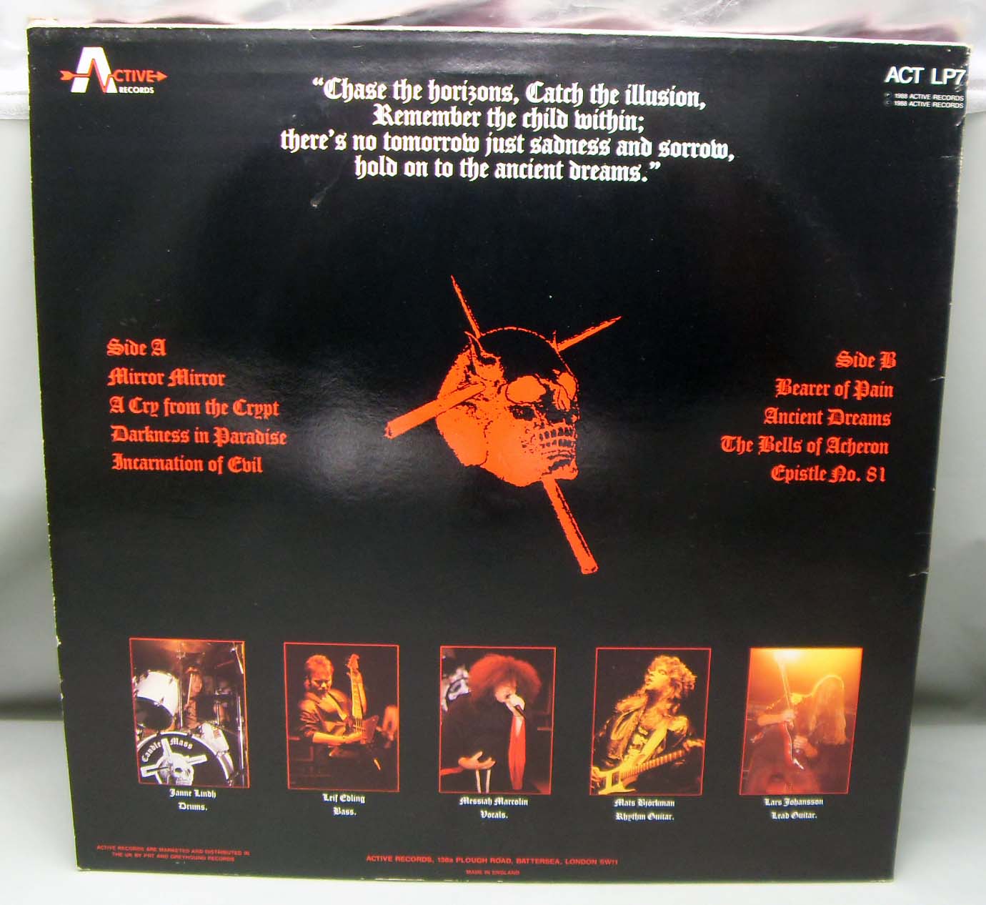 Cамый жесткий, самый динамичный и прекрасно реализованный альбом CANDLEMASS. Cправедливости ради надо признать, что, исключая лишь "Nightfall", это единственный альбом Кэндл, где продюсирование не загубило великолепный вокал Мессии Марколина. Но это все внешняя сторона дела. Содержимое же альбома заставит восхититься абсолютно любого думстера. 9 длинных, занудных и очень красивых песен, из которых 2 последние представляют собою кавера. "Epistle #81" - это обработка некой народной песни, у нее совершенно похоронное звучание и душераздирающий текст на староанглийском языке. А финальный опус - попурри из вещей BLACK SABBATH, среди которых "Symptom Of The Universe", "Electric Funeral" и еще несколько классических вещей тогда еще Оззиной группы. Буйнопомешанным на Кэндл коллекционерам будет интересно узнать также, что эпическая 7-минутная "Incarnation Of Evil", прежде чем стать воплощением зла на обозреваемом альбоме, существовала в облике "Black Messiah" на старом диске группы Эдлинга NEMESIS (1983).