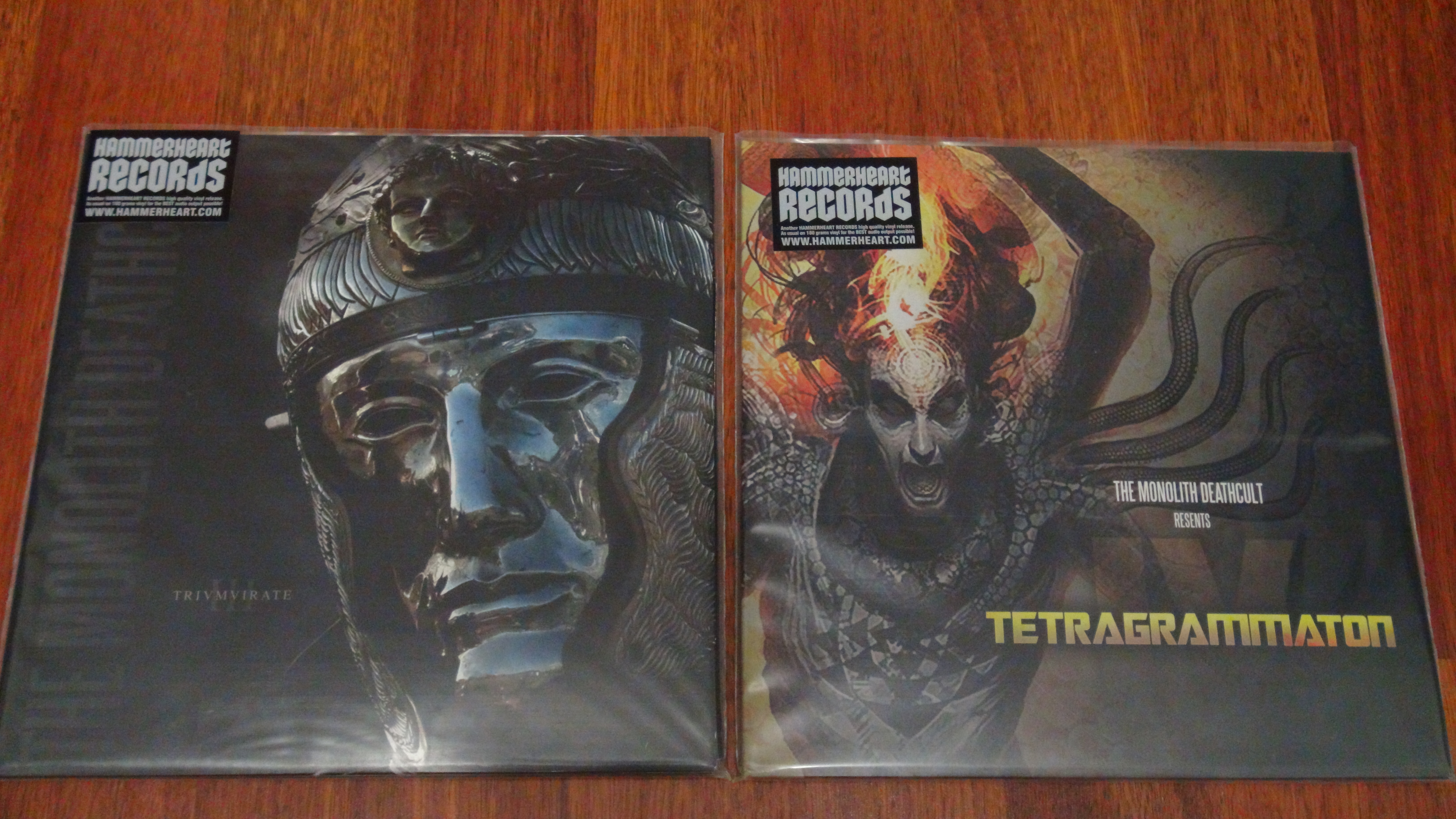 Итак прибыло : 1.The Monolith Deathcult-Trivmvirate 2008 Hammerheart Records HHR2014-16 2 × Vinyl, LP, Album, 180 Gram,Comes in embossed gatefold cover with printed innersleeves.+2 Bonus+Poster 2014 PVH with sticker Netherlands 2.The Monolith Deathcult-Tetragrammaton 2013 Hammerheart Records HHR2014--17 2 × Vinyl, LP, Album, 180 Gram,Comes in embossed gatefold cover with printed innersleeves.+2 Bonus+Poster 2014 PVH with sticker Netherlands 3.Opeth-Heritage 2011 Roadrunner Records RRCAR 7705-1 2 × Vinyl, LP, Album, 180 Gram,Release includes a poster Germany Опет почти весь собран , остался один альбом , и то его недавно переиздали так что летом и до него доберусь. 4.Airbag -The Greatest Show On Earth 2013 Karisma Records KAR076LP 2 × Vinyl 180g heavyweight black vinyl. Gatefold cover with black inner sleeves and A2 poster. europe В целом Airbag не вписывается в канву метала. Это добротный Прог Рок-Уровня Пинк флойда,Отличный кстати альбом, третий. Для двух предедуших , специально для винильного издания делали аналоговый мастеринг. 5.Exmortus-Slave To The Sword 2013 Prosthetic Records 6561910171-1 Vinyl, LP, Album ,вставка текст фото. US |