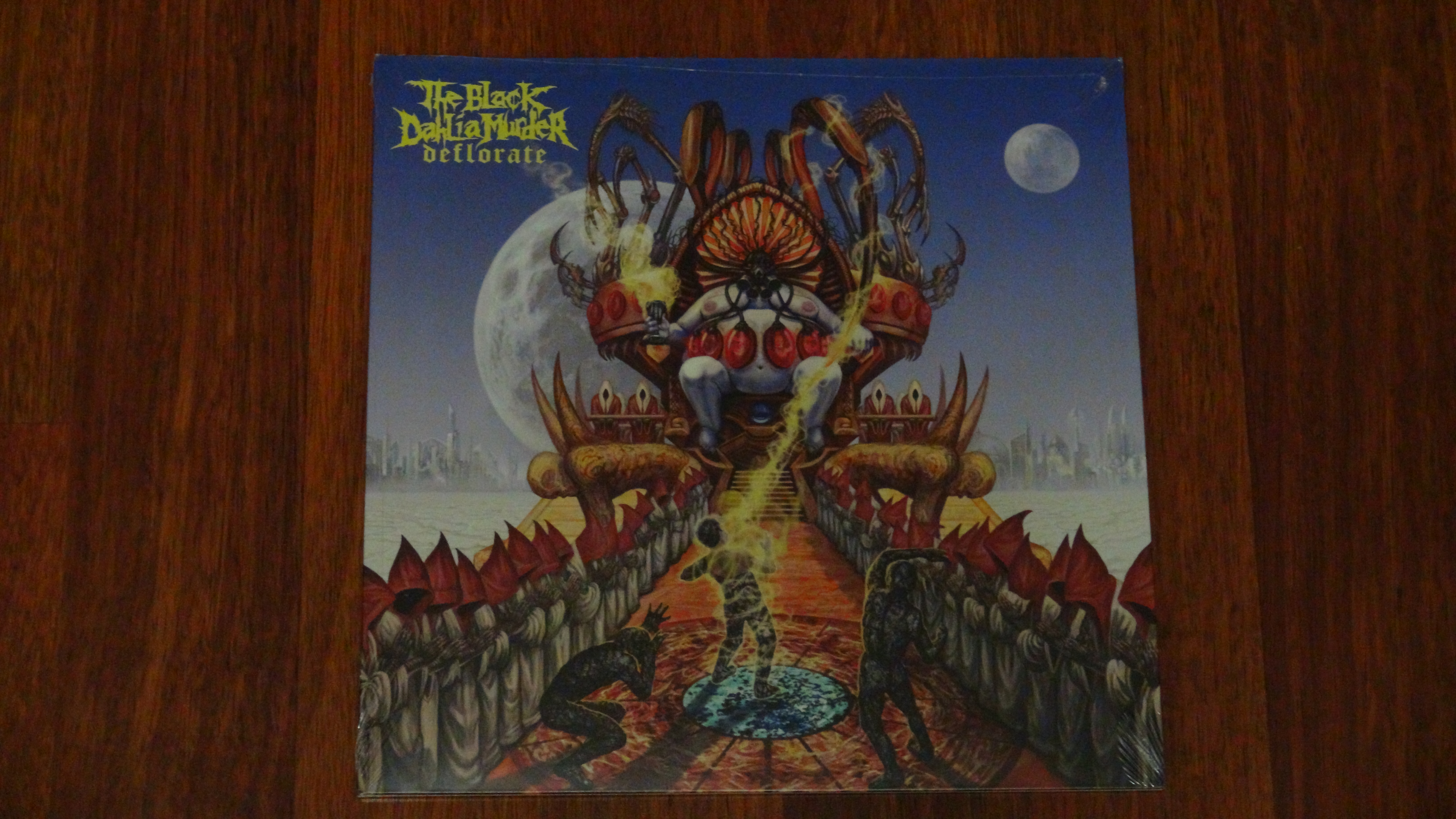 1.The Faceless- Autotheism 2012 Sumerian Records SUM-241 Vinyl, LP, Album, Grey-Marbled,Includes full colour insert with lyrics and photos US Многие упрекнули группу которая после двух шикарных альбомов, вдруг издала такой альбом, отдающий настроением Opeth, но это было первое впечатление. Чем больше прослушивал альбом , тем больше замечал что казалось уйдя от оголтелого брутал молотилова, группа развивается и не стоит на месте. 2.Rings Of Saturn-Dingir 2013 Unique Leader Records ULR12036-1 Vinyl, LP, 12", Album, Limited Edition, Green Vinyl ,Limited to 300 copies.US Этих веселых ребят я заприметил давно, но выцарапать пластинку из Сша , оказалось непростой задачей. Всего 30 минут , но сколько энергии и находок в альбоме.Настоятельно рекомендую !!! как и все рецензируемые альбомы. 3.The Black Dahlia Murder-Deflorate 2009 Metal Blade Records 3984-15239-1 Vinyl, LP, Reissue 2013, Yellow USA & Canada 4.The Black Dahlia Murder Ritual 2011 Metal Blade Records 3984-25004-1 "Vinyl, LP, Green Marble ,*Center Ring Hand Etching (Side A) Read: When Asked To Kill, You Won't Or Will *American pressing limited to 1000 " US The Black Dahlia Murder я слушаю давно и дико котирую эту группу, можно сказать собрал все альбомы теперь.3 альбома есть на сд, и 3 на Lp. последний кстати чудо как хорош: тот что The Black Dahlia Murder,- Everblack если кто вдруг пропустил рекомендую послушать, в нем есть интересная фишка которую я выявил сверяя чем отличаются разные цветовые альбомы. так Bonustrack - Sepukku (Only 500 copies worldwide!)"В цветовых изданиях Purple swirl и Purple/White Splatter этого бонуса нет. А вот в моем Purple / White Marbled -он есть. Так что если есть выбор по цвету, смотрите внимательно. |