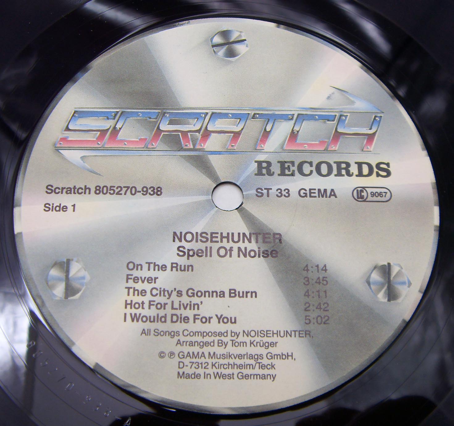 Noisehunter – Spell Of Noise Label: Scratch Records (2) – 8052 70-938 Format: Vinyl, LP, Album Country: Germany Released: 1988 Genre: Rock Style: Heavy Metal Tracklist A1 On The Run A2 Fever A3 The City's Gonna Burn A4 Hot For Livin' A5 I Would Die For You B1 Back To Rock B2 Metal Lover B3 Straight Shooter B4 I'm On Fire