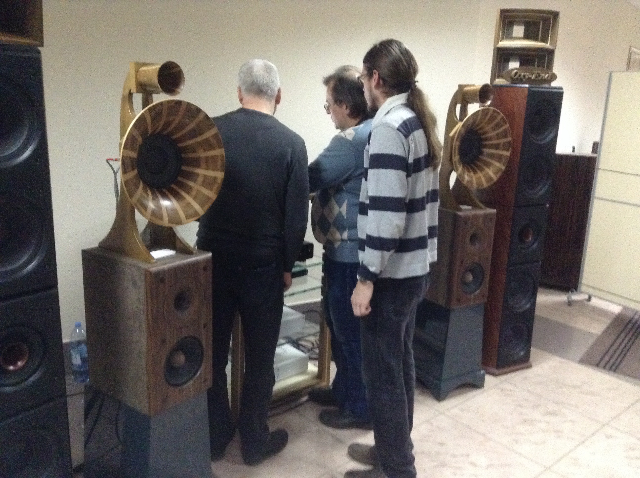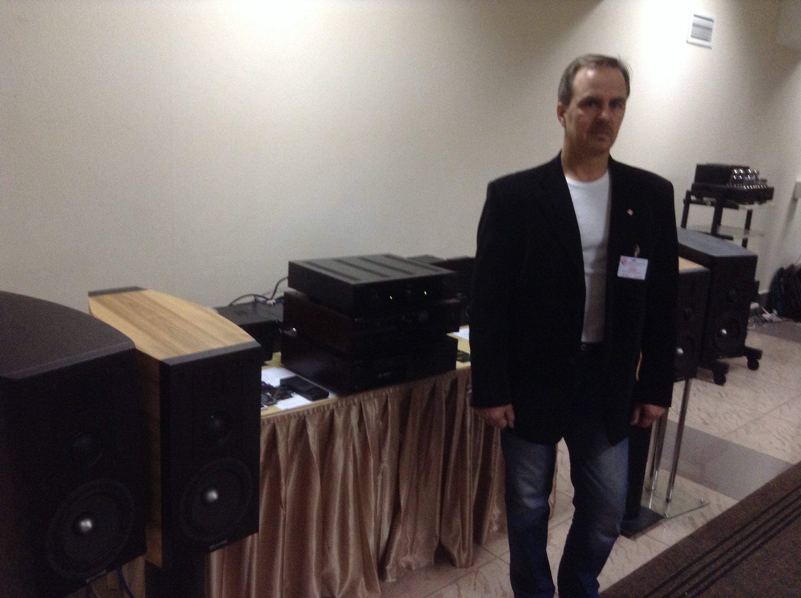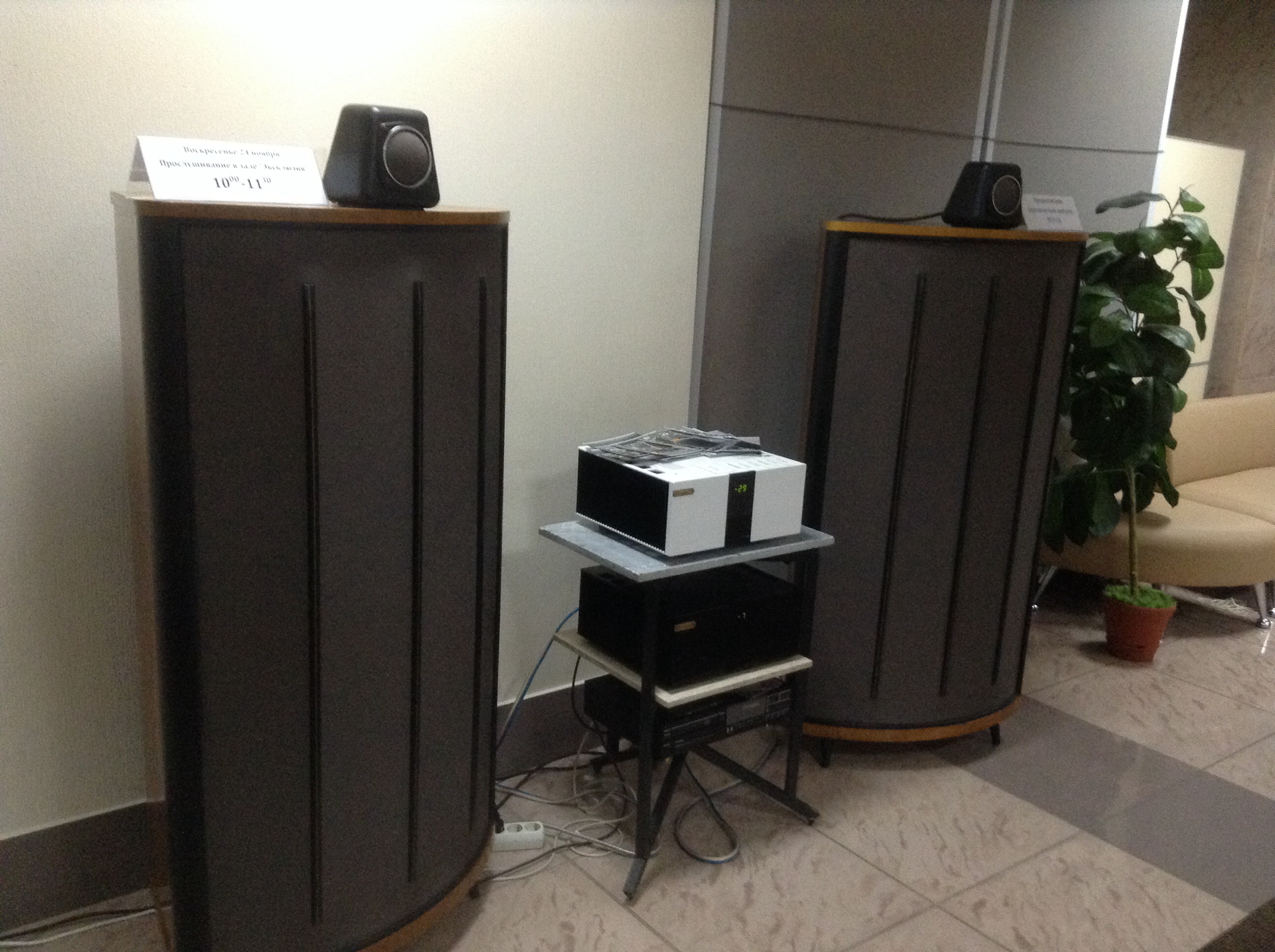 Вдумчиво послушать удалось в зале Эксклюзив три системы: 1. Нойз Фабрик - живенько, но ужасно криво по басу, фортепиано такое не бывает! Тем не менее, несмотря на бас, колонкам явно это помещение давалось с трудом, они очень деликатничали. Как и опасался, комповый источник не айс, часто заикался. 2. Иллюминати - правильно по AЧХ, масштабно, сумели заполнить звуком, но с самим звуком что-то не то: мало-детальный, невыразительный. Есть подозрение на другие компоненты, в первую очередь источник. 3. Разин- Мусатов AS-4 c PA-20 и Антрацитом - здесь пристрастен, поэтому ограничусь тем, что понравилось сильно больше предыдущих, как бы другая лига. Неожиданно (для меня) с PA-20 понравилось больше, чем с Антрацитом, хотя ожидал противоположного. Связываю с большими размерами помещения, где PA-20 было легче заполнить звуком зал. Подозреваю, что в обычной типовой жилой комнате ситуация может поменяться на противоположную. Ну, и как всё время занудливо твержу, биампинг AS-4-ым показан, РА-20 на низы, а Антрацит всё остальное. |