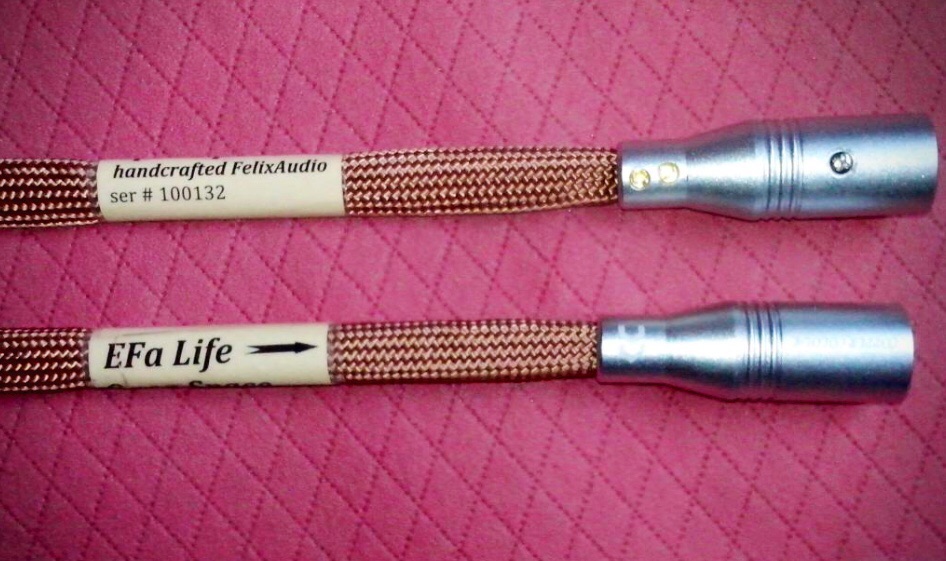 Феликс озвучил идею, но она могла быть концептуально объяснена подробнее, другими словами, без опаски раскрыть секреты ноу-хау Efa. Звучание идеологически абсолютно противоположное АИМ. Основная концентрация на правильном раскрытии сцены, акустике помещения, где происходила запись. Передние планы подаются не так эффектно, зато задние оказались проработанными существенно лучше двух других экспонентов. Многим слушателям не нужна напускная эффектность, от которой можно быстро устать. Тембральная проработка хорошая, без потерь и излишней, пафосной насыщенности. Тонально кабели ровные, повышения тонального баланса не услышал. Мне, как человеку 100% слушающему только классику, такая скромная и выверенная подача весьма близка. Создают впечатления контроля, целостности. Опять же, ничего общего с мэйнстримом. Динамических ограничений, или раздутия образов тоже не услышал. Хотелось бы послушать эти кабели дома, подробнее. К тому же, есть дополнительная возможность сравнить с сетапом от АИМ, который у меня уже есть. Качество изготовления EFa достойное, очень прилично для самоделки. Использование необходимого качества, хоть и недорогих комплектующих, некоторое понимание дизайна.