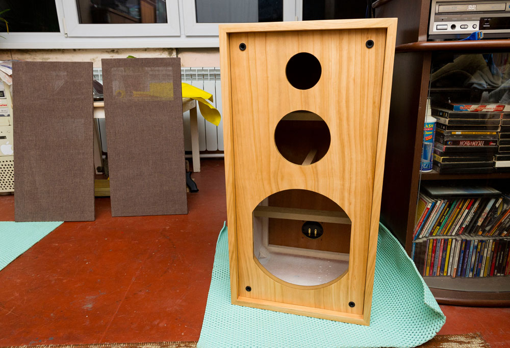 Получилось по звуку хорошо + более современный вид. Жаль что для них нет места. Место этих Телеков заняла ШП акустика Goodmans. Проектировались и изготавливались корпуса тоже в Запорожье. Качество корпусов в обеих случаев очень высокое и точное с применением лазерной резки и настройки в безэховой камере.