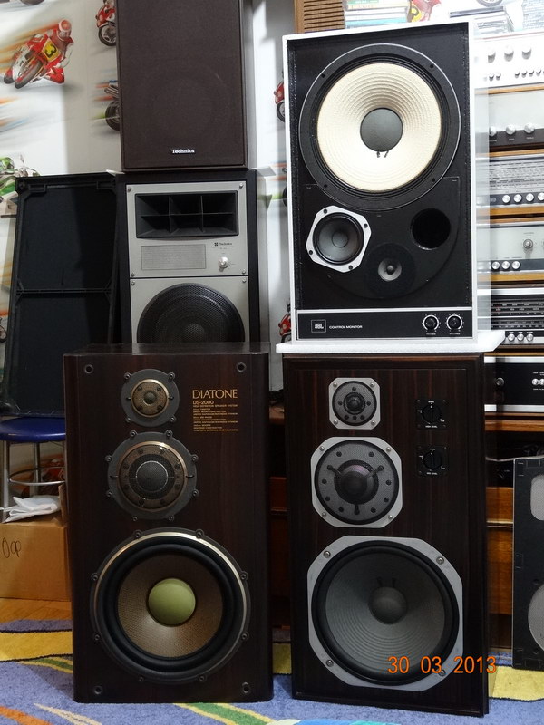 JBL 4310 (ФИ) Diatone DS-2000 (ЗЯ) Pioneer CS-A50 (ЗЯ) Yamaha NS-1000 (ЗЯ) Электроника 50АС-061М (ФИ) Комната 14-15 м. кв. Усилок Sansui AU-9500. ---------------------------------- Сразу скажу, что это моё лично ИМХО. В других комнатах и другие экземпляры колонок в ином техническом состоянии могут дать несколько иные результаты. К тому же я не эксперементировал с размещением в комнате. Был интересна бегла прослушка для общего понятия "кто-где".... Мои субъективные результаты (общие): 1) ВЧ самые прозрачные/детализированные у Ямах. 2) При неизменном положении РГ громче всех играли Джабли и Диатоны. Электроника самая тихая/тугая. Пионеры тоже "тихони". что вполне логично - 5 динов, достаточно массивный фильтр. 3) у Ямах СЧ более сдержанные (по громкости) относительно Диатонов и Джаблей. Словно темброблоком в них поджали серединку. 4) баса больше ессно у ФИ АС - Джабли и Электроника (но конечно же с особенностями ФИ звука). У Электроники звуковое давление по НЧ было даже чуть выше, чем у Джаблей. 5) Среди ЗЯ самые басистые - это Пионеры (это меня удивило, однако). 6) Если рассматривать трио с ВЧ/СЧ куполами из металла, то Электроника выдаёт самый тусклый/пресный/скучный ВЧ/СЧ диапазон. И это слышно сразу. 7) все пять пар акустик однозначно отыгрывают свою стоимость. Мои субъективные результаты (по моделям): 1) JBL 4310 (ФИ) Очень интересная АС. За счёт ФИ НЧ дин очень подвижный в игре и очень легко поддаётся нажатию пальцем. Особенность - НЧ подключён БЕЗ ФИЛЬТРА! В результате чего он воспроизводит существенный кусок диапазона СЧ и это чувствуется на слух - нижняя серединка (или это верхний бас, хз..) сочная. 2) Diatone DS-2000 (ЗЯ) Играют ощутимо громче Ямах. Примерно как Джабли. Приподнятая живая серединка относительно Ямах. Более мягкие, чем у Ямах ВЧ. 3) Pioneer CS-A50 (ЗЯ) АС с простоватым дизайном (у меня такая версия). Очень комфортный звук, мягкий и в тоже время детальный. Ничего навязчивого. Серединка не кричит. ВЧ не режут. Отличный бас для ЗЯ - количество баса как от ФИ но скорость/упругость ЗЯ (я не ожидал такого). Играют заметно тише, чем Джабли и Диатоны и чуть-чуть тише Ямах. Регулятор СЧ на задней стенке АС - по центру, регулятор ВЧ - на максимуме. Надо попробовать сравнить эти Пионеры с KLH 5, которые мне запомнились комфортным звучанием, правда без такого классного баса. 4) Yamaha NS-1000 (ЗЯ) Мониторный звук - и этим всё сказано. Честная ровная игра. Как записано, так и поют. Детальнейшие верха и середина. Баса меньше, чем у остальных участников прослушки, но его достаточно. Широкий диапазон регулировок ВЧ и СЧ. 5) Электроника 50АС-061М (ФИ) За свою цену (400-600 уе) - замечательные колонки. Хорошо басят фазоинвертерным басом. Если отбросить цену и отталкиваться от звука, то в сравнении с другими игроками с металлическими куполами на ВЧ и СЧ выглядят совершенно безлико - плоский скучный звук. Таких АС с родными ППУ подвесами практически не осталось. Я слушал с переклеенными подвесами ППУ.
