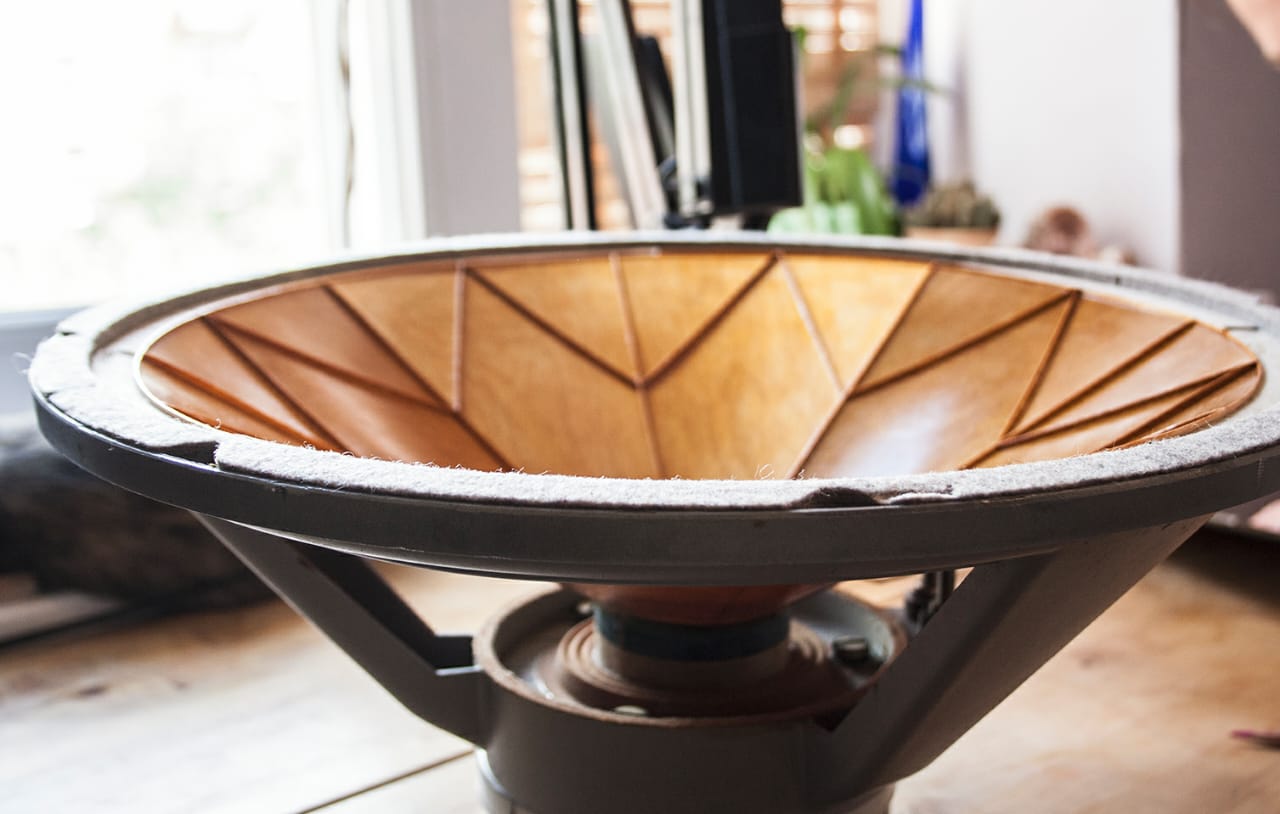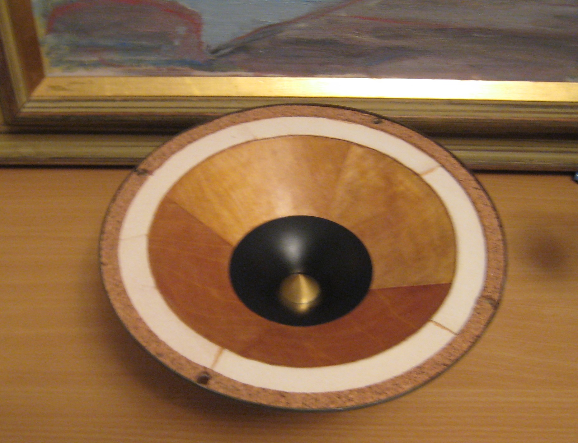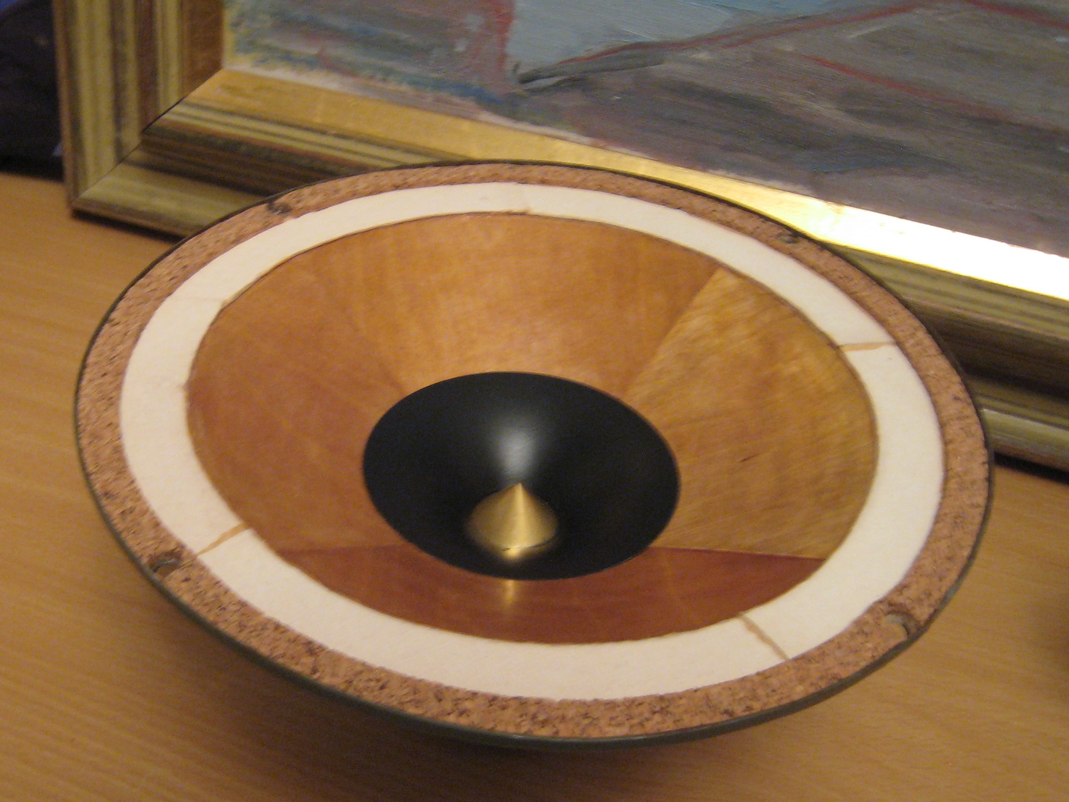 В центре стоят выгнутые покрытые шеллаком NOS немецкие диффузорчики 60х годов ,очень легкие и жесткие по форме образующей соответствуют Кондо Рути 1 весят всего 2 грамма
