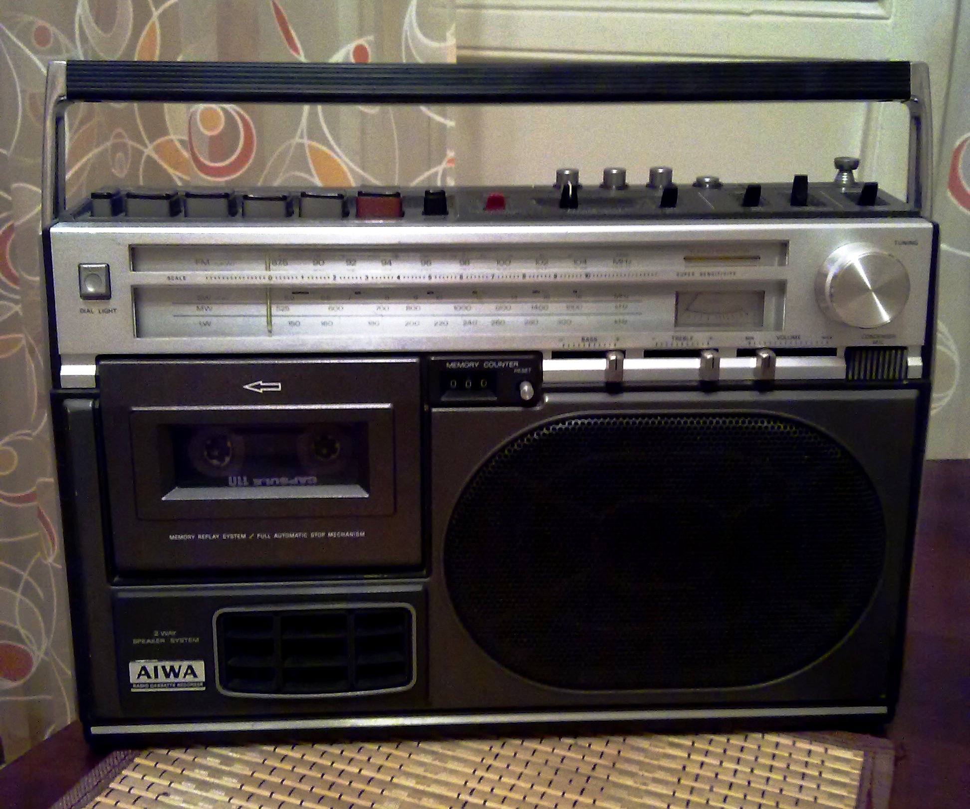 Среди старых монофонических магнитол есть много очень интересных аппаратов, особенно с овальными широкополосниками. Мы о таких еще поговорим попозже!... Ваша Aiwa TPR-300A - замечательный бумбокс! Если внимательно посмотреть в динамике, то можно увидеть много дизайнерских "вкусностей", присущих продуктам от компании Aiwa - специфическая лаконичность прямых линий в оформлении окна шкалы приемника - это у них от аппарата к аппарату переходило в качестве наследственной черты. Простота управления функциями - набор варикапов на лицевой панели, и сочетание светлого алюминия и вороненного цвета корпуса. Я не слышал эту модель в живую, но думаю, что на малой мощности звук должен быть очень комфортным! Сидишь за письменным столом ночью, работаешь или в интернете ковыряешься, из света - только настольная лампа, а она тебе на ушко интимно так джаз играет! Хорошо!... |