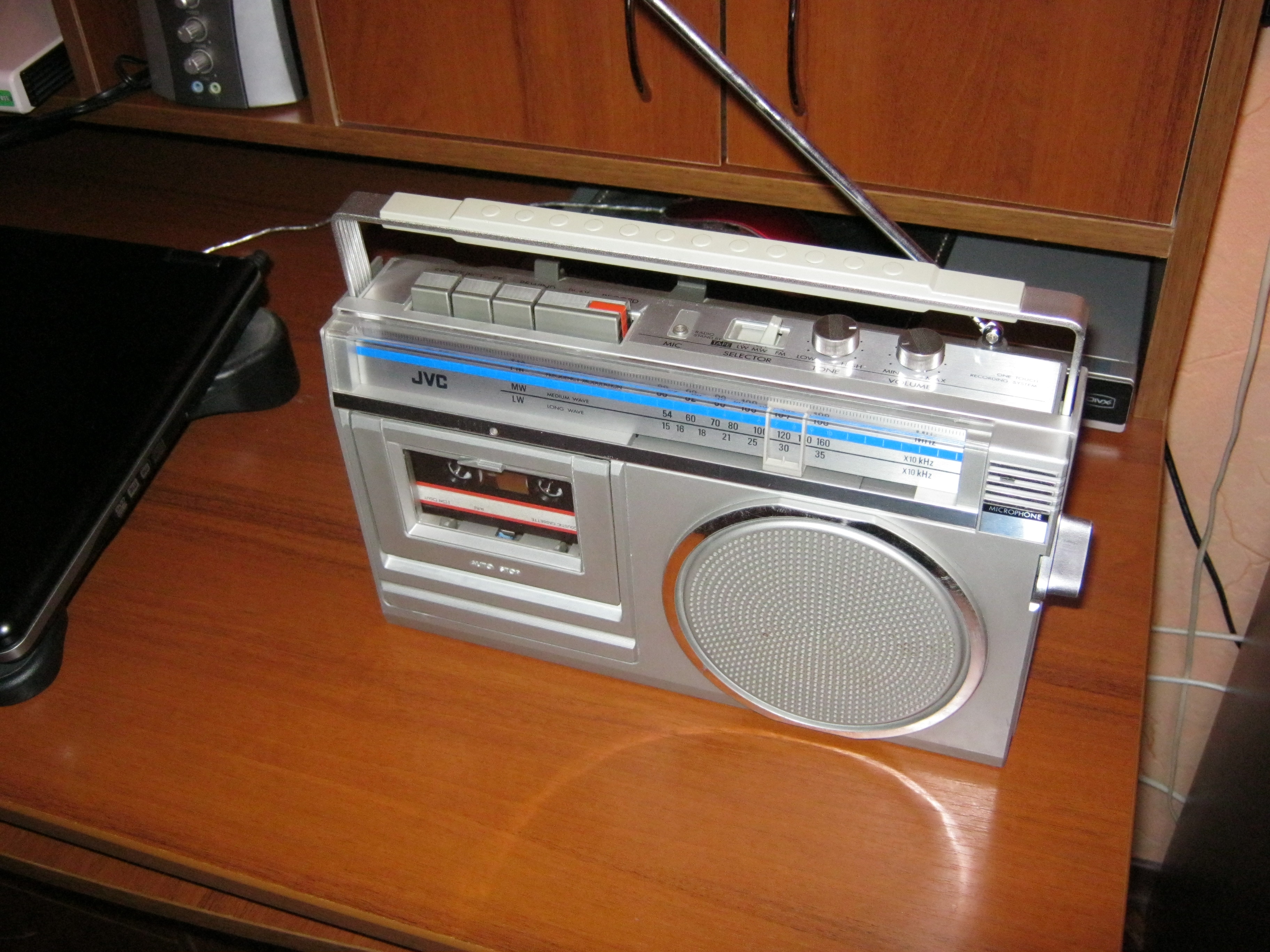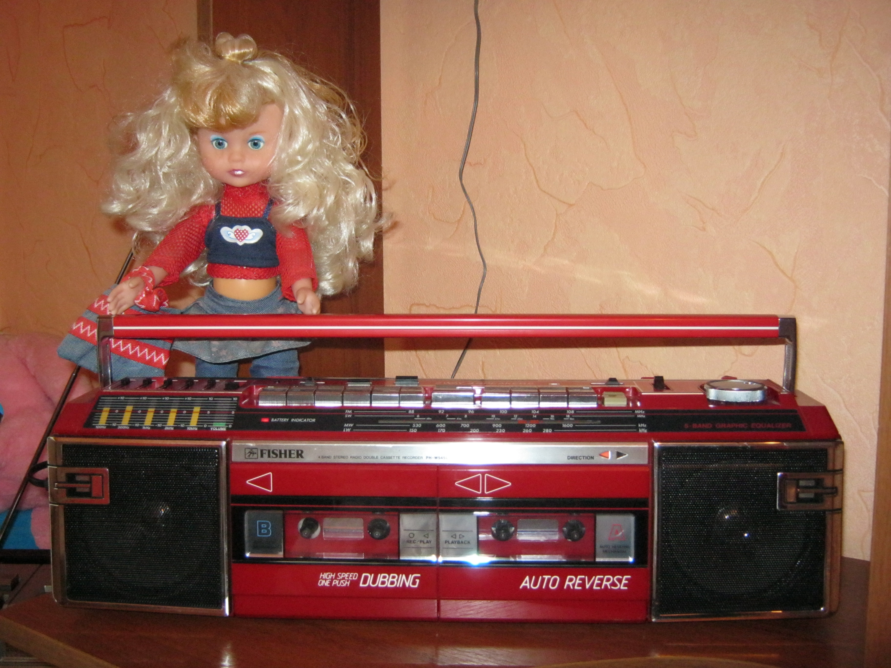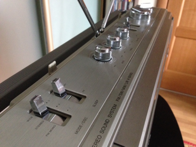 Это очень БОЛЬШАЯ магнитола и тяжелая, 1979 модельного года. На момент выпуска стоила примерно 560 долларов США. Огромные деньги для того времени! Цвет - шампань. Педальная кассетная дека поддерживала тип ленты хром, стрелочные индикаторы уровня записи-воспроизведения за большим прозрачным стеклом были прекрасны. Отличнвй приемник в лучшей марантцевской традиции в купе с индикатором качества принимаемого сигнала создавал ощущение очень дорогой и престижной техники. Акустика отстегивалась, что позволяло расширять стереобазу без дополнительных электронных примочек. Размер "лопухов" в 20 см позволял добиватся потрясающих результатов в звуковоспроизведении. Единственная фича - функция Лауднесс, совмещенная с регулятором уровня громкости - и все!