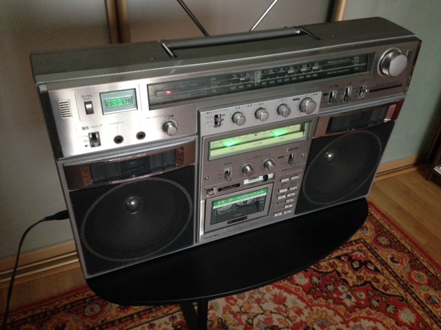 И первый рассказ будет об очень интересной магнитоле Toshiba RT-9990SM. Сразу скажу что мое отношение к этому аппарату несколько неоднозначное, но об этом далее... Итак аппарат вышел на рынок в 1980 году и выпускался только для внутреннего рынка Страны Восходящего Солнца, поэтому все надписи на аппарате выполнены на японском языке. К сожалению, ни данная модель, ни её модификация никогда не выходила для европейского рынка и это тем печальнее, так как качество аппарата и его звучание были просто превосходным. Ситуация схожа с автомобильной индустрией, как вы знаете японцы производили и продолжают производить только для своего рынка довольно много моделей автомобилей, которые отличаются великолепным качеством, своеобразным дизайном и даже обладающими культовыми статусами среди автолюбителей - тот же Ниссан Скайлайн тому ярчайший пример! Тоже самое мы имели и в индустрии магнитолостроения и Toshiba RT-9990SM не единственный и даже не самый лучший пример такого в высшей степени не справедливого отношения к заокеанским потребителям. Когда я говорю "заокеанским" я имею ввиду страны за пределами Японии вообще, а не Америку в частности, потому что это всего лишь прямой перевод с японского слова КАЙГАЙМУКЭ, которым обозначалась техника расчитанная на иное чем японское напряжение, и которое обычно продавалась через сеть магазинов TAX FREE под названием LAOX, коих только на Акихабаре в начале 90-х было целых три. В прошлом году я снова был на Акихабаре, так вот Лаоксов там остался только один, размером с гараж и торгующий в основном бытовой техникой и в котором целый этаж был отведен под продажу стульчаков для унитаза с подогревом, электронным управлением и художественным омыванием сами знаете чего. Аудио техники не было почти совсем, за исключением пары микросистем от Pioneer. Я плакал, вспоминая то многообразие интереснейшей техники, которое я имел счастье лицезреть в свою бытность студентом и которую успел снять на видео, когда ездил на Акихабару по субботам как в 21-й век.... Ну да ладно, что-то я отвлекся... Итак, Toshiba RT-9990SM. Технически аппарат несложный, что является его очень сильной стороной, так как там нечему ломаться... Традиционно отличный приемник с расширенным FM диапазоном, причем обратите внимание на фон шкалы - она не синяя, а снова металлическая, как на Toshiba RT-8980SM, о котором я писал ранее. Тот же интегрированный в шкалу приемника светодиодный индикатор уровня записи- воспроизведения в одну строчку. Блок управления функциями и звуком абсолютно идентичные другим моделям от Toshiba, включая аппараты для внешнего рынка. Крышка кассеторпиемника и педальные клавиши управления кассетной декой стандартные. Аппарат был двух-полосным и лишь грили были круглые, а не квадратные как на предыдущих аппаратах. Красиво были оформлены сетки пищалок со "звездочками" жесткости внутри... Самым главным же отличием и основной фишкой данной модели стала функция автопоиска. Она была вынесена на отдельную плашку над кассетной декой и позволяла находить до 10 треков в обе стороны. Откровенно говоря, решение было не то чтобы оригинальным - и Sharp GF-9696 и JVC RC-M70 также предлагали нечто подобное, однако, на мой вкус у обоих конкурентов это решение с точки зрения дизайна было выполнено более привлекательно чем на RT-9990. C тем как эта функция визуально оформлена на Toshiba RT-9990SM у меня есть некото
