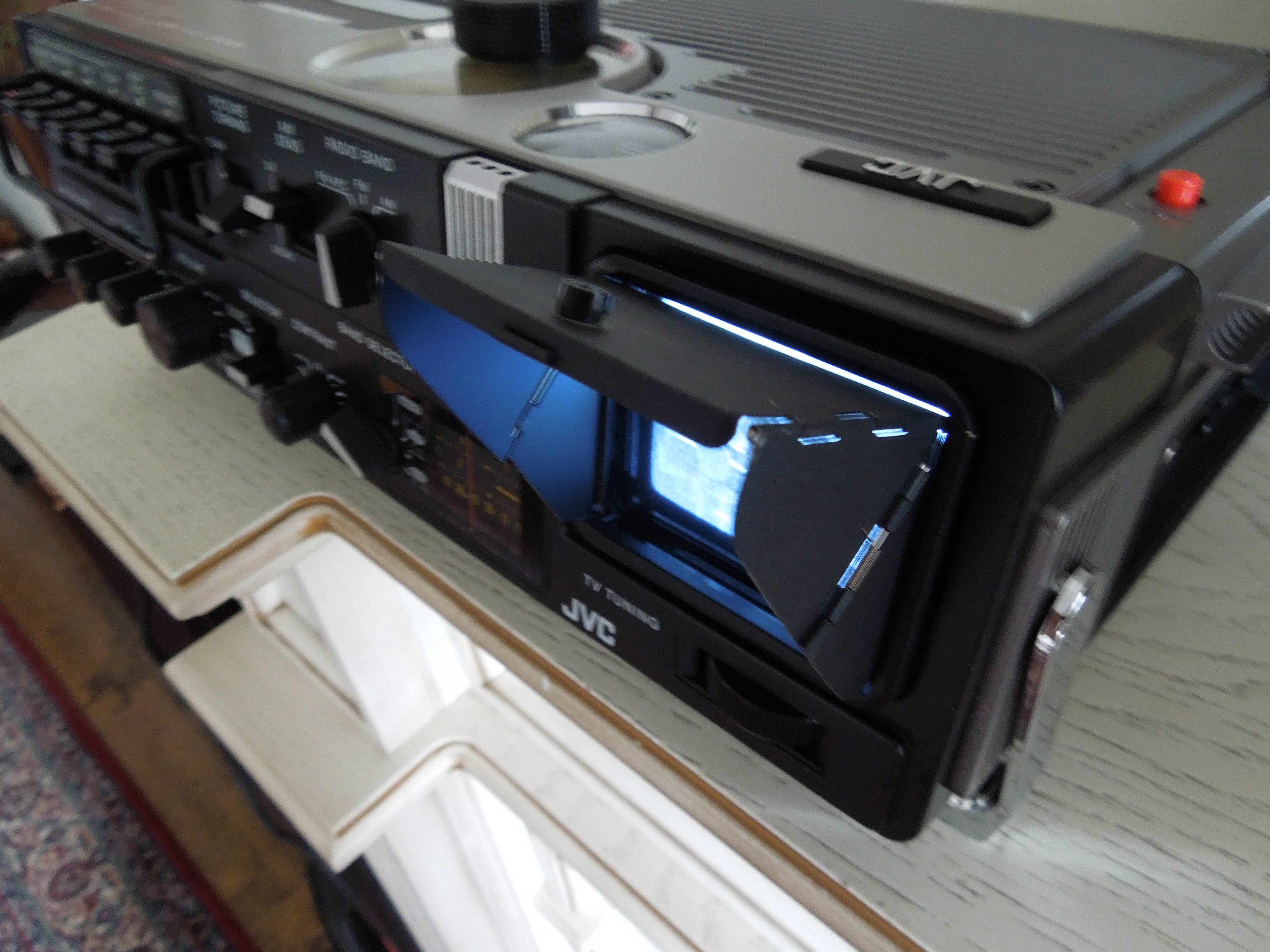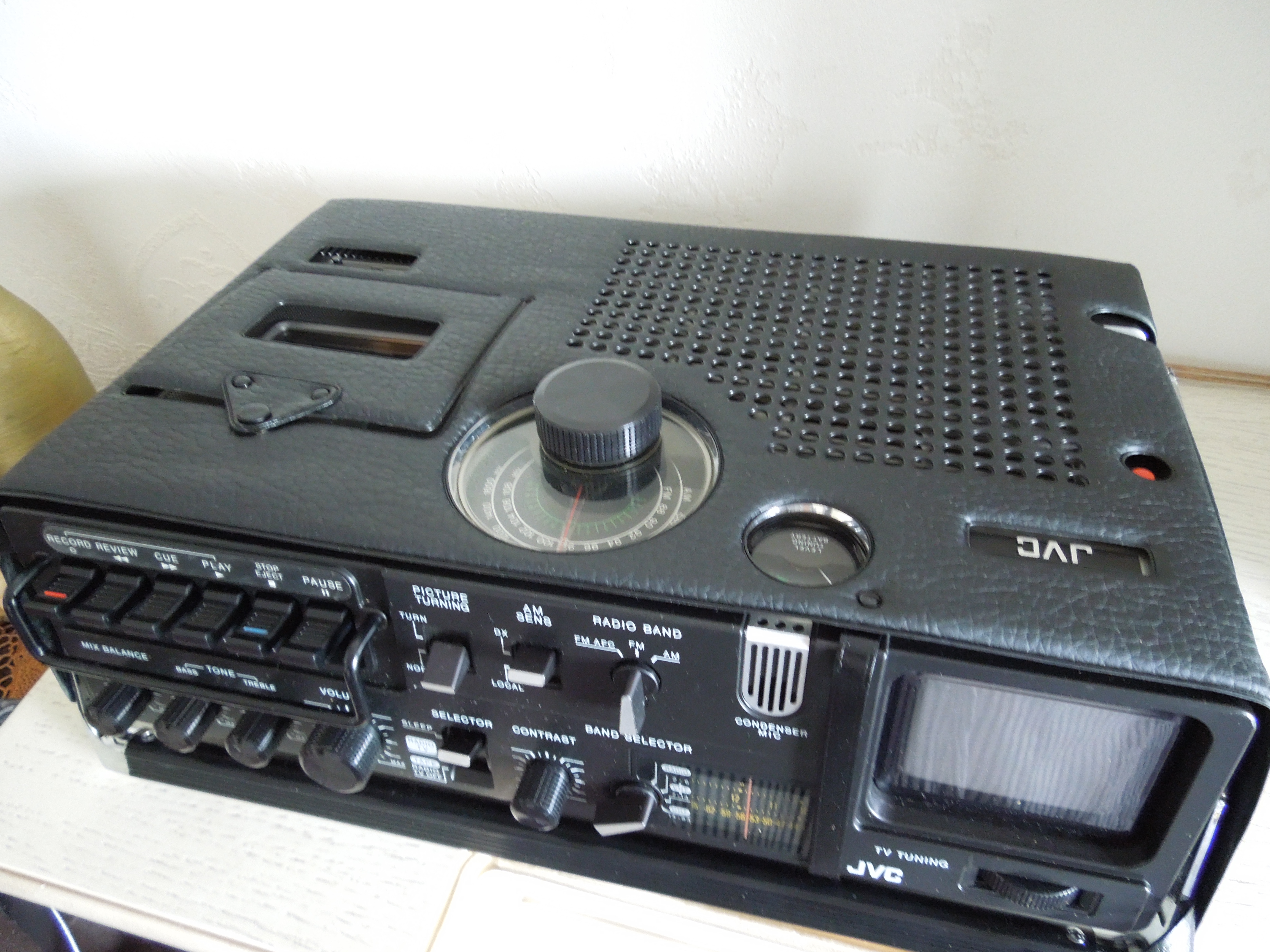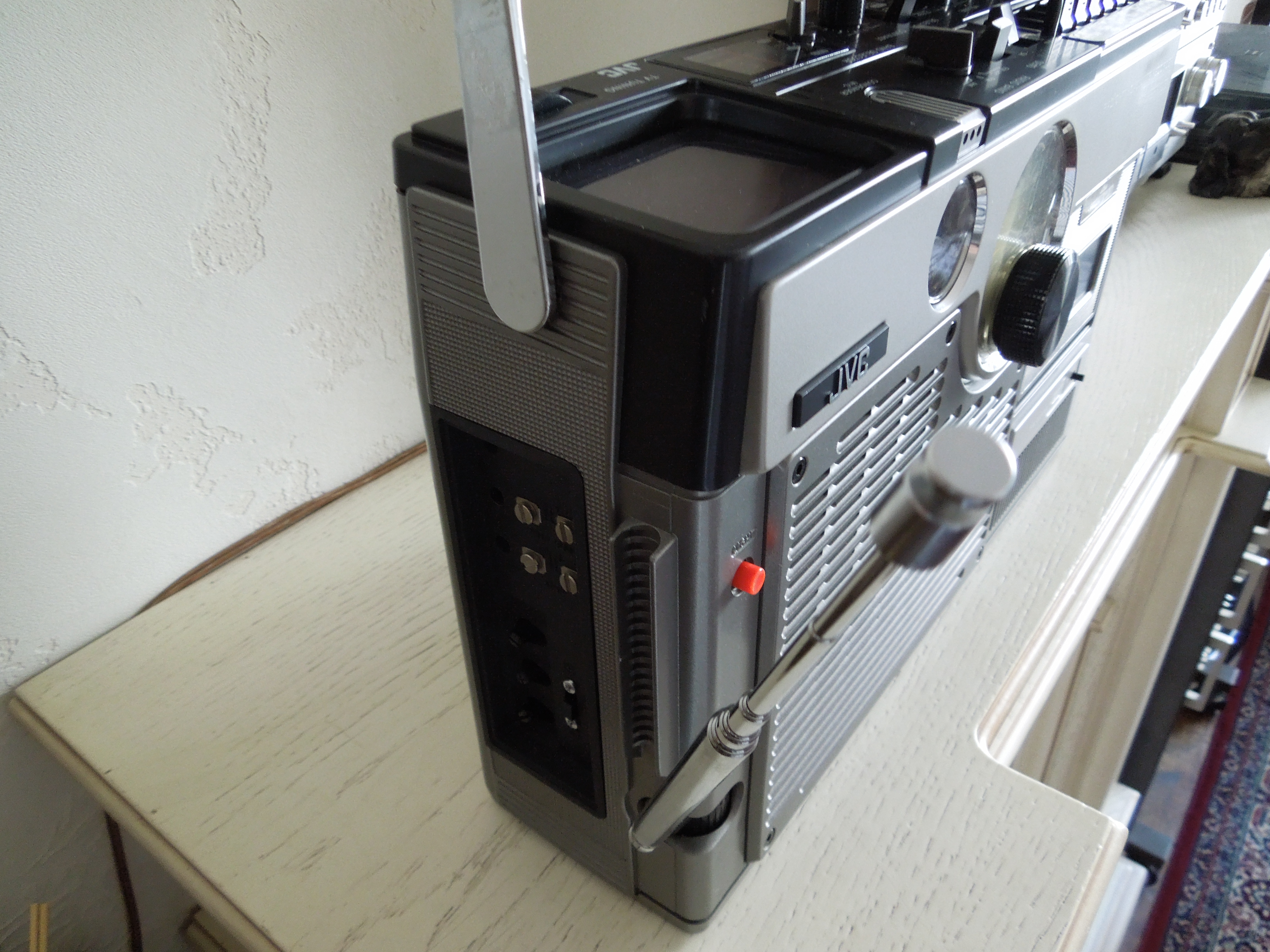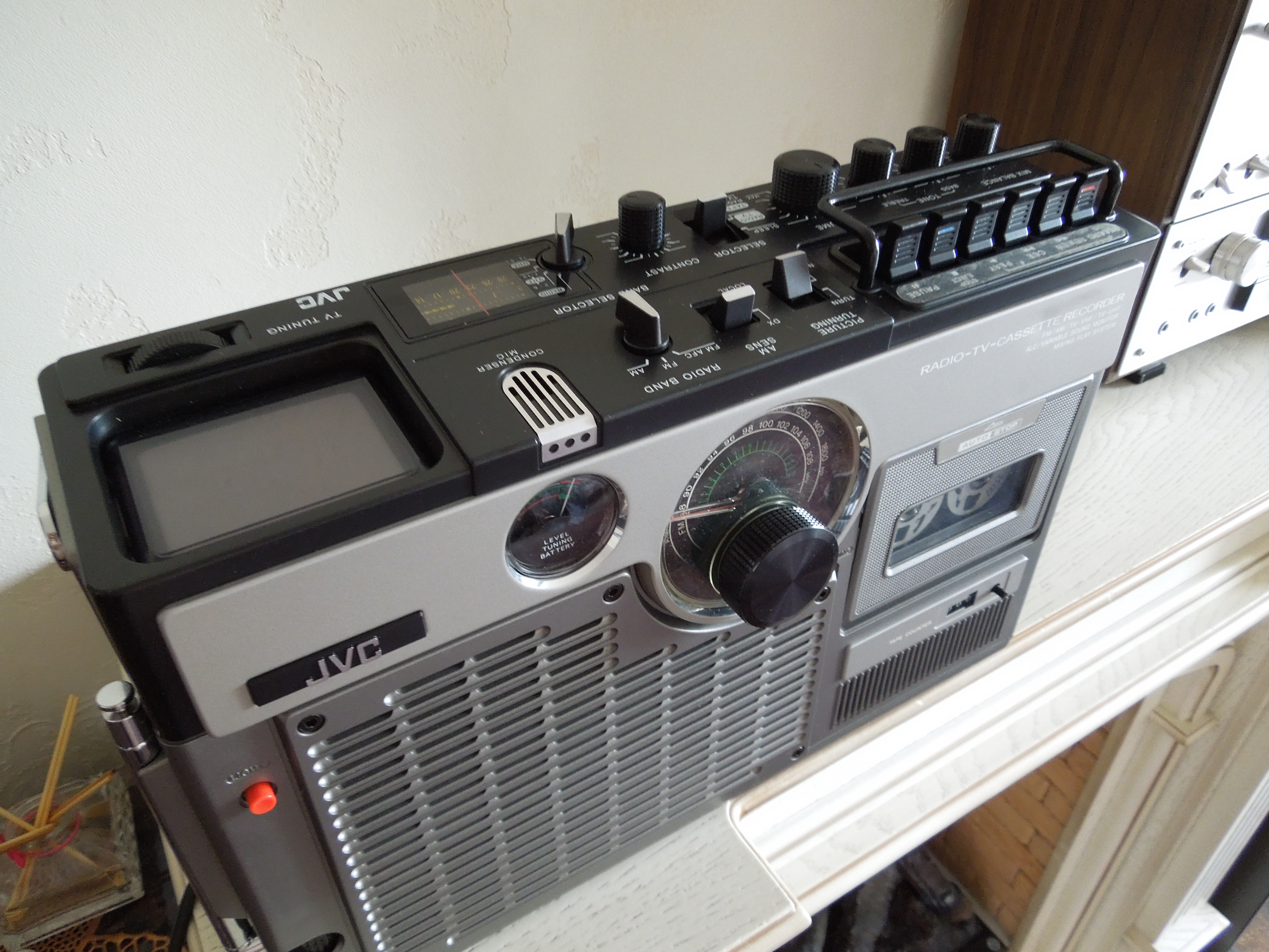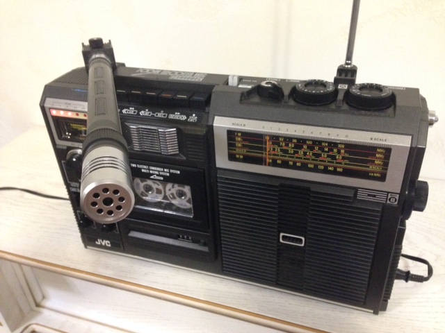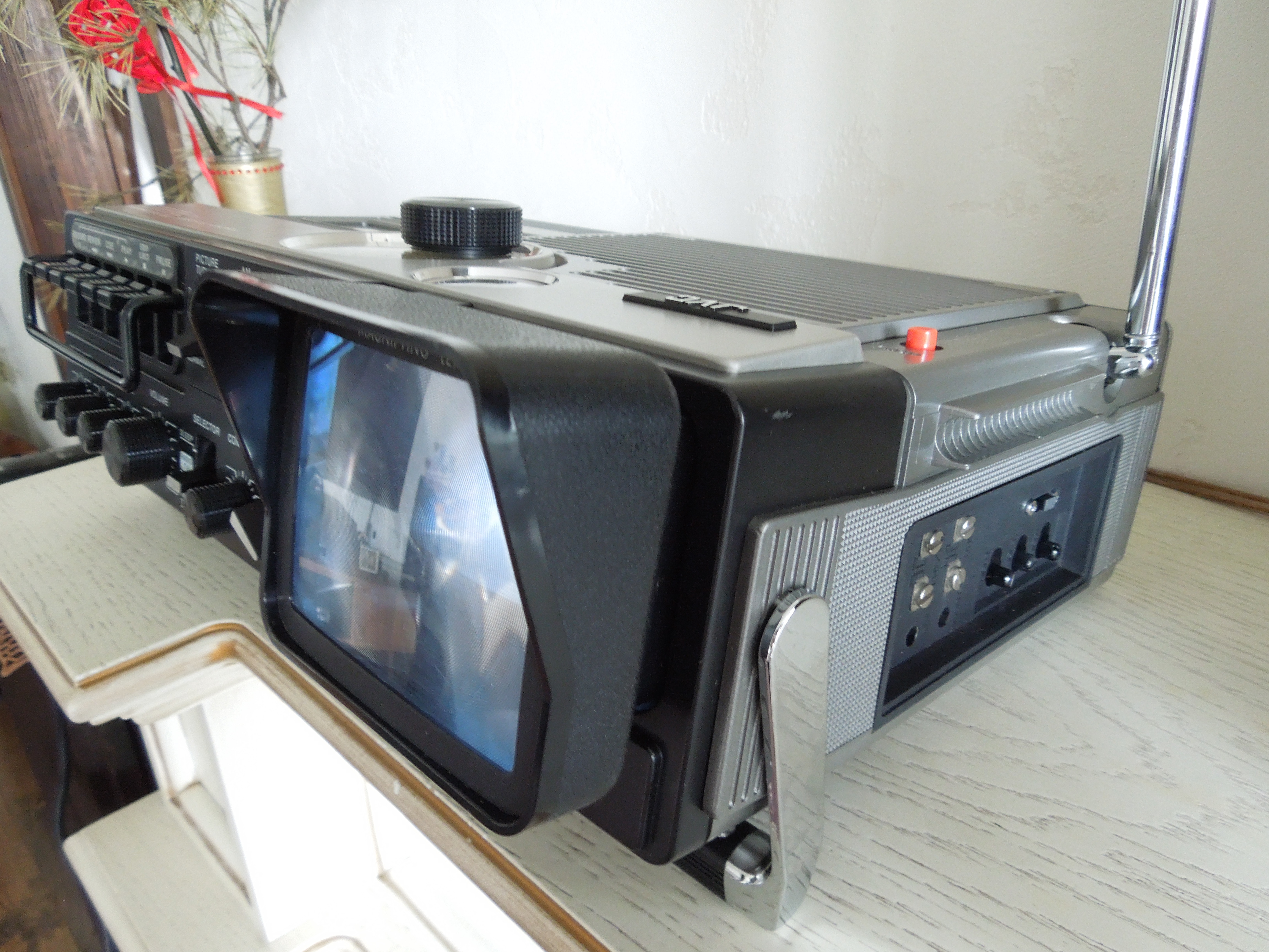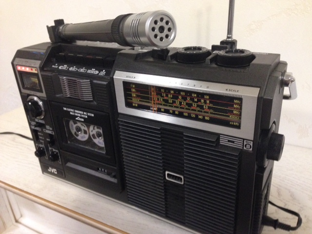 А потом инженеры JVC внимательно посмотрели за привычками и поведением своих целевых потребителей и решили, что они хотят не только слушать радио или кассеты и записывать с микрофонов, но и, например, выезжать с семьей на природу, особенно в период цветения сакуры, и наслаждаться там не только видом замечательных цветов, но и слушать там музыку с тех же радио и кассет, и, возможно, ( о боже! ) , смотреть телевизор, особенно если по нему транслируют бейсбол, который как известно, имеет дикую популярность в Стране Восходящего Солнца! И они немедленно предложили рынку свое решение - переносную ТВ-магнитолу три-в-одном!