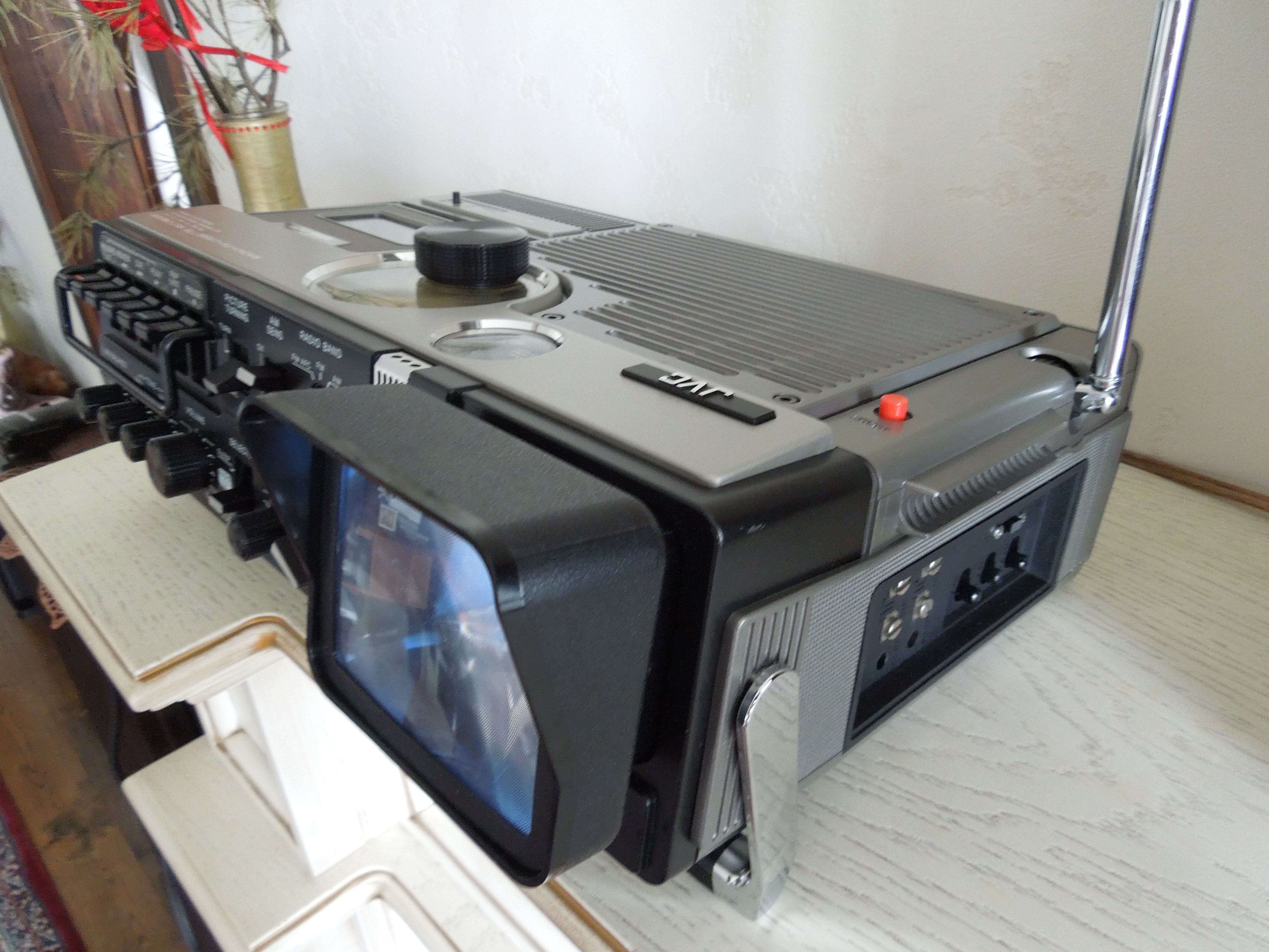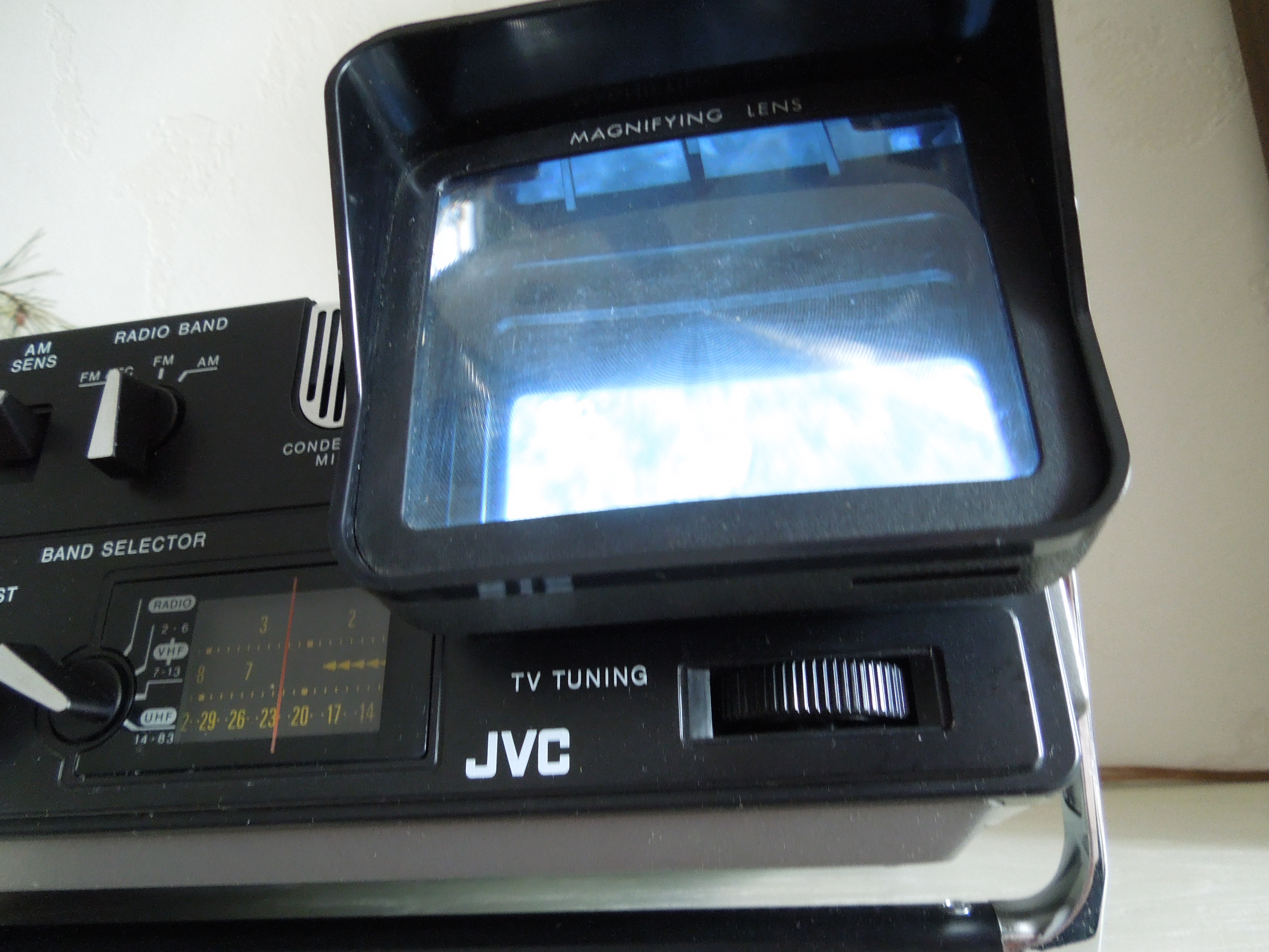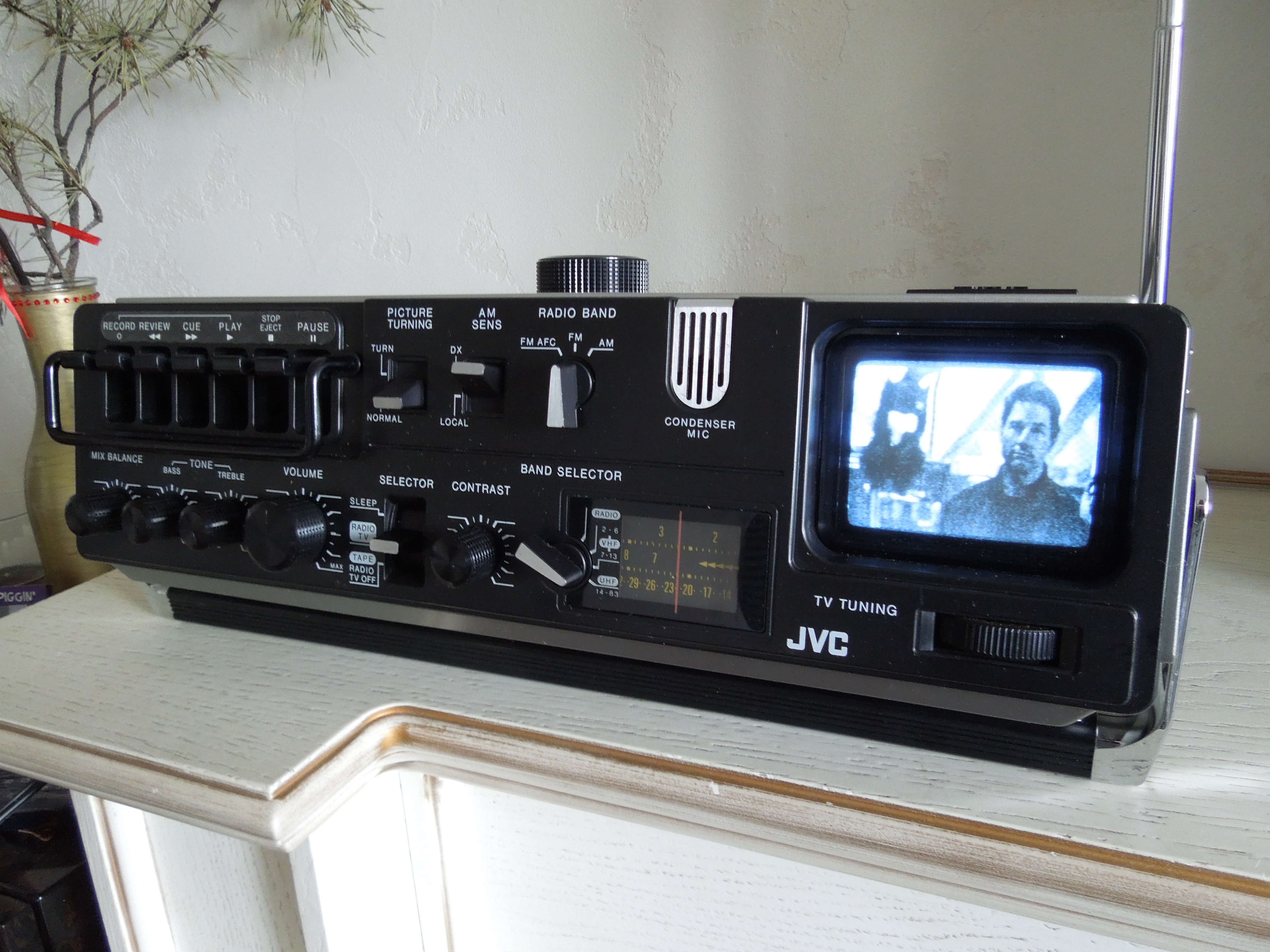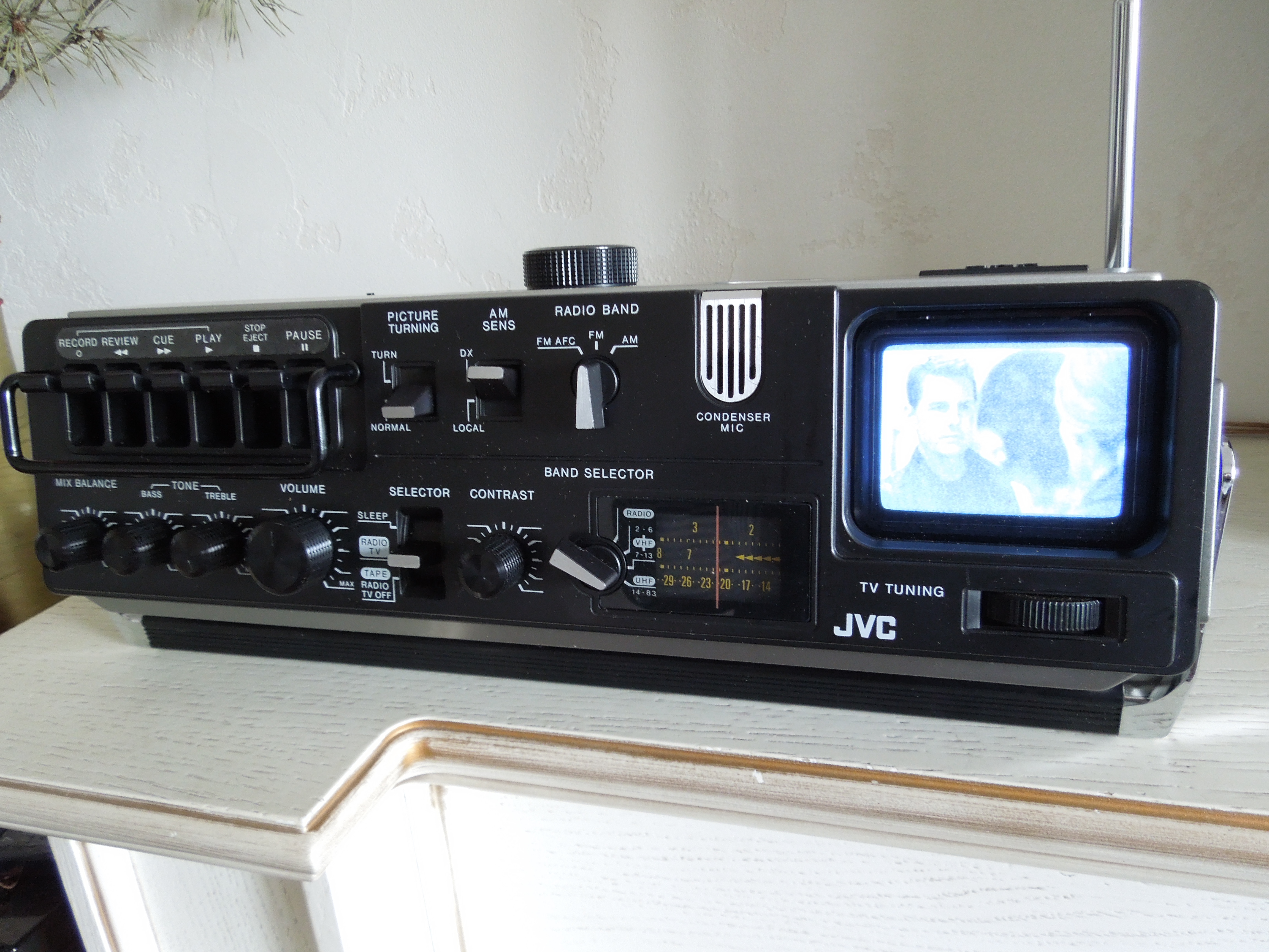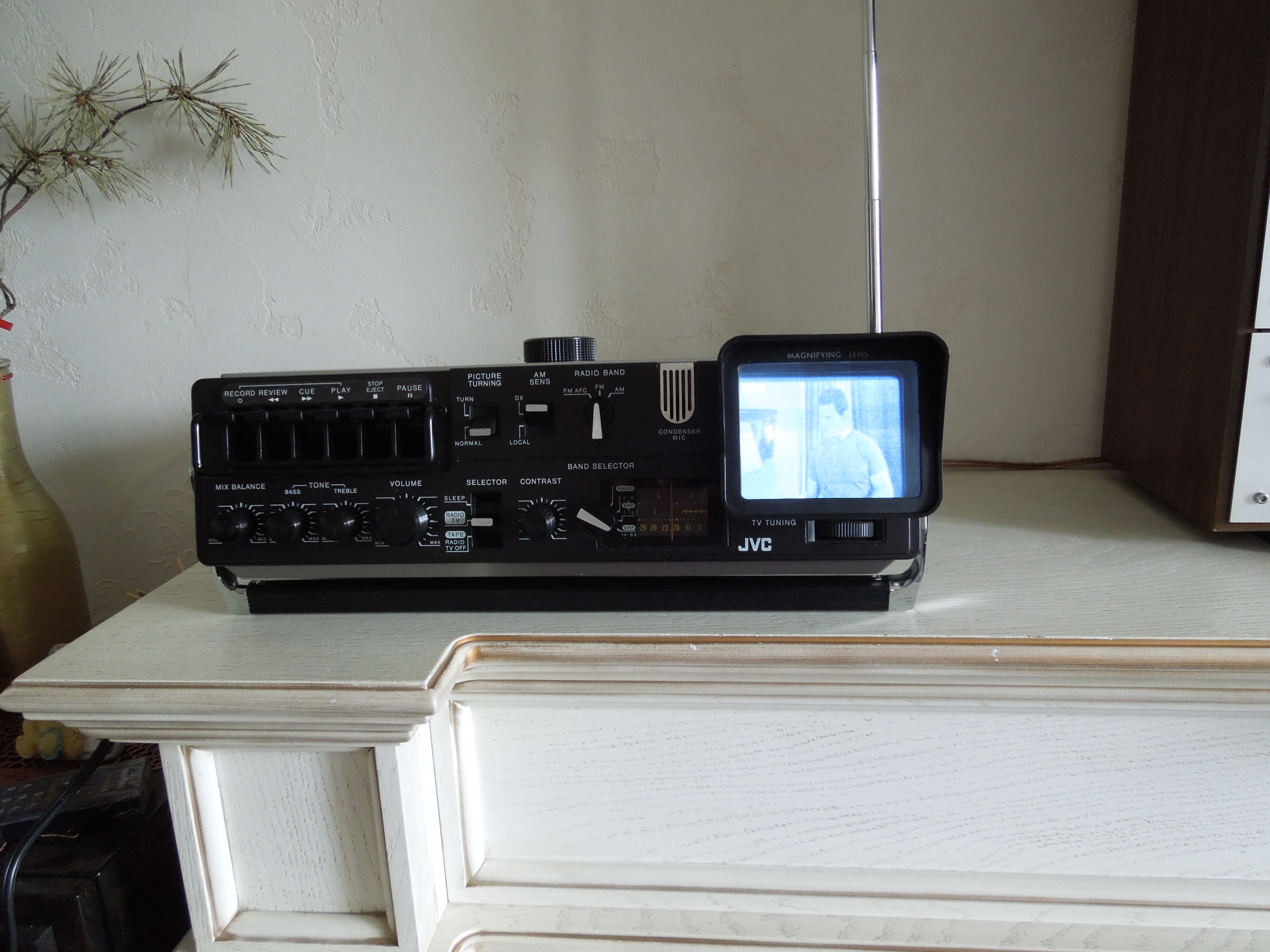 А потом инженеры JVC внимательно посмотрели за привычками и поведением своих целевых потребителей и решили, что они хотят не только слушать радио или кассеты и записывать с микрофонов, но и, например, выезжать с семьей на природу, особенно в период цветения сакуры, и наслаждаться там не только видом замечательных цветов, но и слушать там музыку с тех же радио и кассет, и, возможно, ( о боже! ) , смотреть телевизор, особенно если по нему транслируют бейсбол, который как известно, имеет дикую популярность в Стране Восходящего Солнца! И они немедленно предложили рынку свое решение - переносную ТВ-магнитолу три-в-одном!