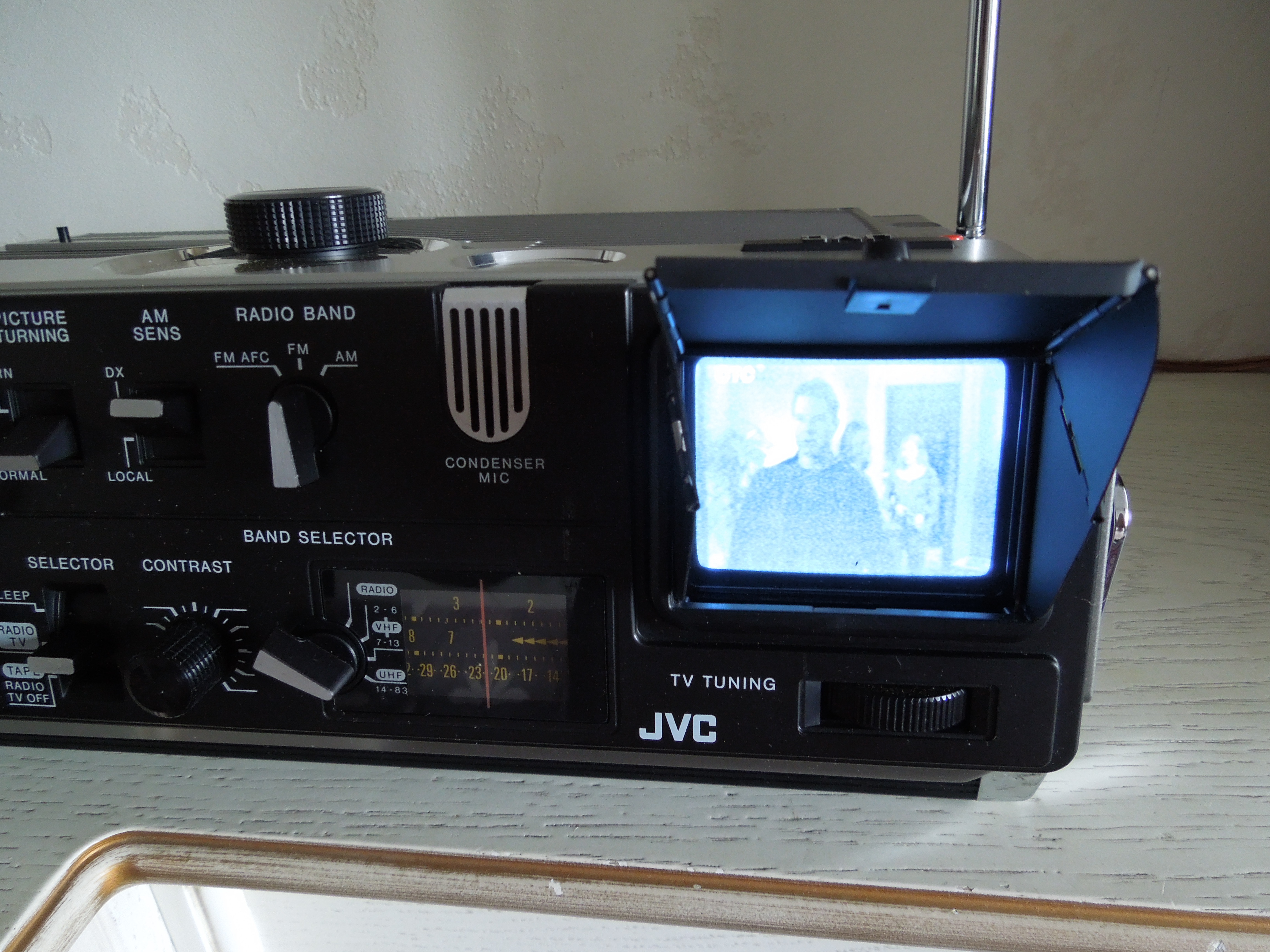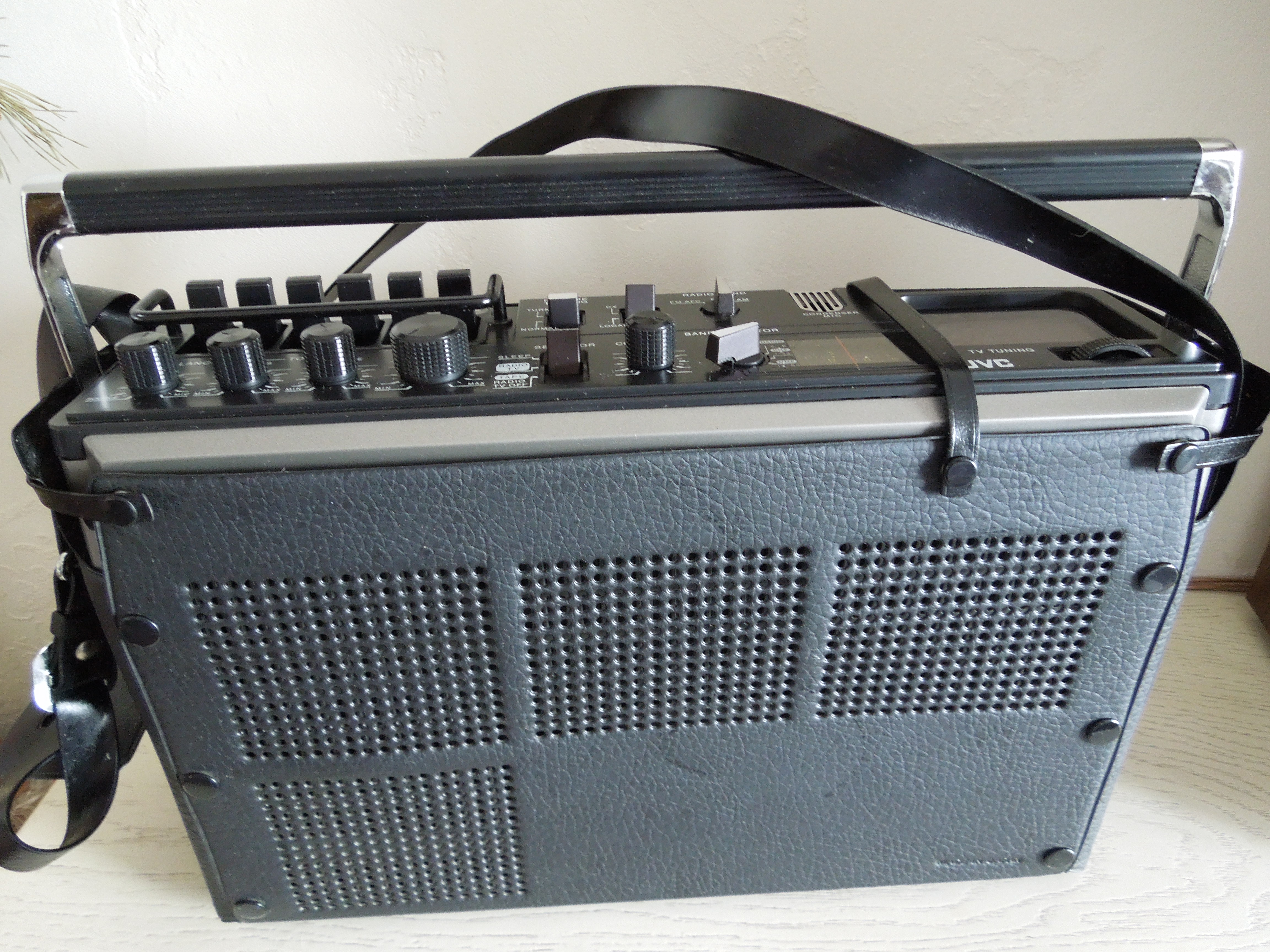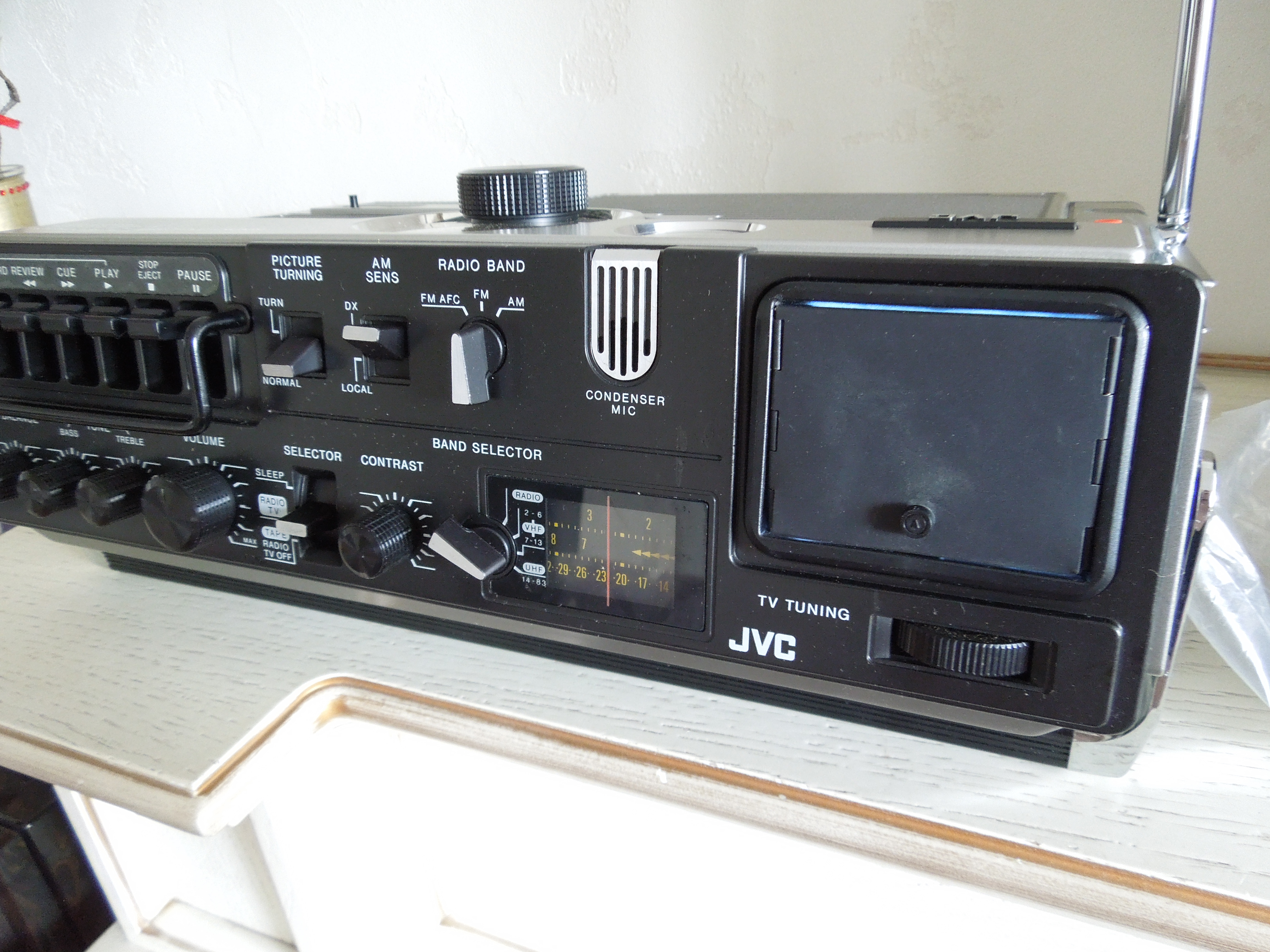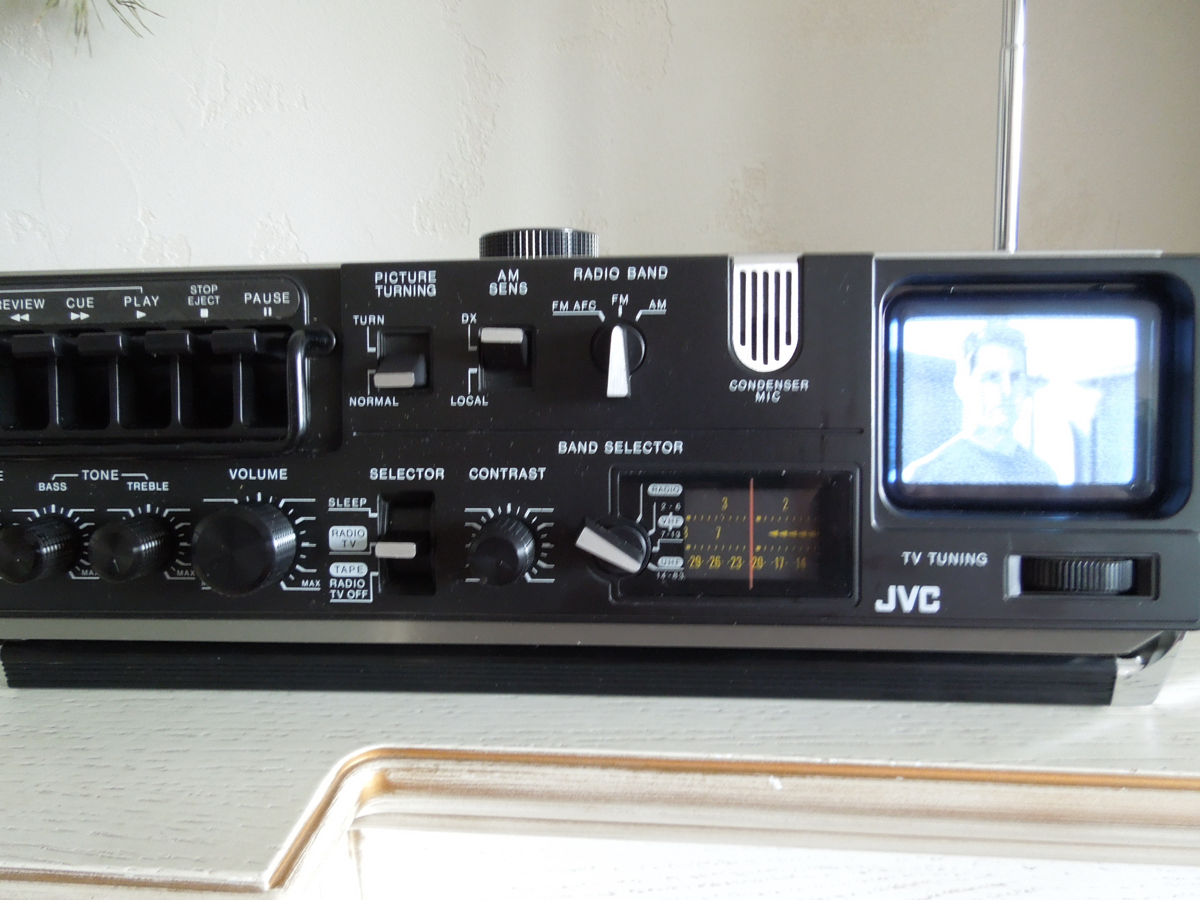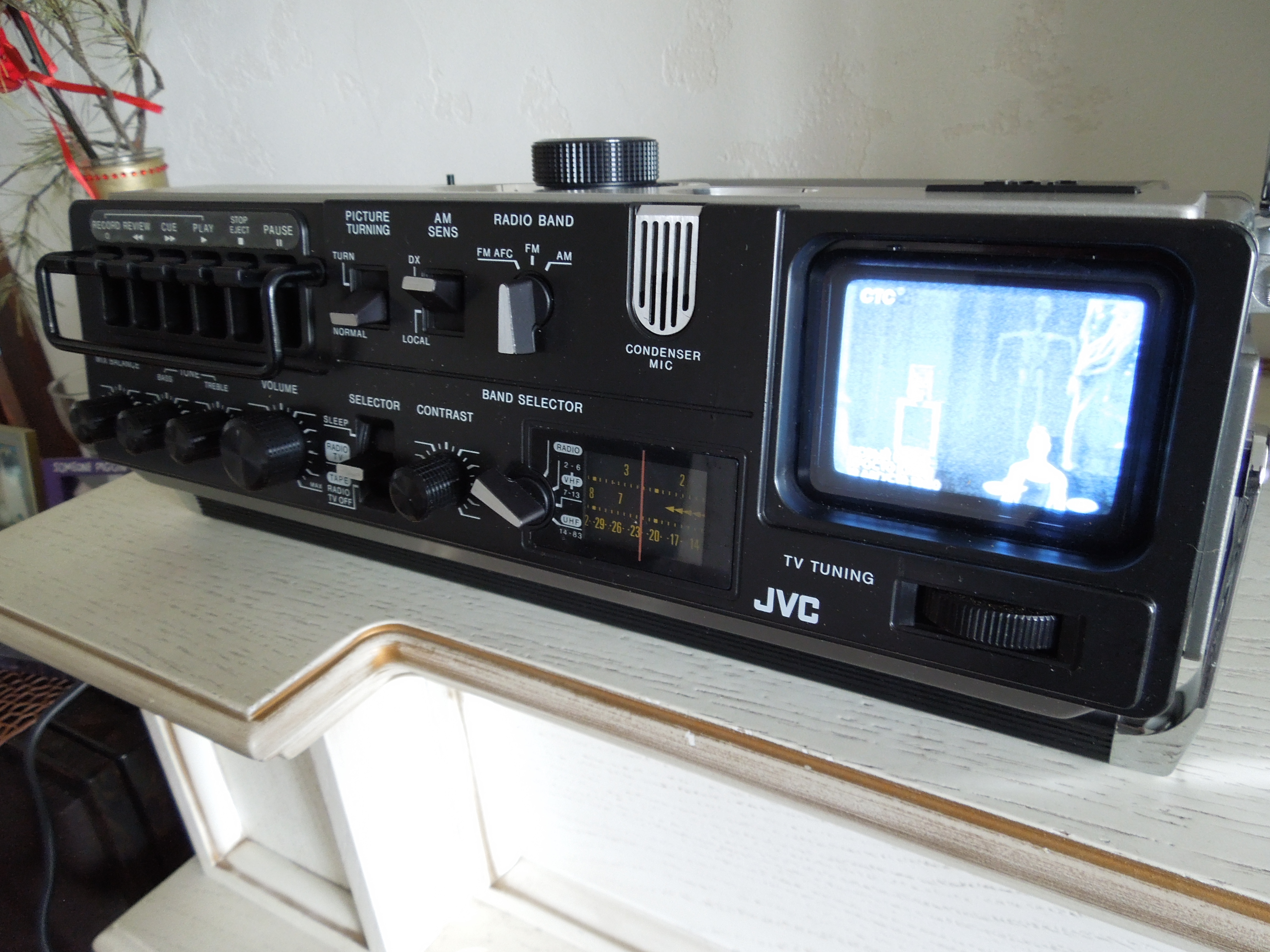 А потом инженеры JVC внимательно посмотрели за привычками и поведением своих целевых потребителей и решили, что они хотят не только слушать радио или кассеты и записывать с микрофонов, но и, например, выезжать с семьей на природу, особенно в период цветения сакуры, и наслаждаться там не только видом замечательных цветов, но и слушать там музыку с тех же радио и кассет, и, возможно, ( о боже! ) , смотреть телевизор, особенно если по нему транслируют бейсбол, который как известно, имеет дикую популярность в Стране Восходящего Солнца! И они немедленно предложили рынку свое решение - переносную ТВ-магнитолу три-в-одном!