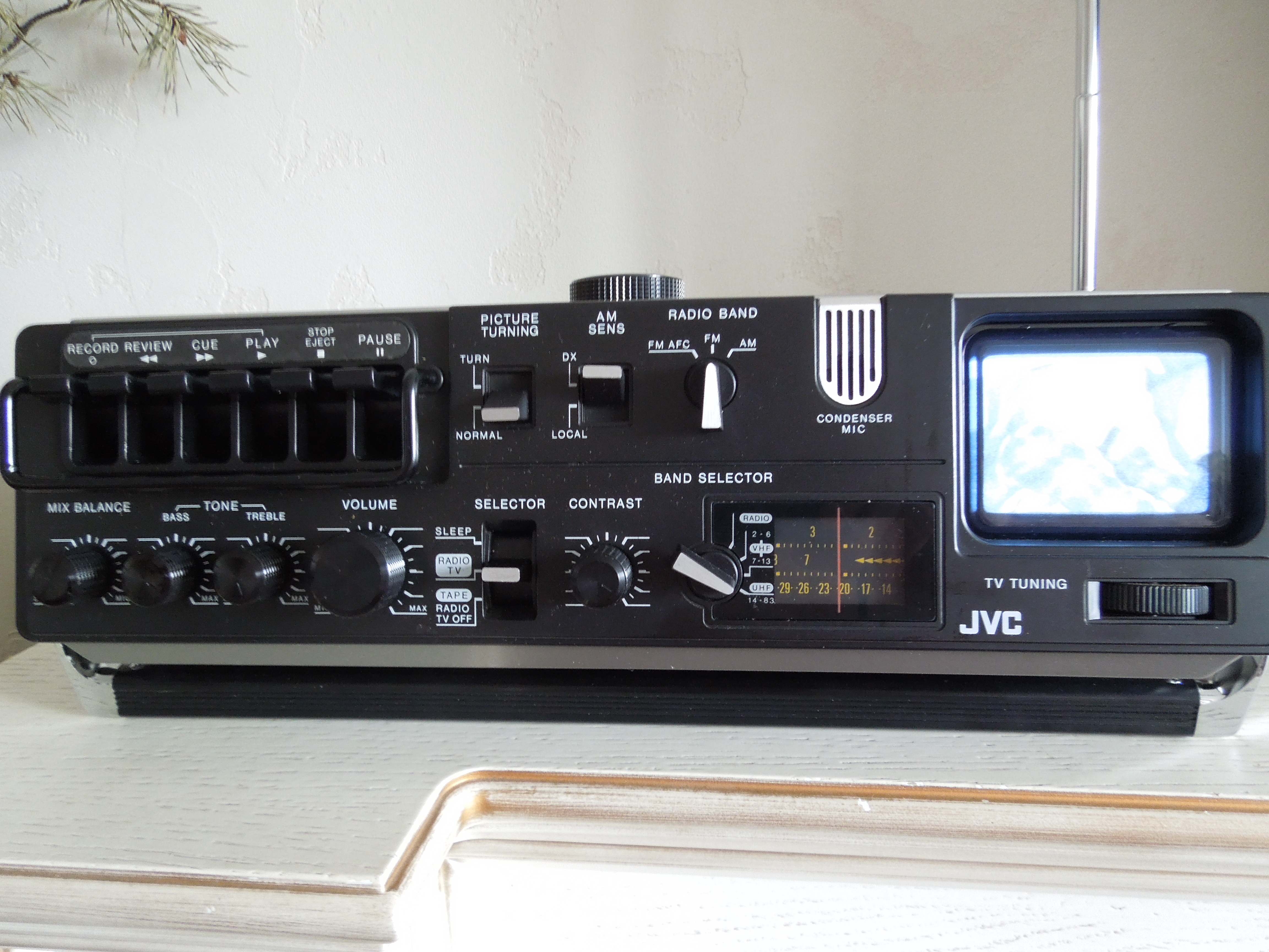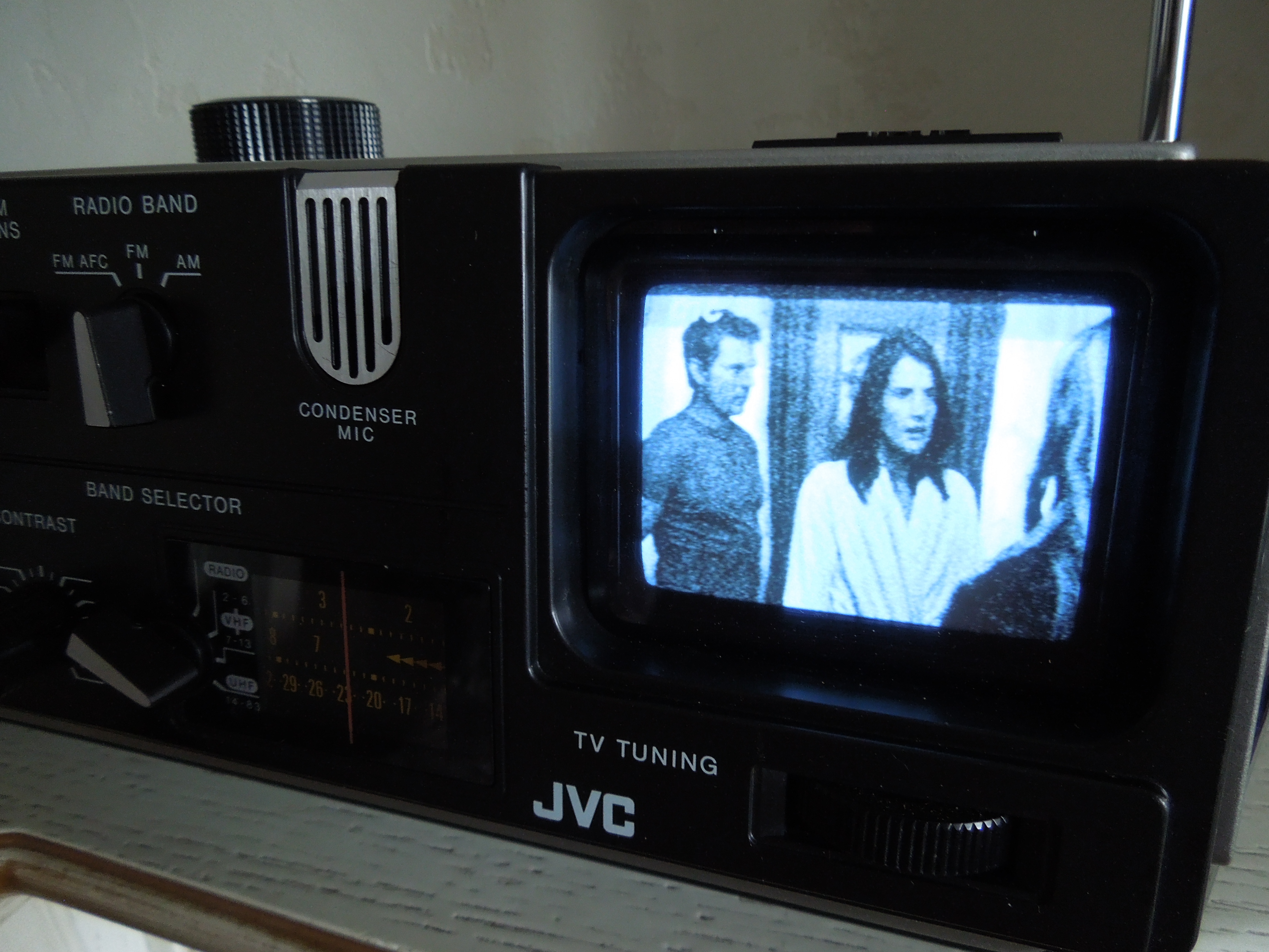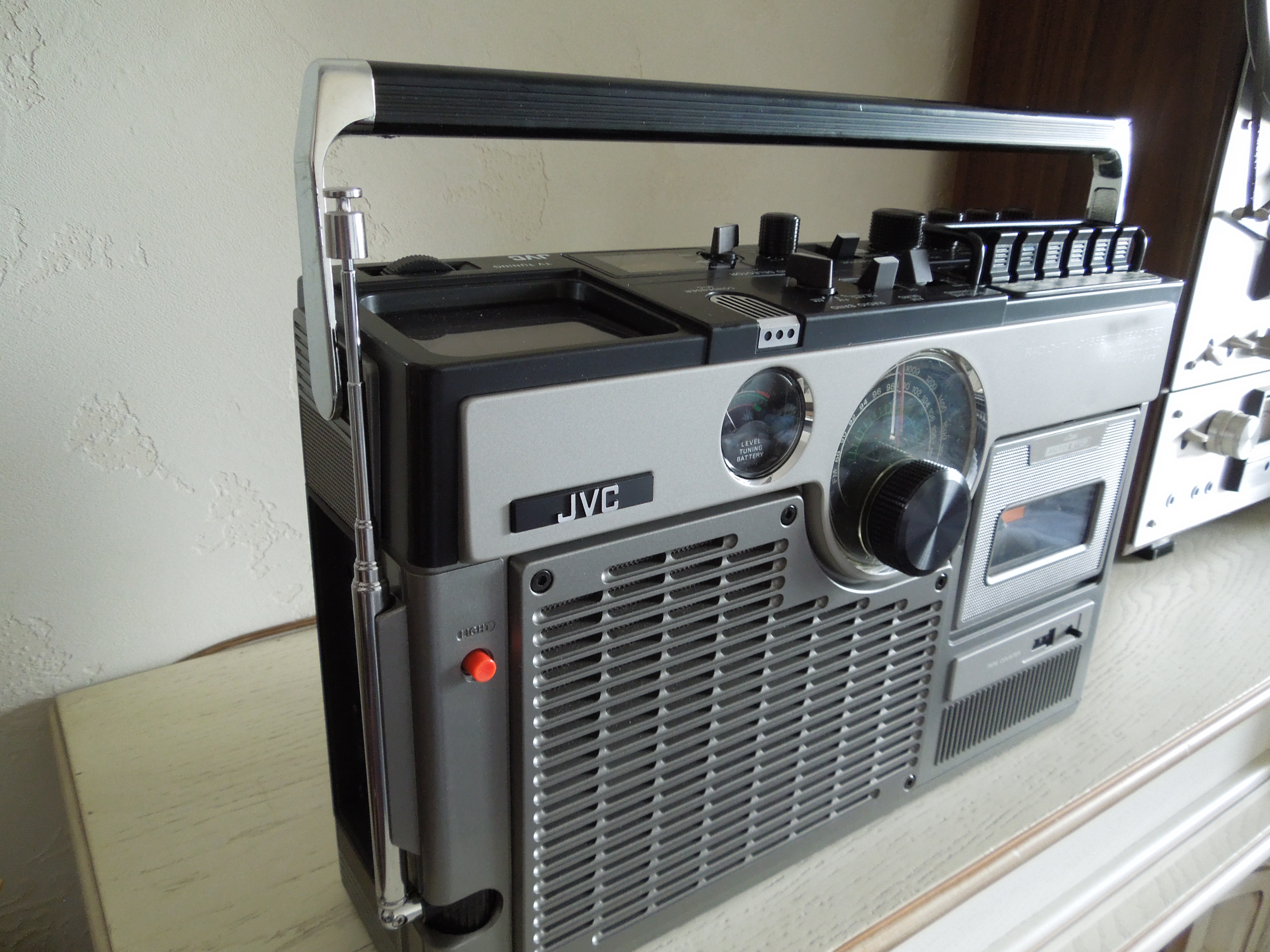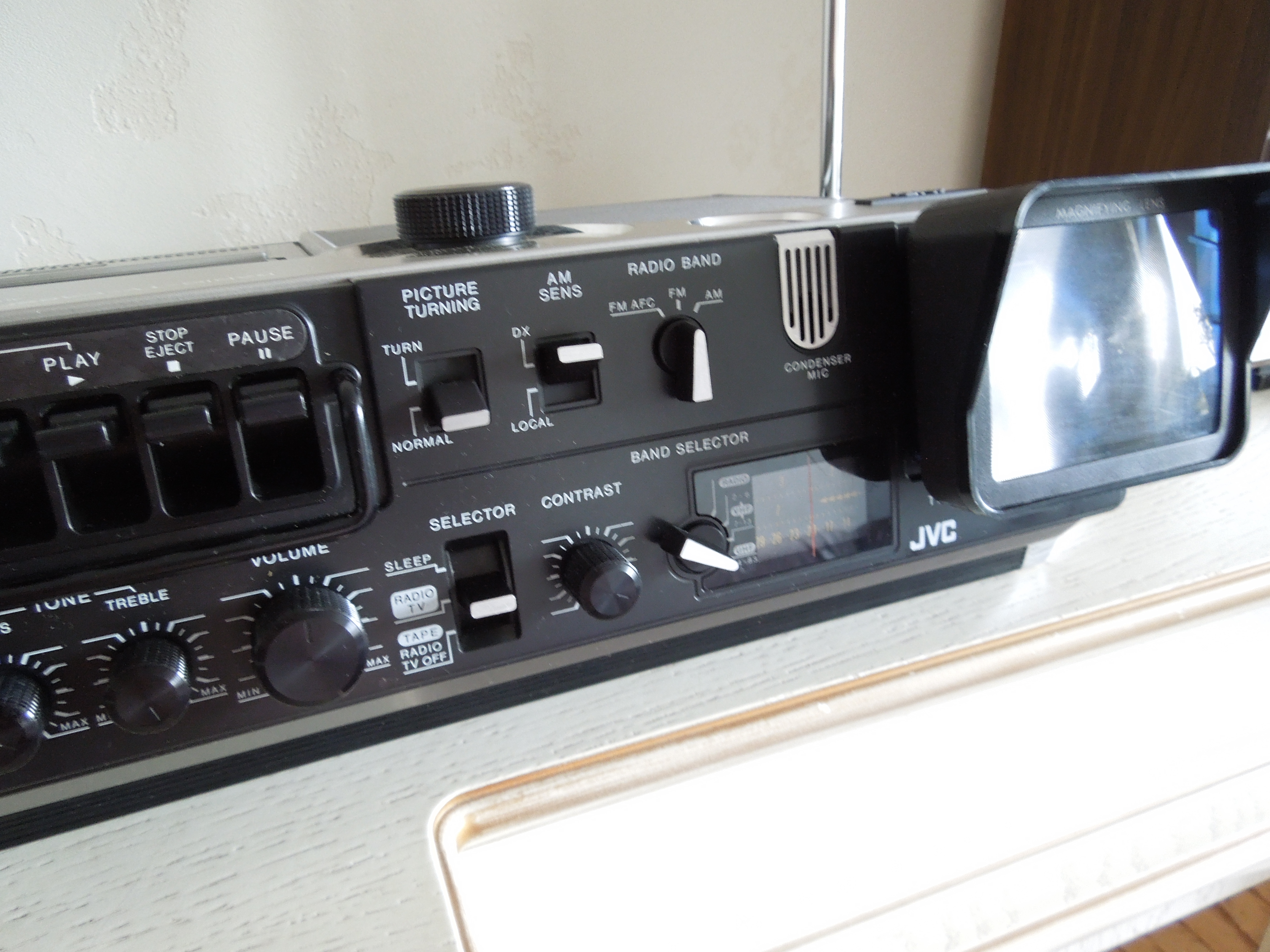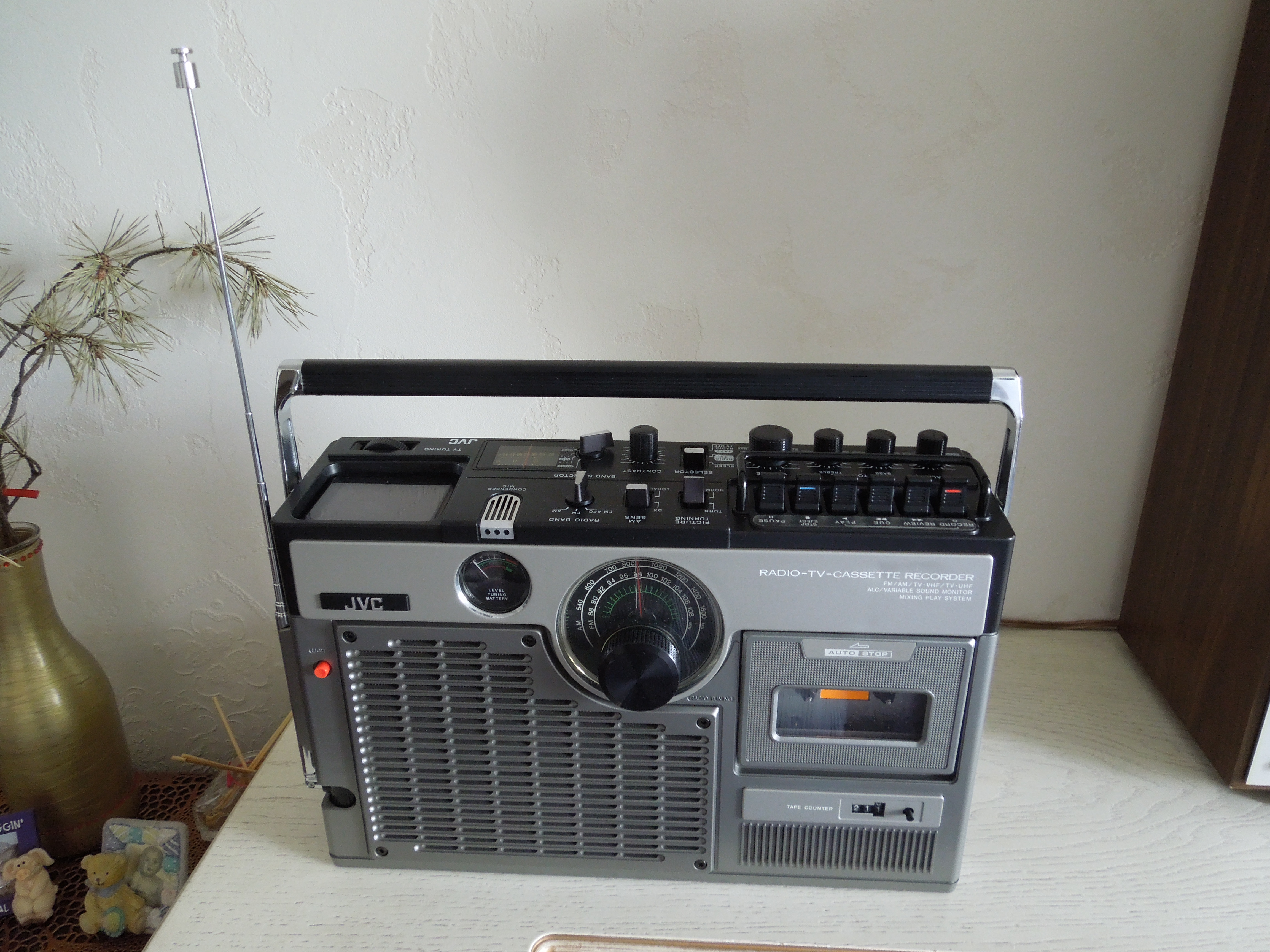 А потом инженеры JVC внимательно посмотрели за привычками и поведением своих целевых потребителей и решили, что они хотят не только слушать радио или кассеты и записывать с микрофонов, но и, например, выезжать с семьей на природу, особенно в период цветения сакуры, и наслаждаться там не только видом замечательных цветов, но и слушать там музыку с тех же радио и кассет, и, возможно, ( о боже! ) , смотреть телевизор, особенно если по нему транслируют бейсбол, который как известно, имеет дикую популярность в Стране Восходящего Солнца! И они немедленно предложили рынку свое решение - переносную ТВ-магнитолу три-в-одном!