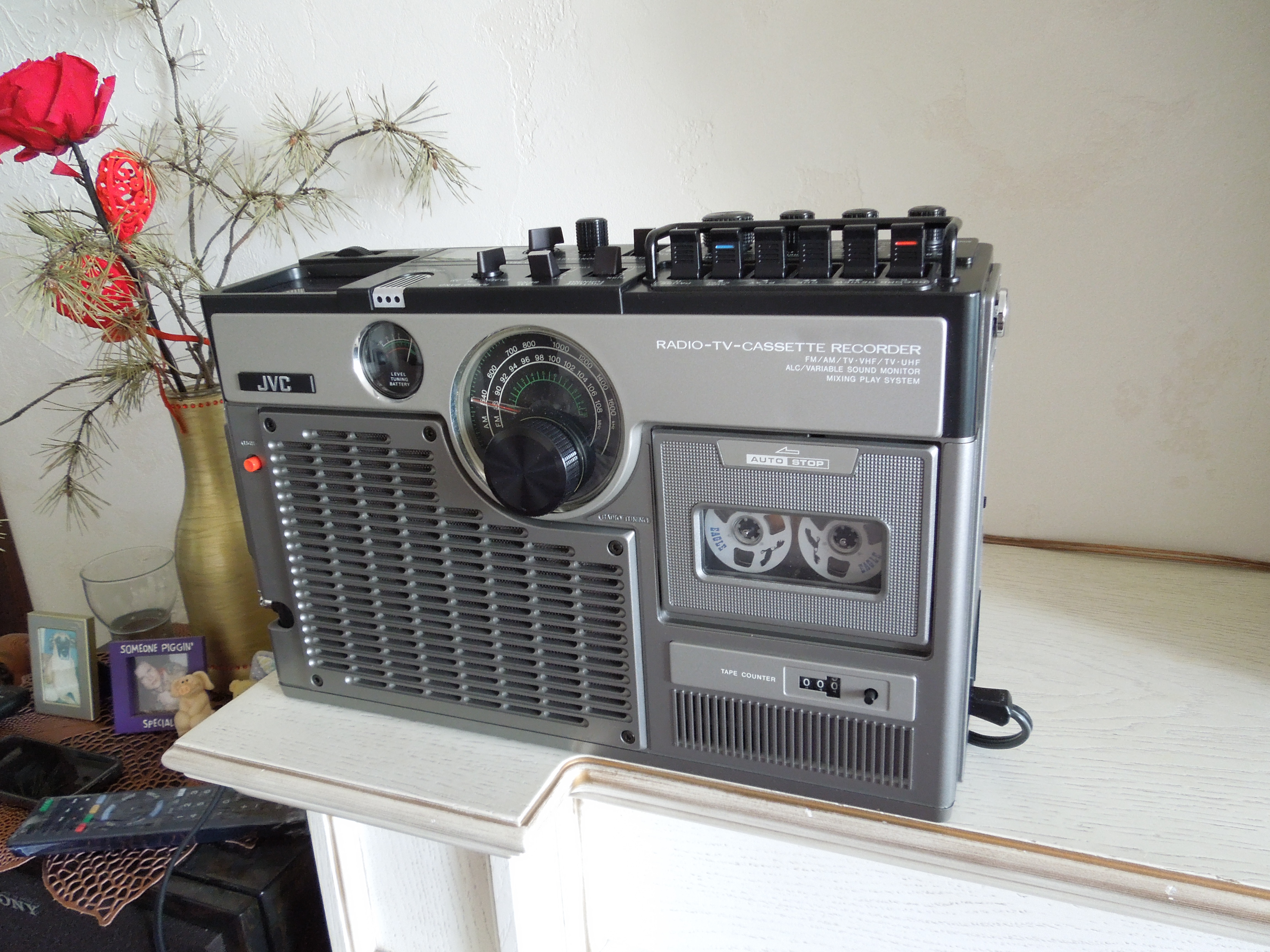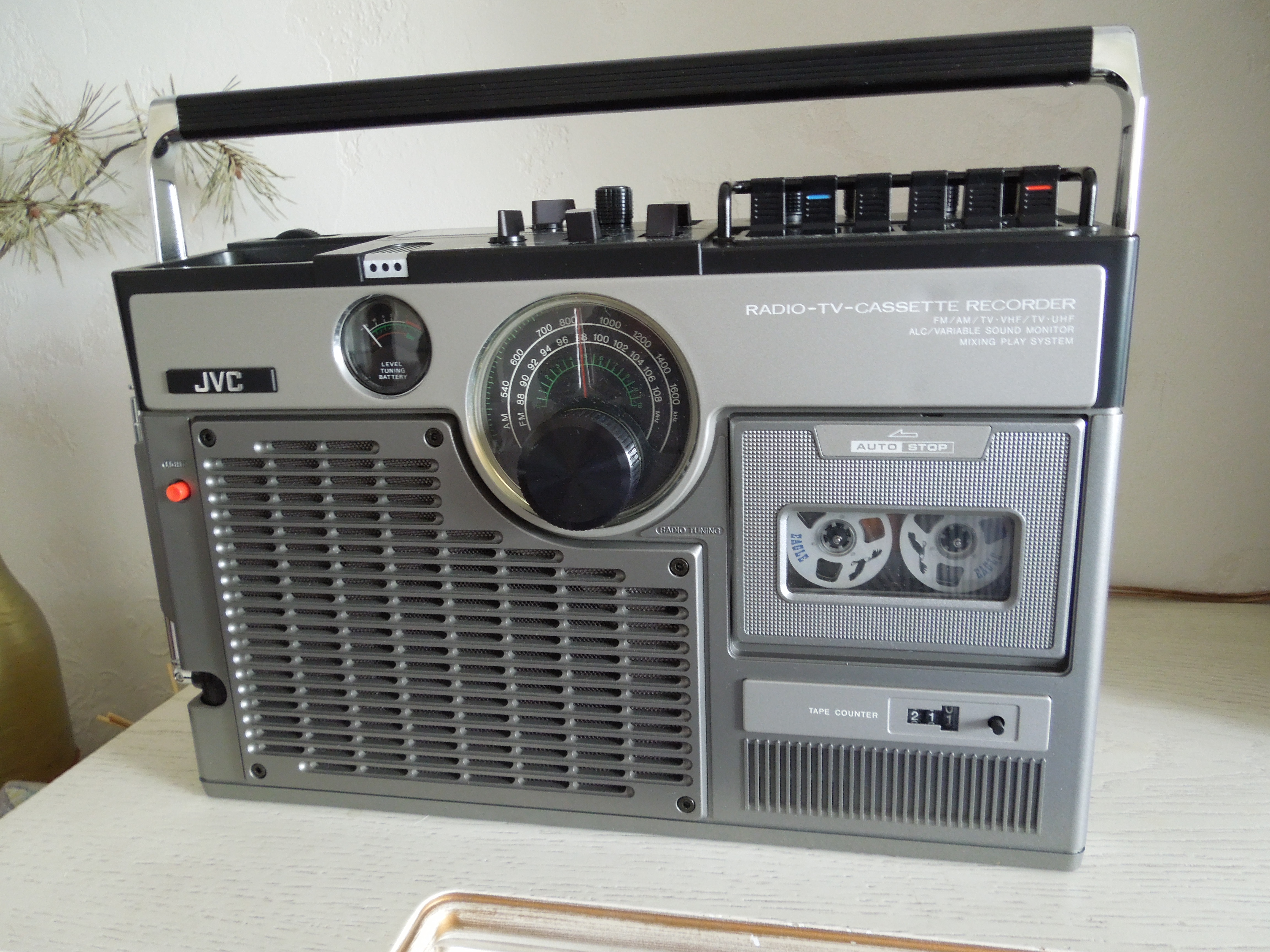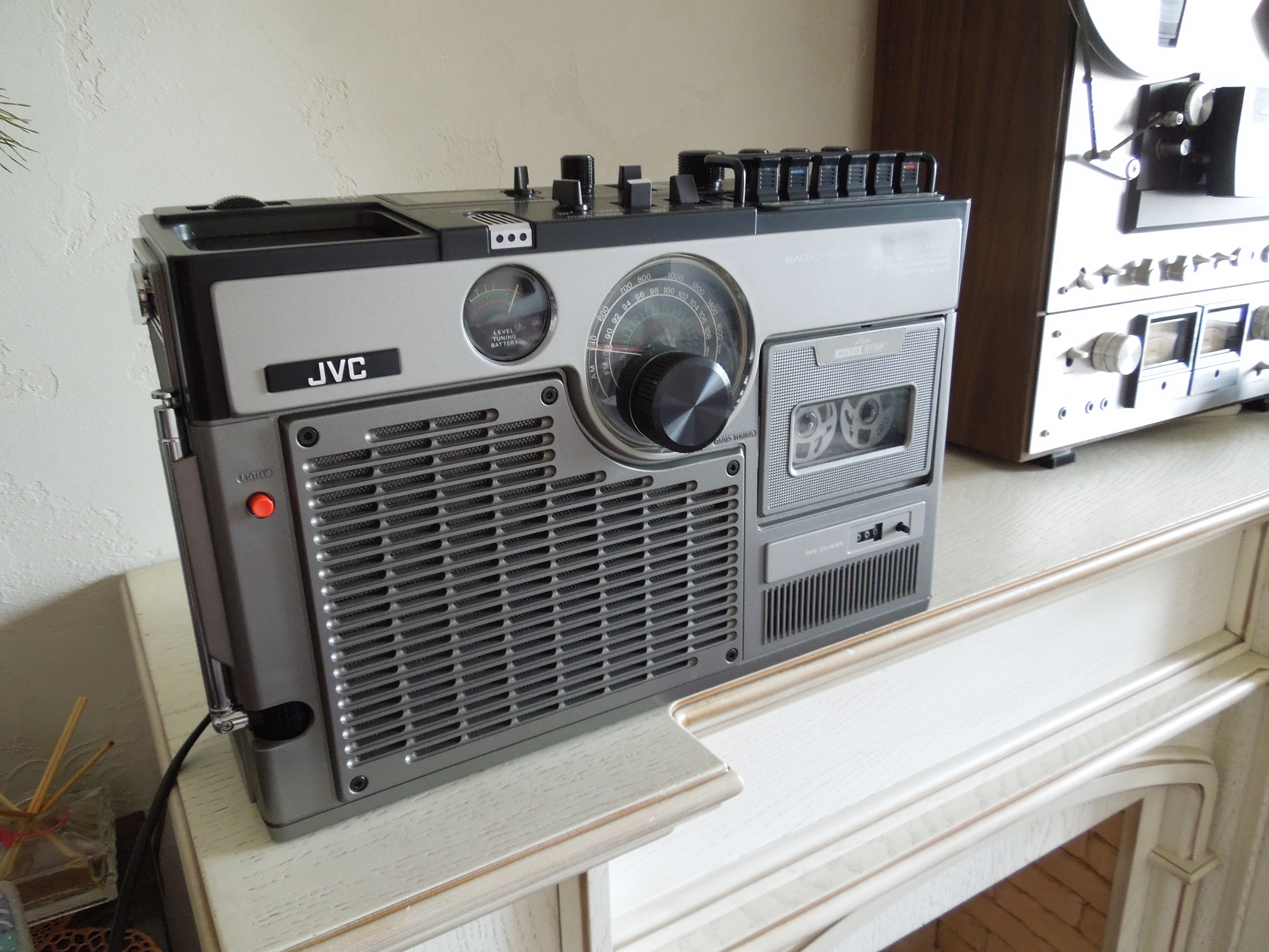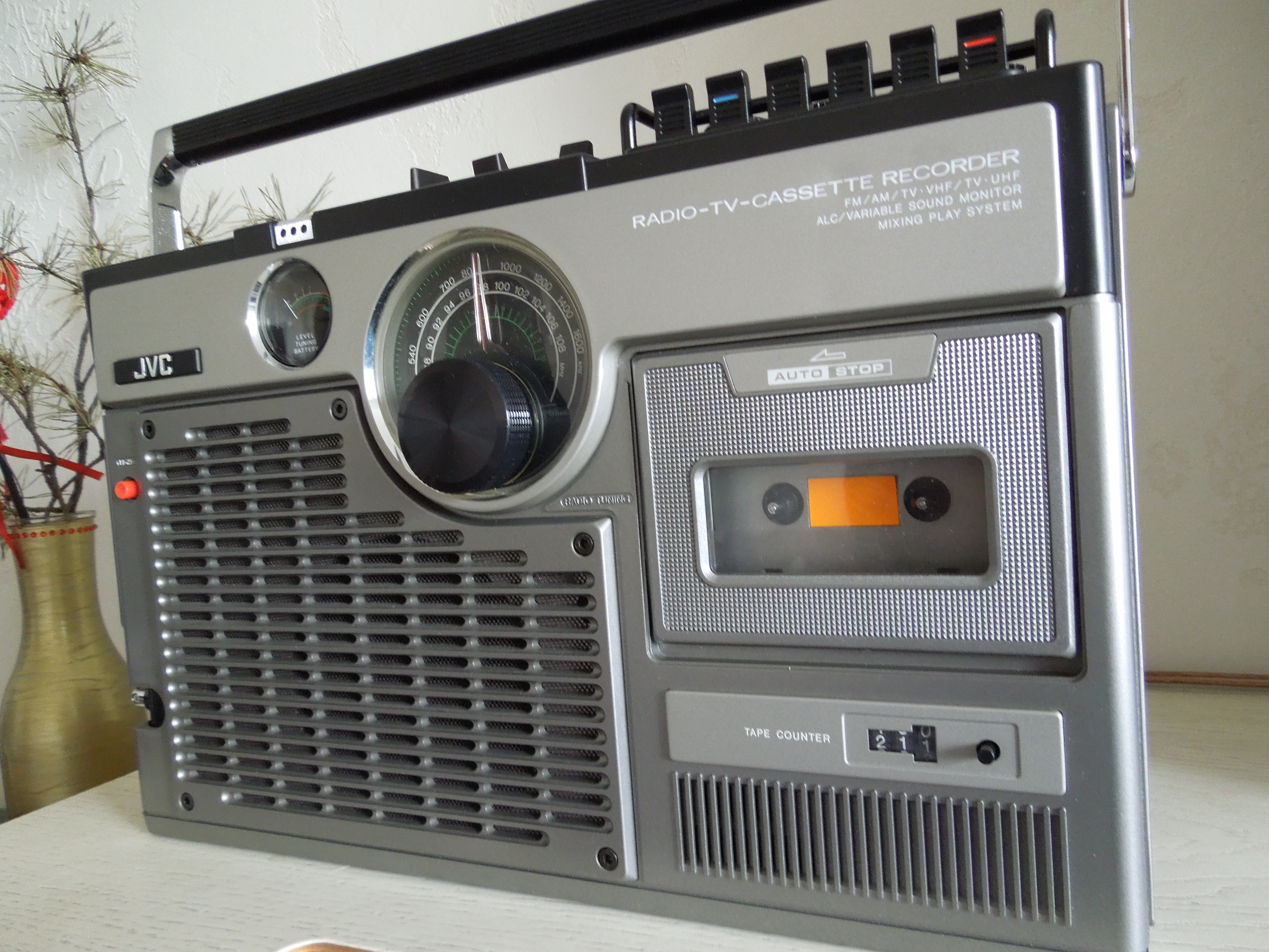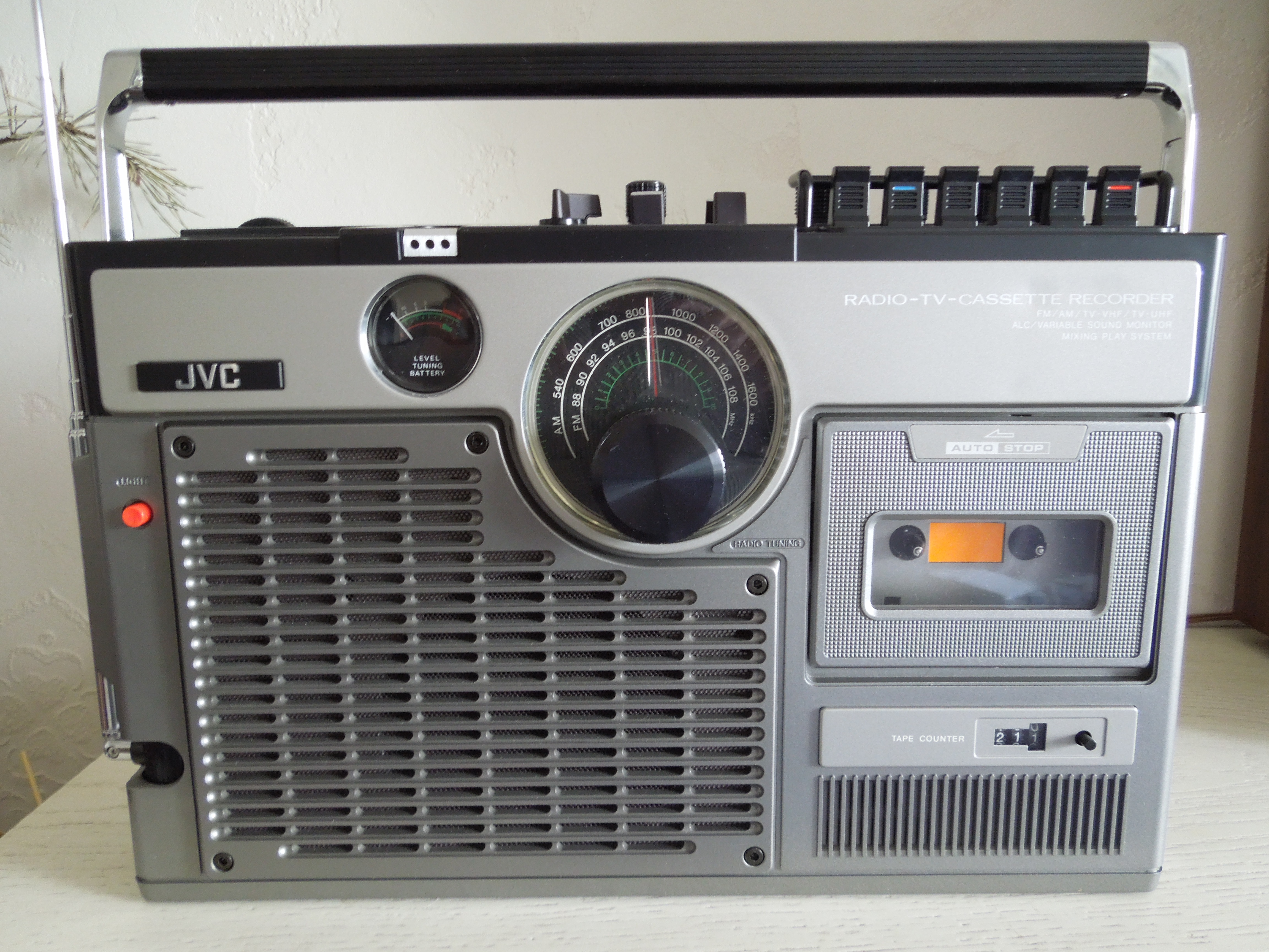 А потом инженеры JVC внимательно посмотрели за привычками и поведением своих целевых потребителей и решили, что они хотят не только слушать радио или кассеты и записывать с микрофонов, но и, например, выезжать с семьей на природу, особенно в период цветения сакуры, и наслаждаться там не только видом замечательных цветов, но и слушать там музыку с тех же радио и кассет, и, возможно, ( о боже! ) , смотреть телевизор, особенно если по нему транслируют бейсбол, который как известно, имеет дикую популярность в Стране Восходящего Солнца! И они немедленно предложили рынку свое решение - переносную ТВ-магнитолу три-в-одном!