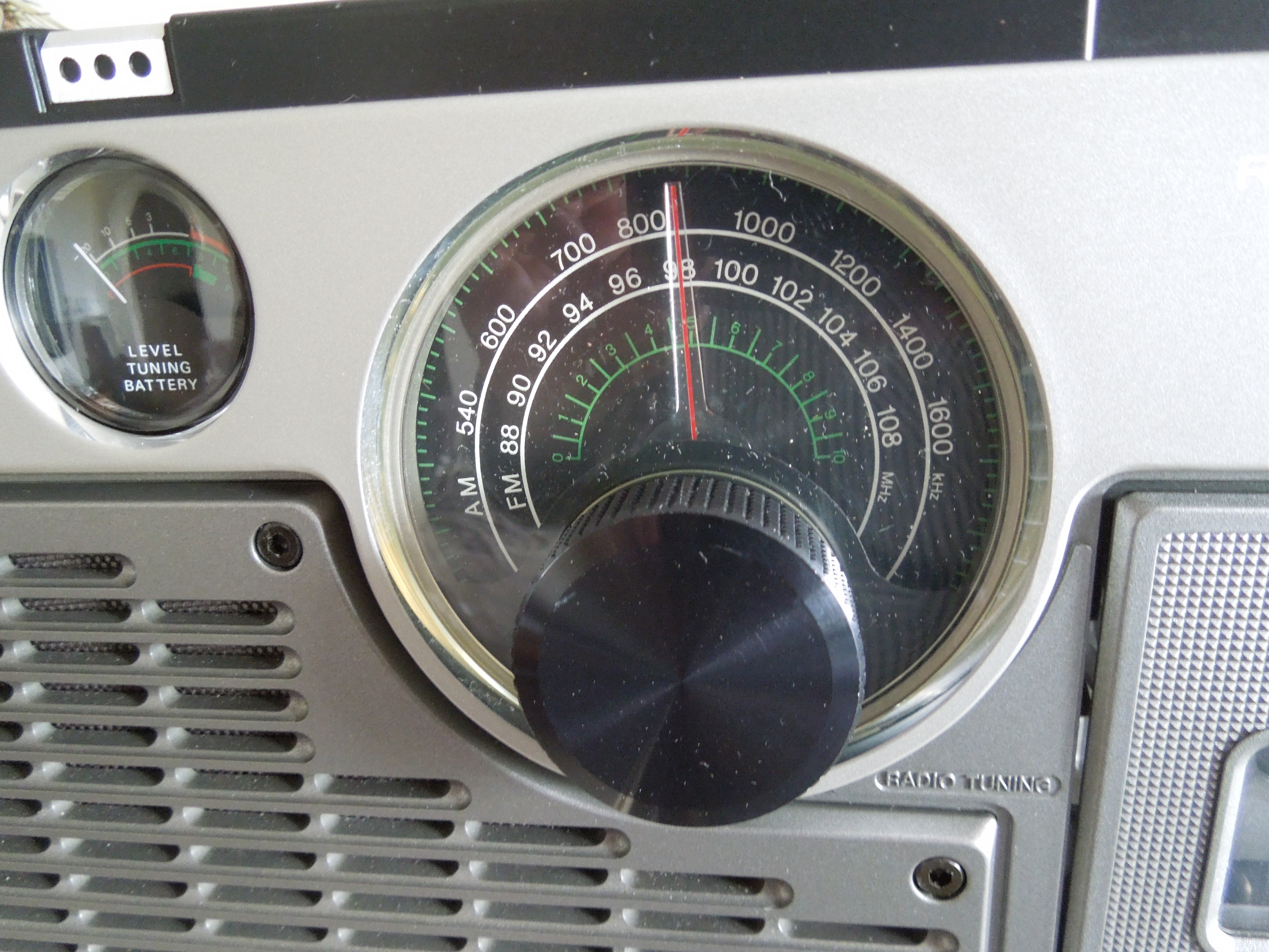 Приемник у магнитолы просто классный! Мне очень нравится его шкала - круглая с очень красивыми и информативными бело-зелеными надписями внутри. При вращении ручки настройки стрелка передвигается как радиус по окружности. Ожидаешь что будет вращяться сама шкала, но нет, она остается неподвижной и перемещается лишь стрелка, на манер часовой стрелки. Приемник двух-волновый, принимает FM и AM диапазоны, что вполне естественно для американского рынка.