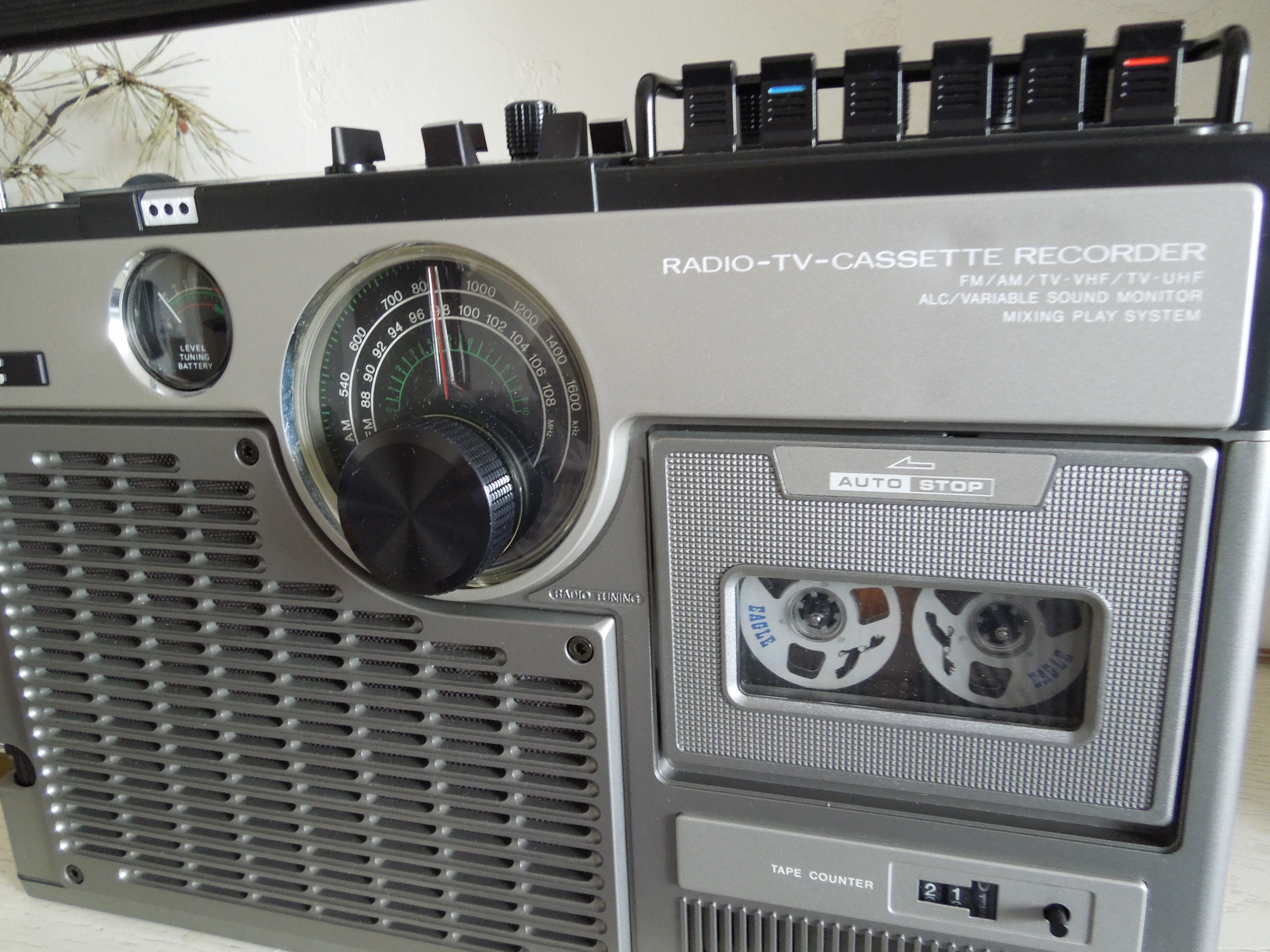 Я пытался что-нибудь поймать на телевизоре, мне удалось настроиться на несколько наших вещательных канала, но избавиться от “снега” не удалось и звука я не получил. Но это нормально, аппарат-то работает в системе NTSC, мне предлагали его перенастроить, но я не решился. пусть останется аутентичным!…)))