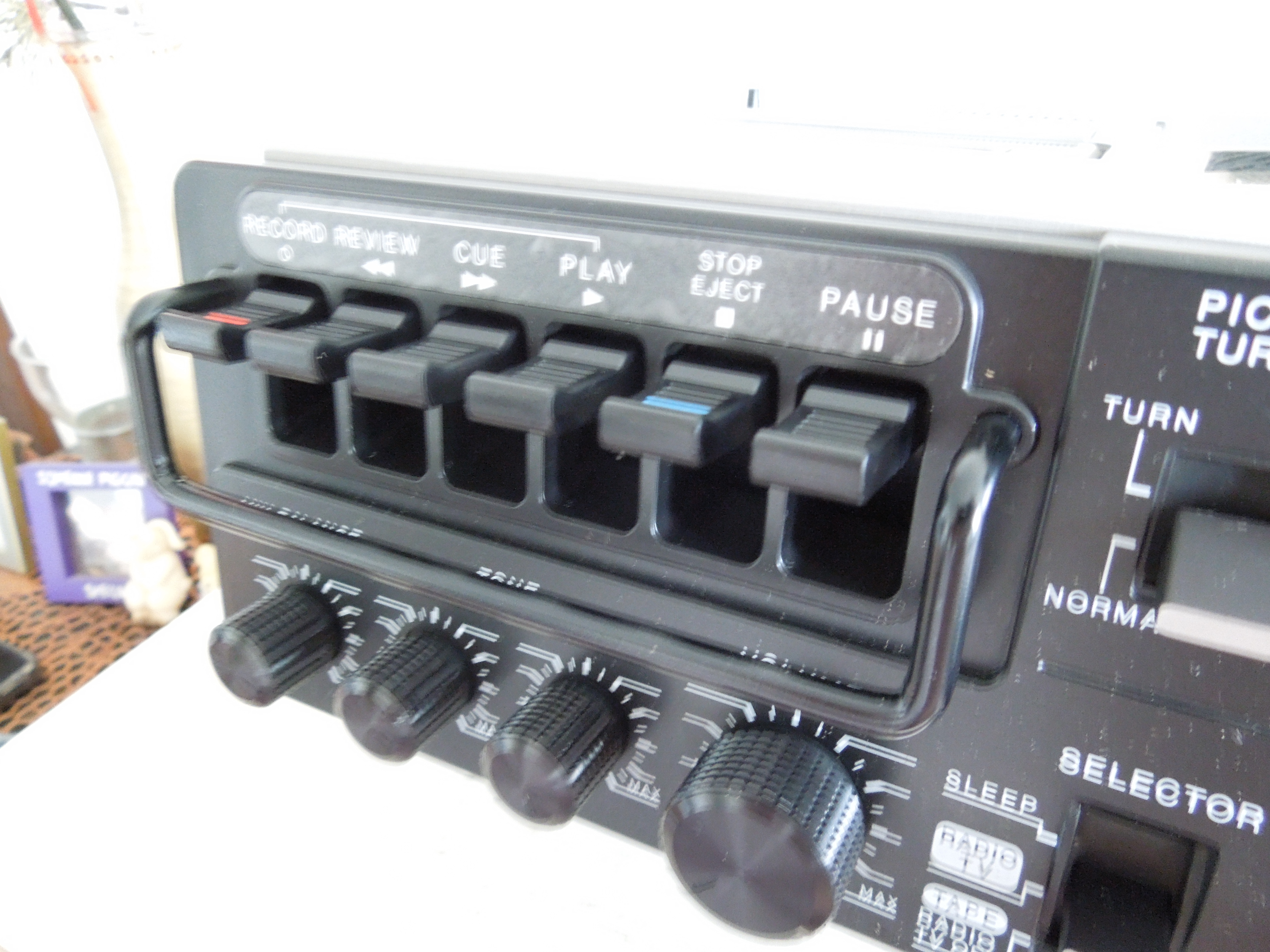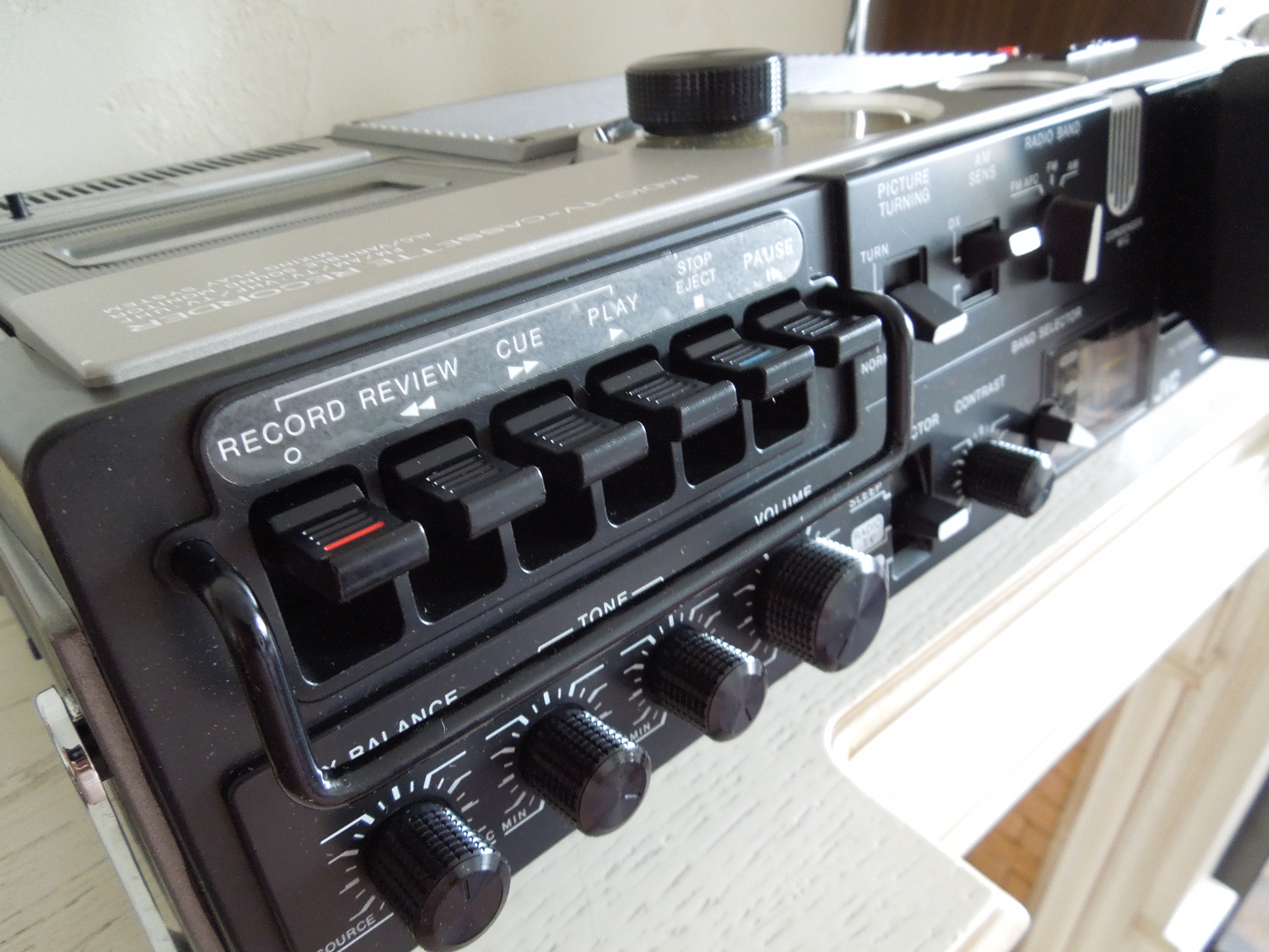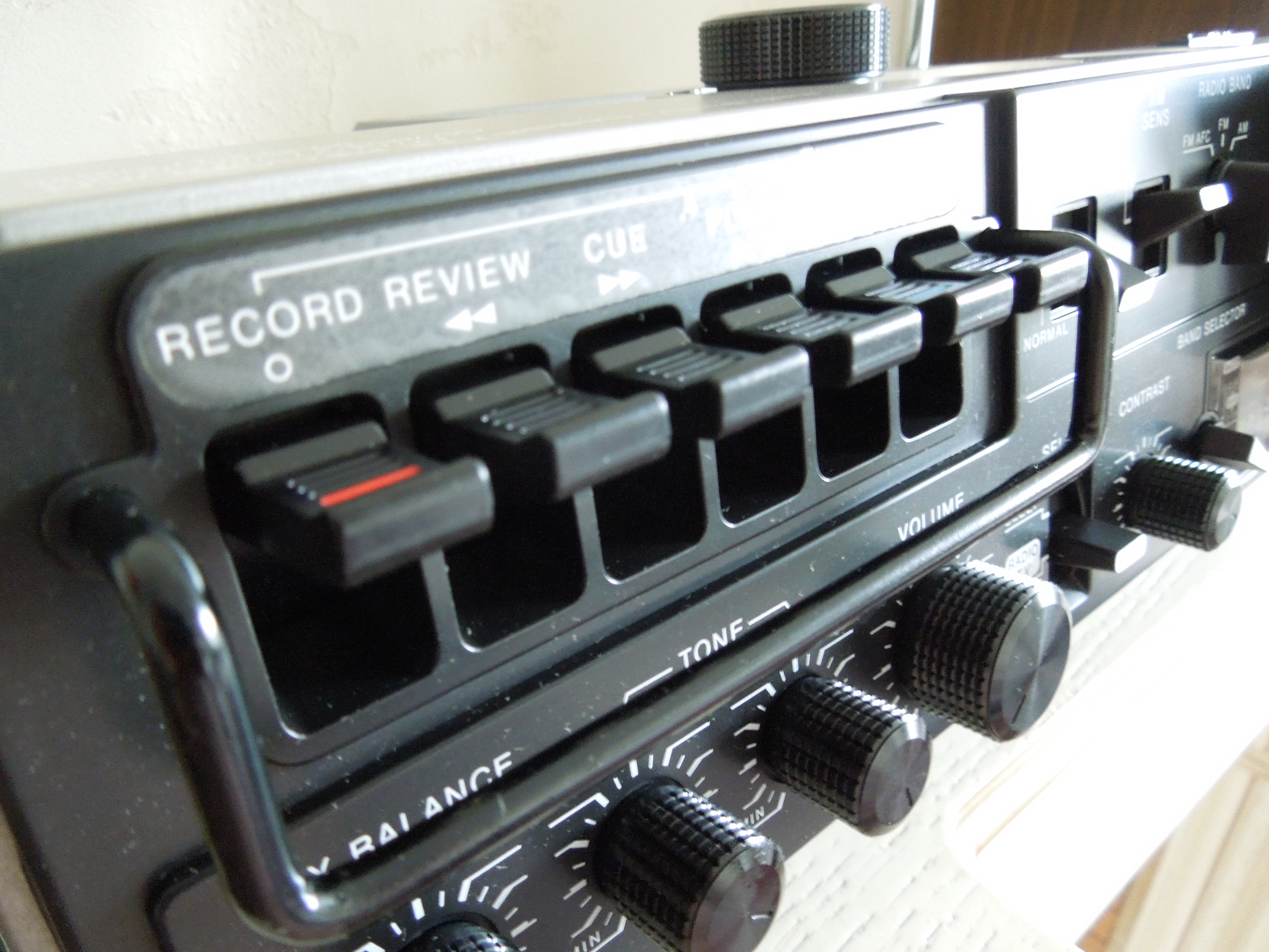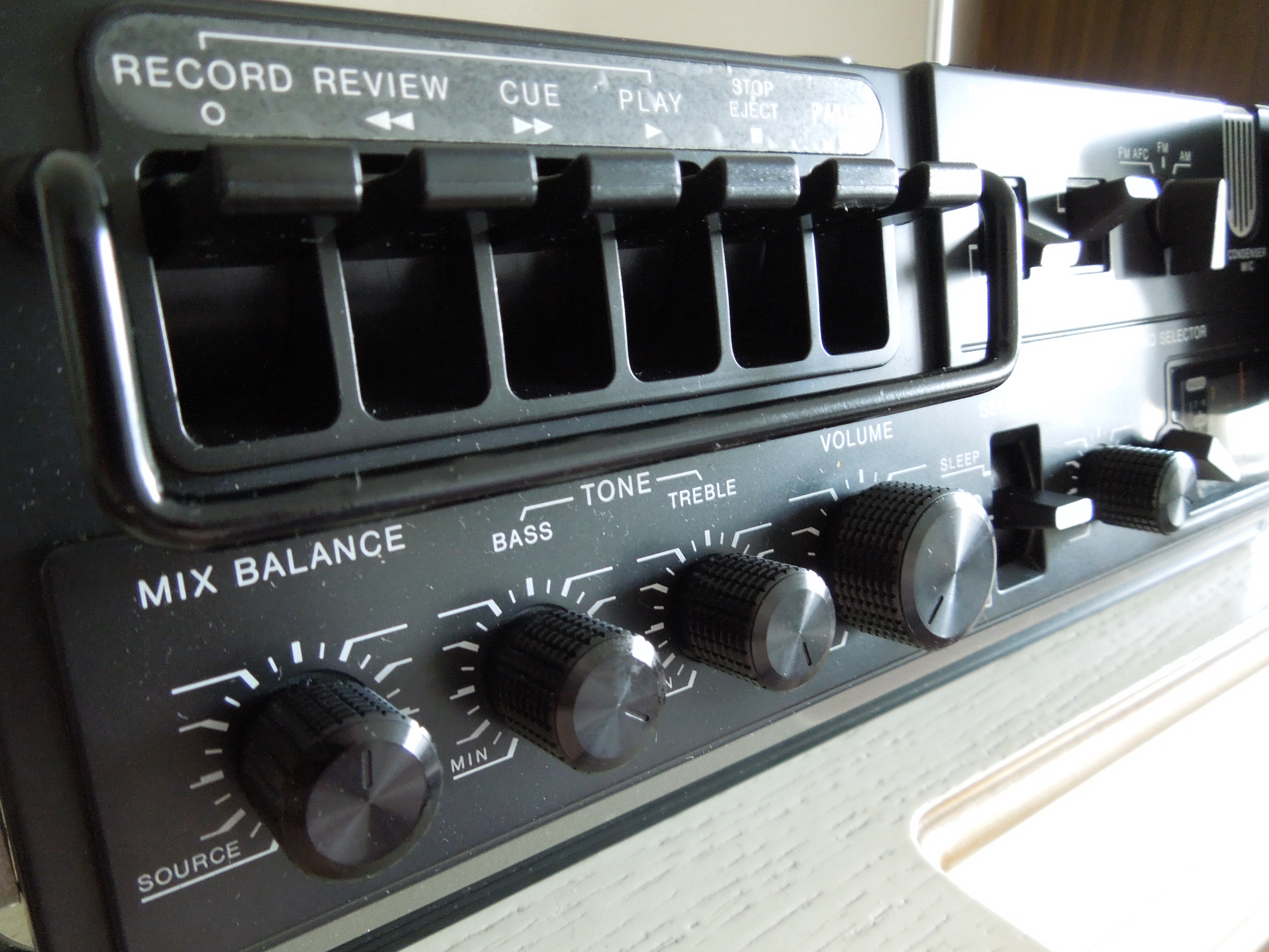 Кассетная дека очень приличная для моно-аппарата данного класса, и пишет хорошо, и воспроизводит. Мне опять же очень нравится как сделаны клавиши управления кассетной декой, очень основательные с ограничительной планкой, как на более серьезных аппаратах от JVC, например RC-838, о котором я писал ранее.