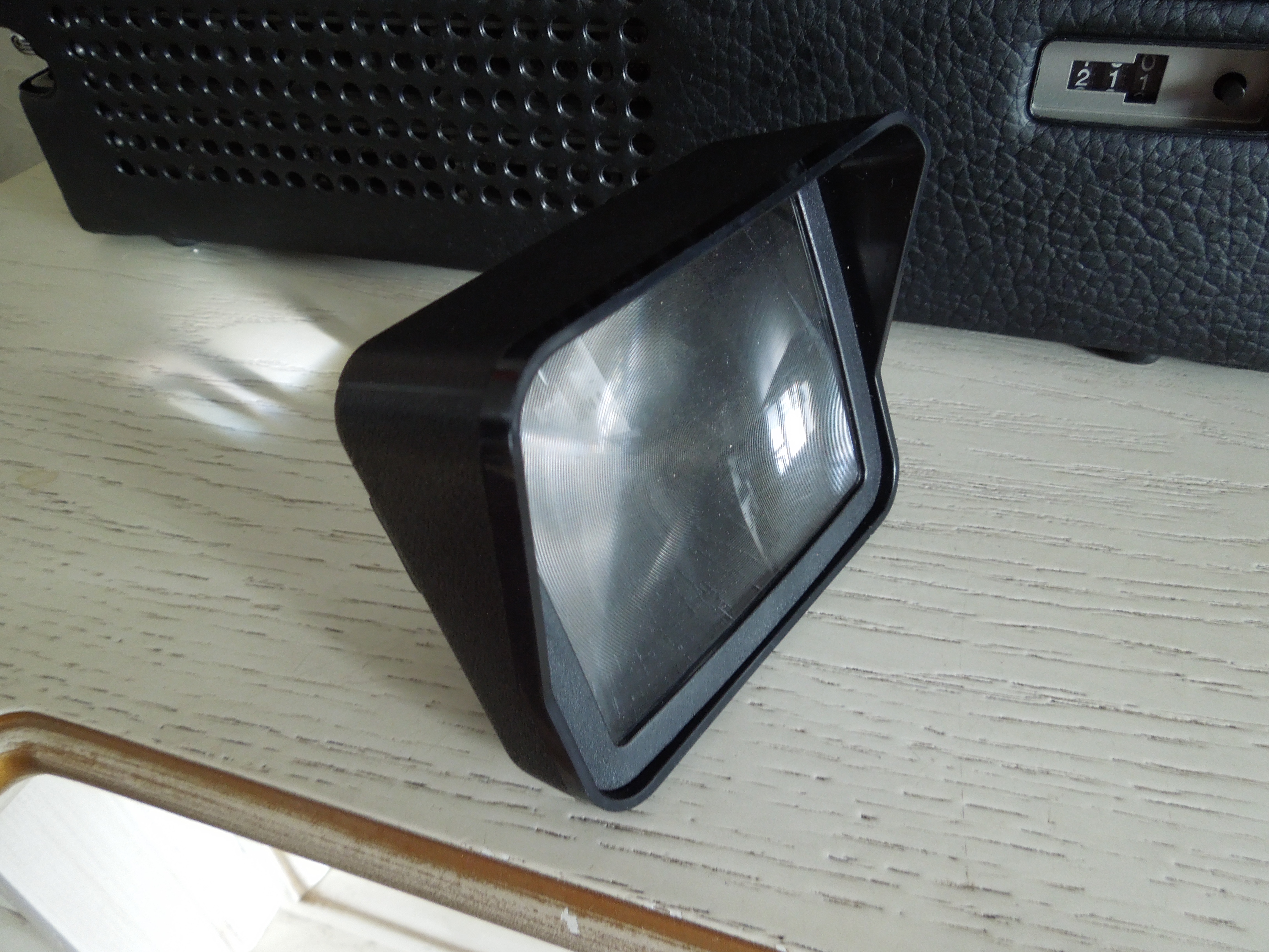 Как я уже упоминал, аппарат я купил реально очень дешево, на американском eBay я отдал за него баксов 20 без учета доставки, но и доставка была недорогой так как аппарат довольно компактный и весит не очень много. А самое главное - это то что комплектация была полная: сам аппарат, фирменный кейс для переноски из кожзама, документы, две подзаряжаемые батареи, наушник, анти-солнечный противобликовый козырек для телека и увеличительная линза, опять же для экрана телевизора! И все это абсолютно новое, не использованное, со специфическим запахом новой техники,…. ну в общем вы меня понимаете…:))))