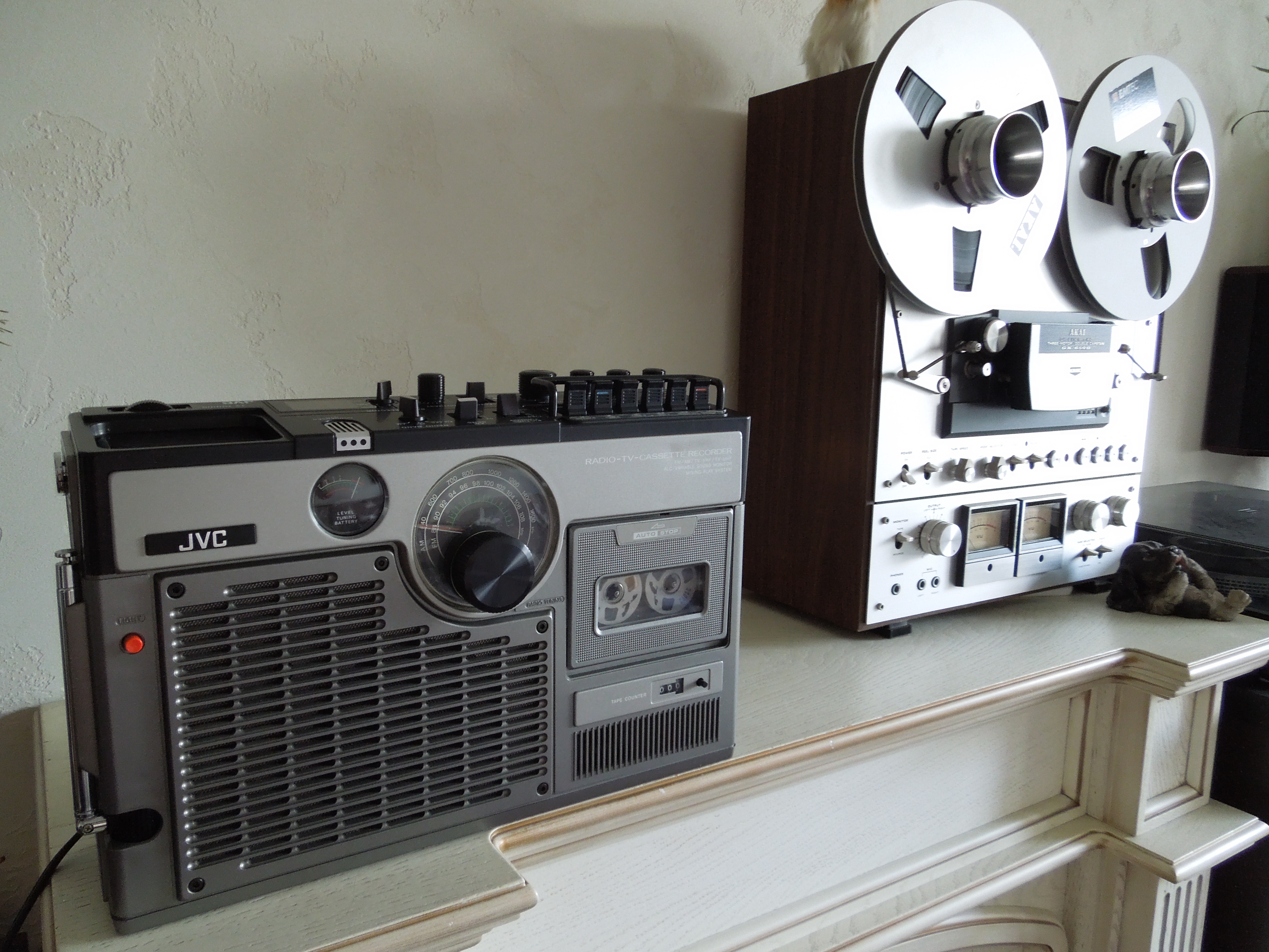 На вопрос почему аппараты данного типа не являются предметом моей коллекции я для себя отвечаю просто. И банально. Все таже старая проблема нехватки пространства для дисплеирования. А с этими аппаратами есть одна неприятная проблема - большинство из этих магнитол расчитывались производителями для дисплеирования “лежа”, динамиком и кассетной декой вверх, при этом “верхний” торец становился как бы “лицевой” стороной, все органы управления и надписи были сориентированы таким образом, чтобы ими было удобно пользоваться и читать именно в таком положении. И таких аппаратов было очень много и у Sony, и у Matsushita, и у Sanyo, и у Toshiba, и, конечно, у JVC. А подобное положение аппаратов для дисплеирования требует совершенно другой конфигурации полки, особенно по-глубине. В условиях же дифицита пространства подобные эксперименты неприемлемы - места эти магнитолы занимают много, а их обзор не идеален. Идеальный обзор подобных аппаратов - это открытая полка, с возможностью выставить аппарат таким образом чтобы были видны как минимум лицевые стороны и верхние торцы магнитол, что давало бы более-менее полное представление о красоте и особенностях данного вида магнитол. Однако, ради справедливости, следует заметить, что в природе существую магнитолы три-в-одном с классической конфигурацией, когда экран телевизора находится на лицевой панели, над крышкой кассетоприемника. Это как минимум две модели у Sharp, есть такой аппарат и у Sony - модель The Jackal, и у Sanyo. Но в отрыве от основной массы подобных агрегатов от других производителей, с моей точки зрения, коллекционировать их не имеет смысла.