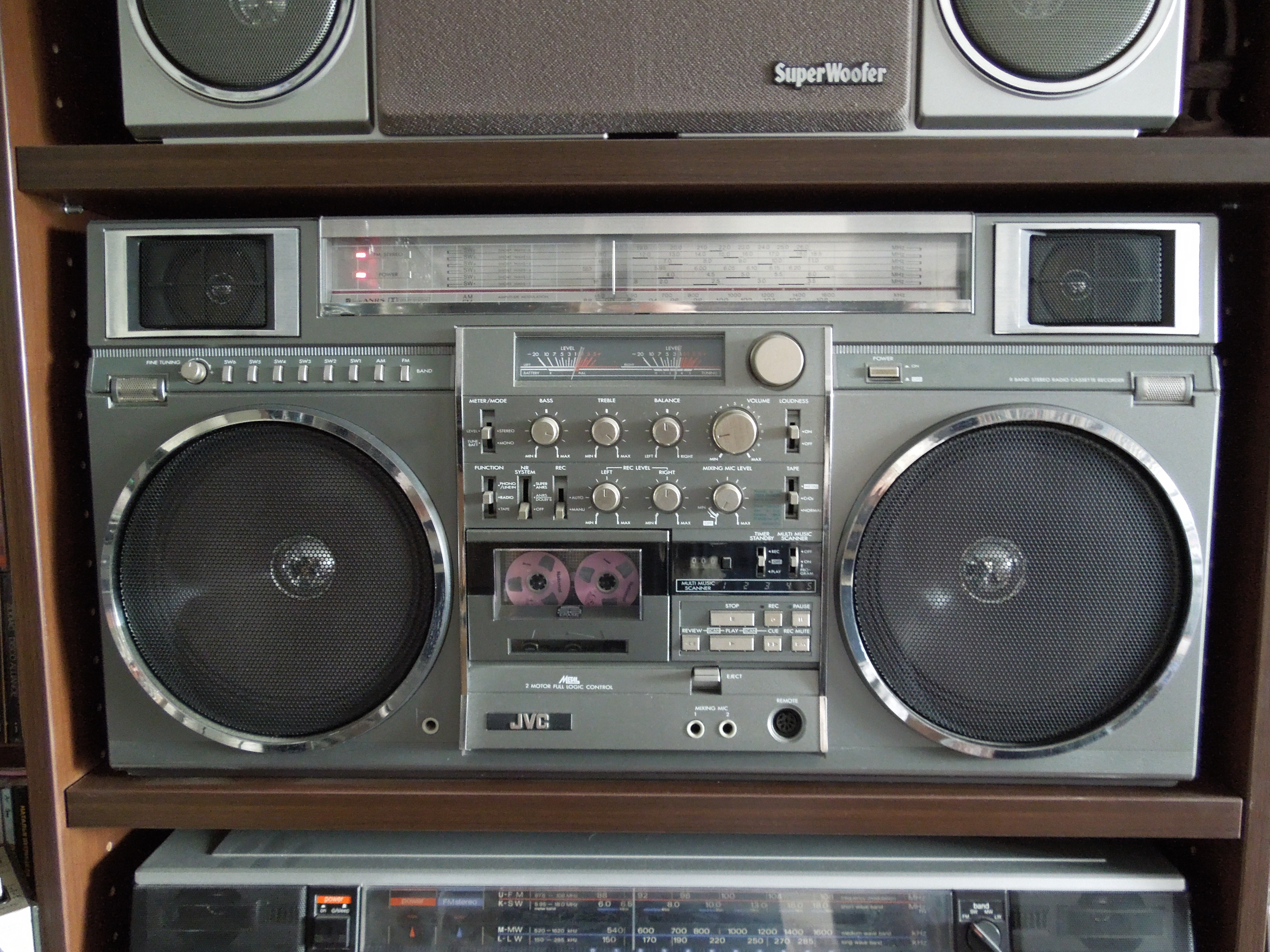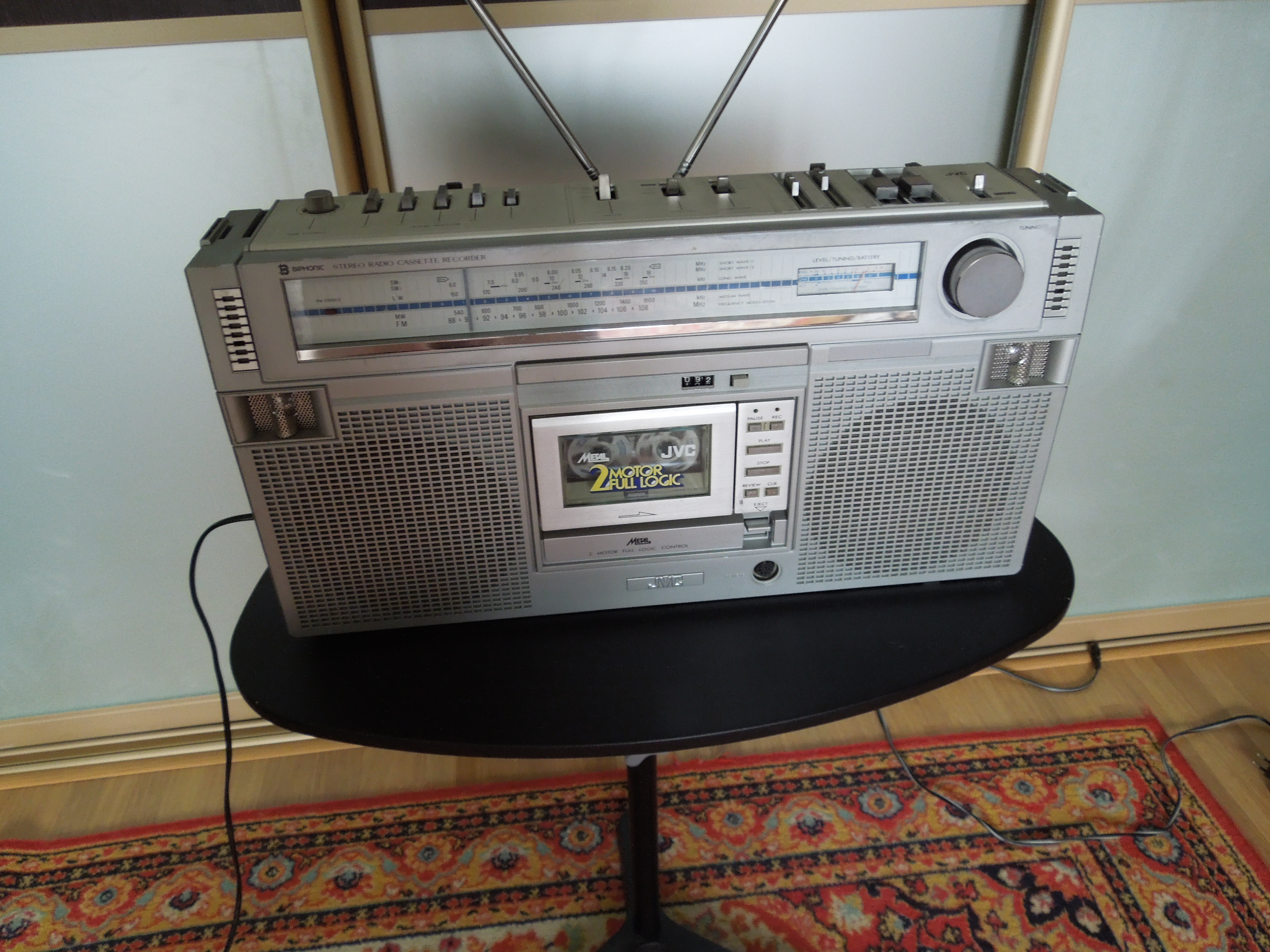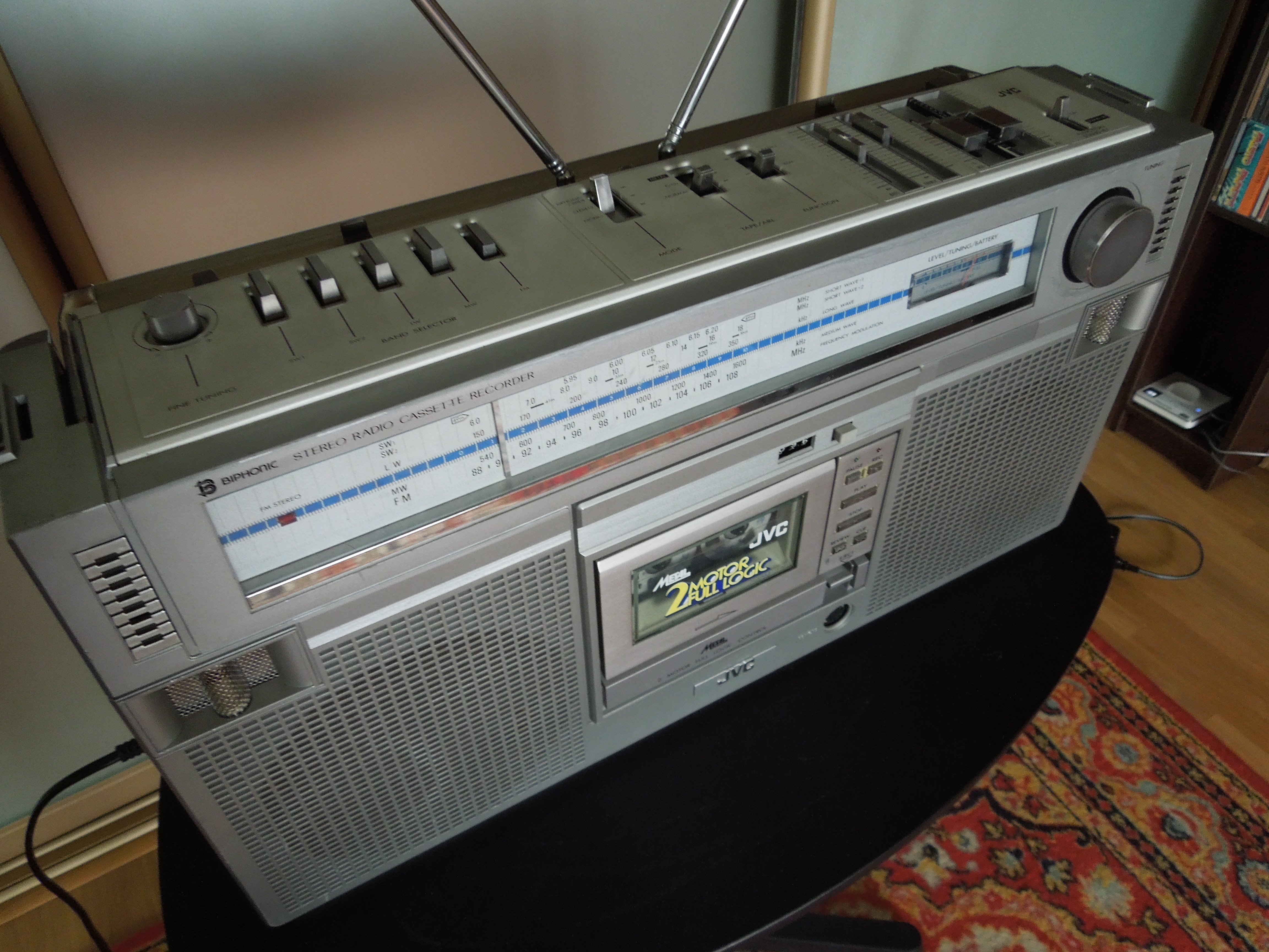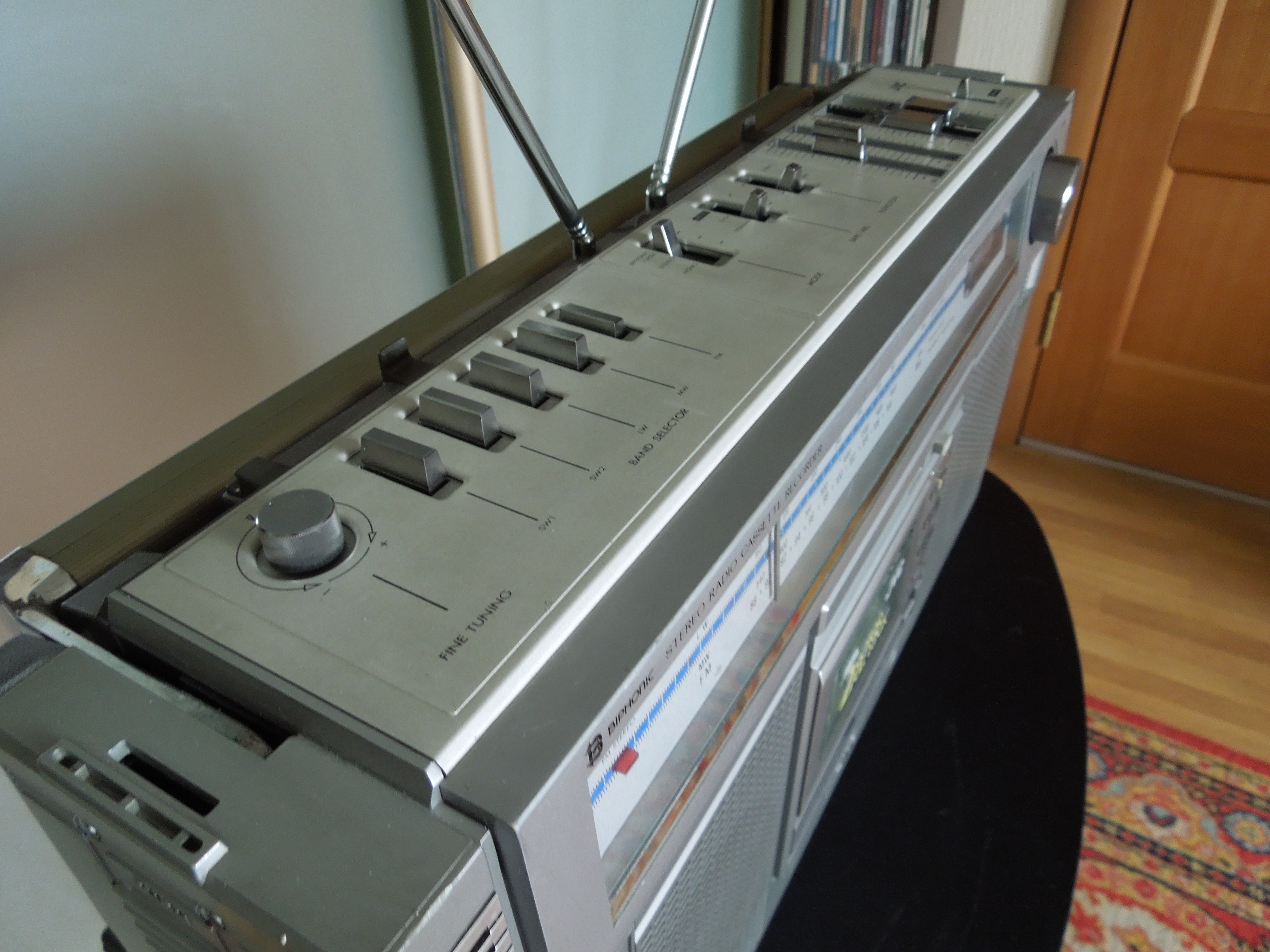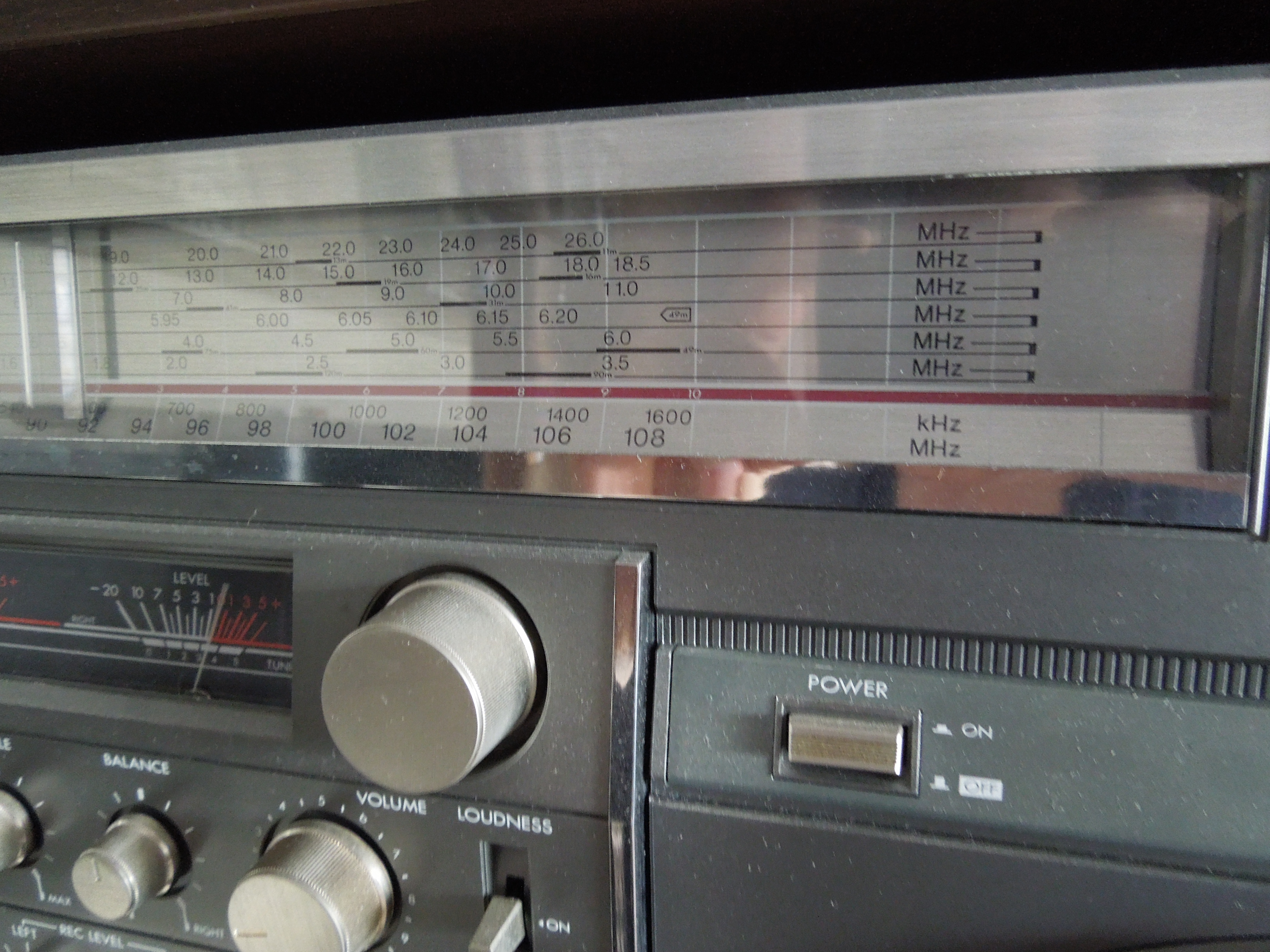 Приемник у аппарата референсный для данной категории, восьми-волновый ( FM, AM, SW1-SW6 ). Разумеется для стабильно приема на Коротких Волнах требуется доплнительная антенна, но даже если использовать обычную проволоку, то результат уже будет просто отличный. Cчастливцы, которые могли позволить себе такой агрегат в начале восьмидесятых, могли запросто слушать вражеские голоса и Севу Новгородцева из Лондона по пятницам. То есть фактически приобщаться к мировой музыке в режиме реального времени! А у Севы такие интересные передачи были!…:)))