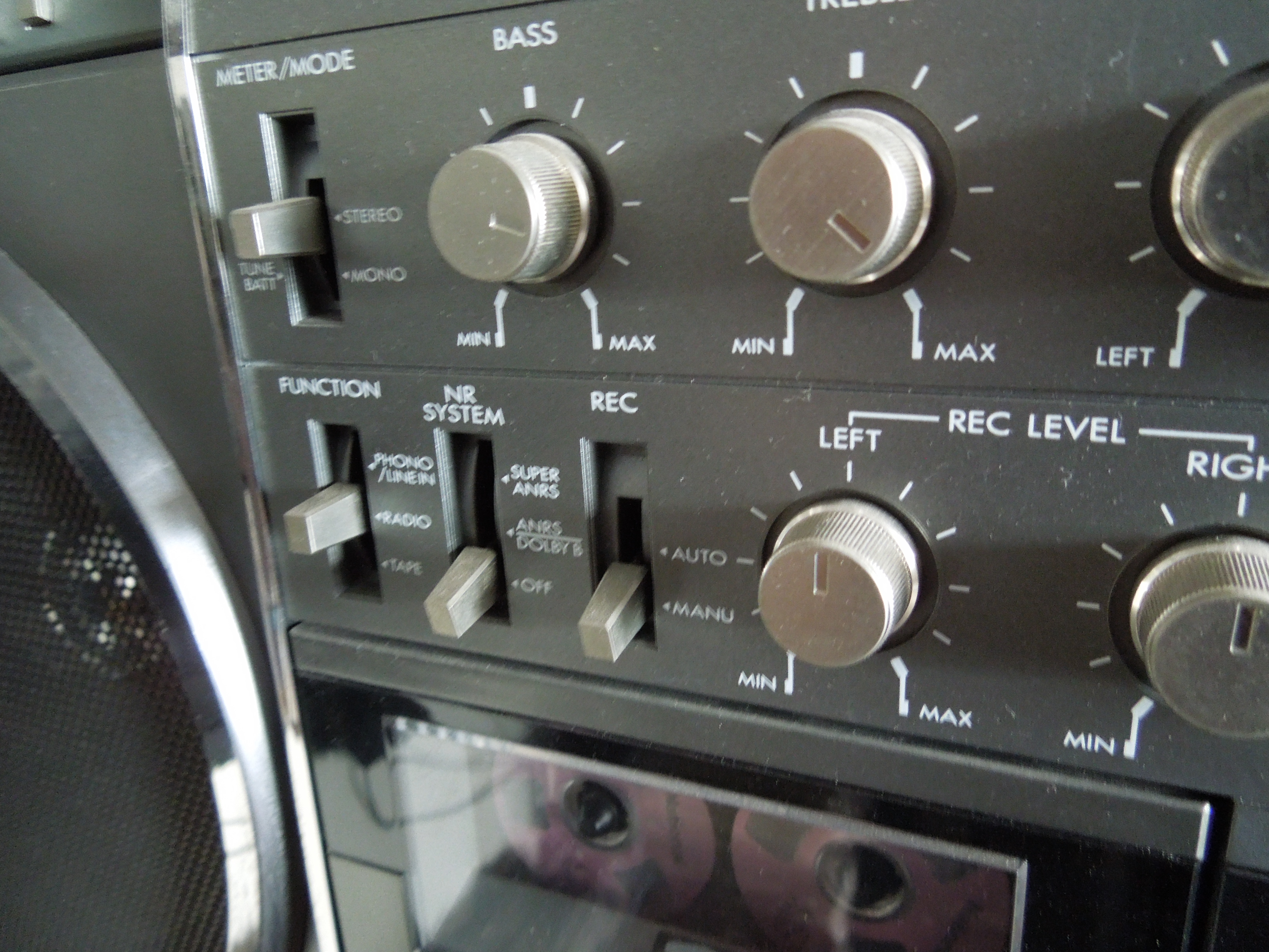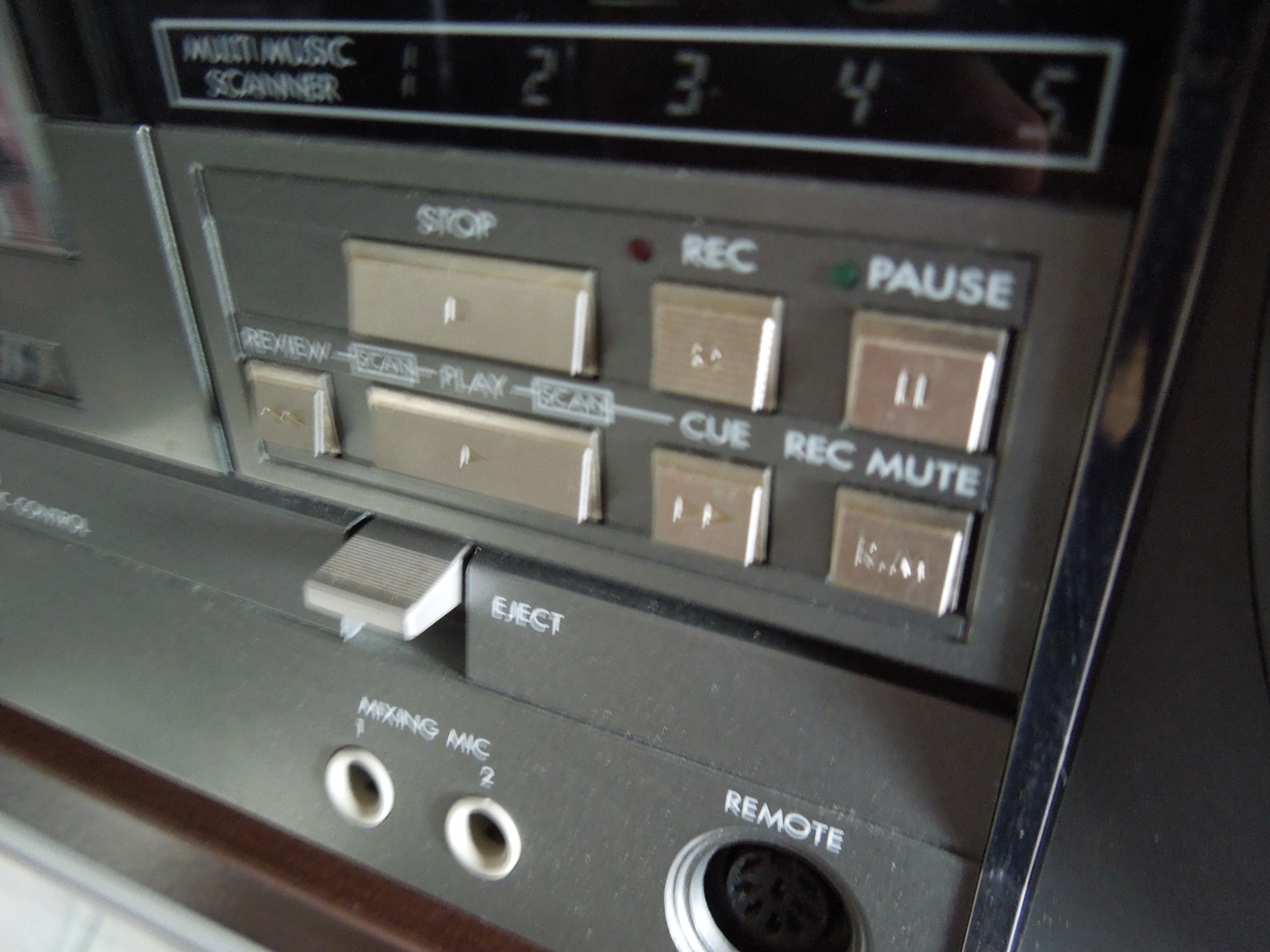 Кассетная дека была просто феноменальной: лентопротяжка с двумя моторами и на микропроцессорном управлении, имела головки METAPERM и стирающую SEN-ALLOY, позволявшие делать высококачественные записи “Один-в-Один”, аппарат работал со всеми типами лент, включая METAL. Кстати, знаете ли вы, что буква “М” в нумерации этой линейки как раз и означает совместимость с лентой типа METAL? Дека была оборудована фирменной системой шумоподавления ANRS/DOLBY и SUPER ANRS. Также на борту была функция автопоиска на 5 треков в обе стороны и электронное Софт-Тач управление. Разумеется дека имела широчайший диапазон на записи: 30 - 17 kHz на ленте METAL и 30 -16kHz на ХРОМЕ. Как на стационарных деках! Красивой вишенкой на торте был пульт дистанционного управления на шнуре, который подсоединялся на лицевой панели и давал возможность управлять кассетной декой. Для 1981 года - просто космос!