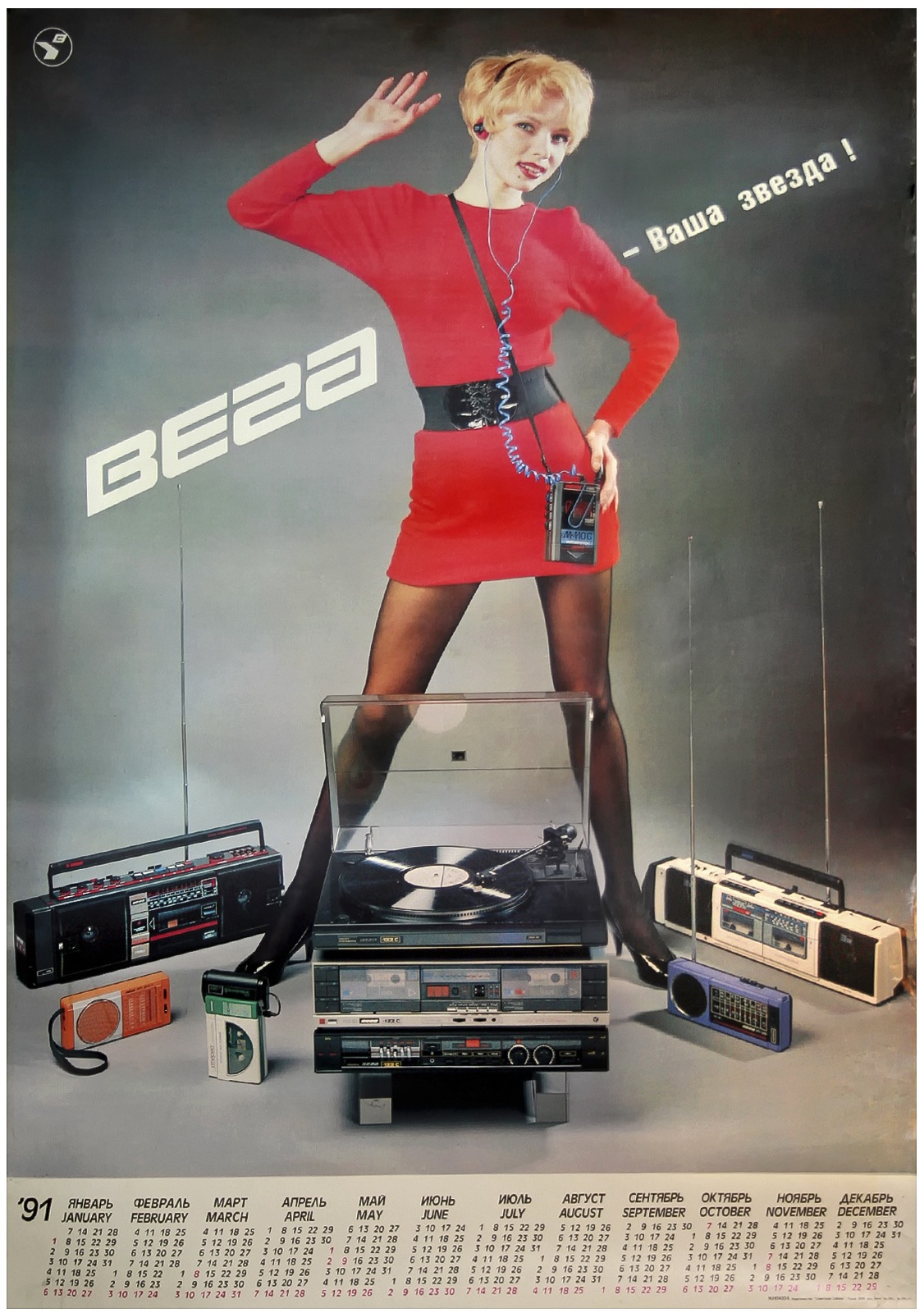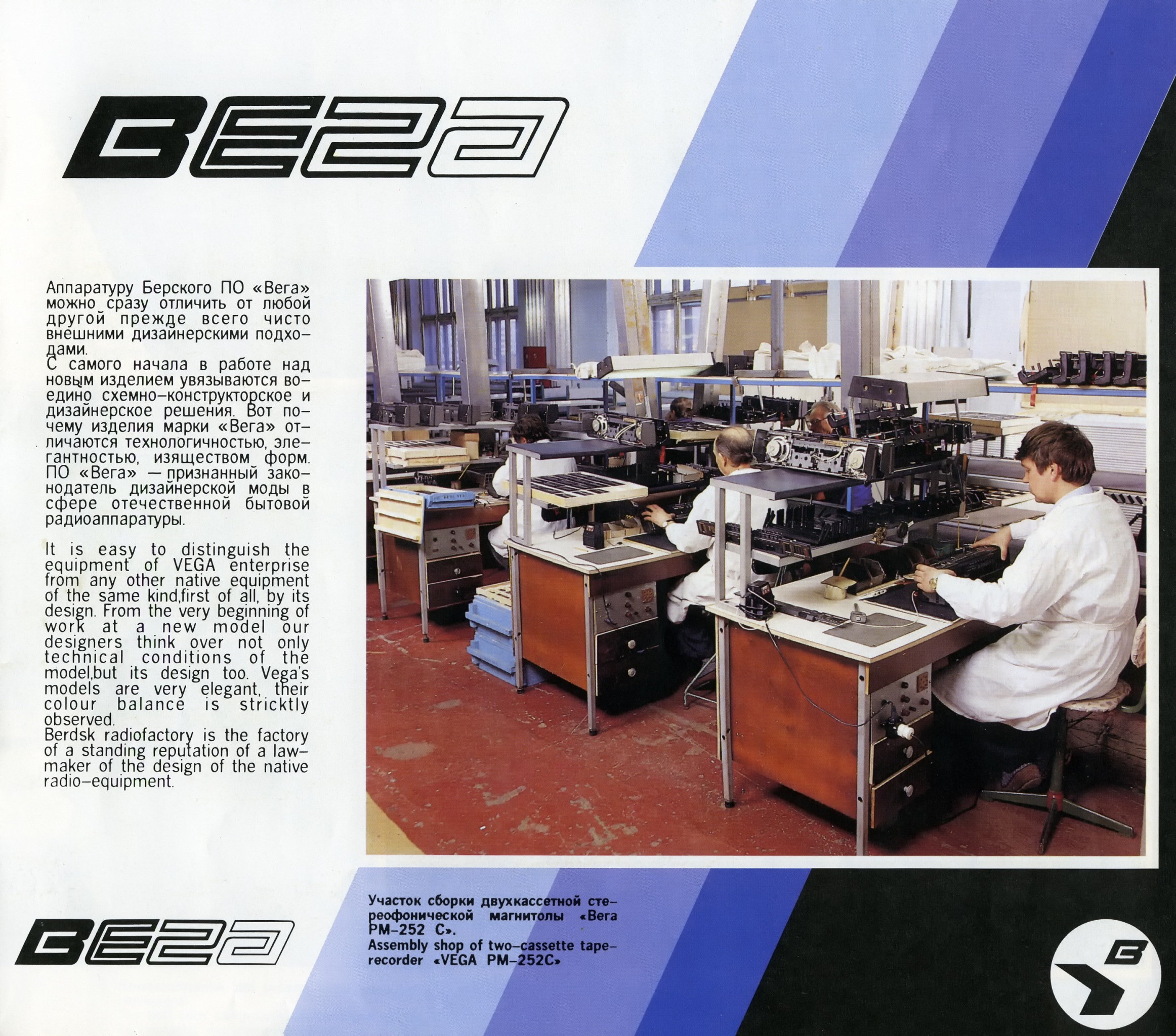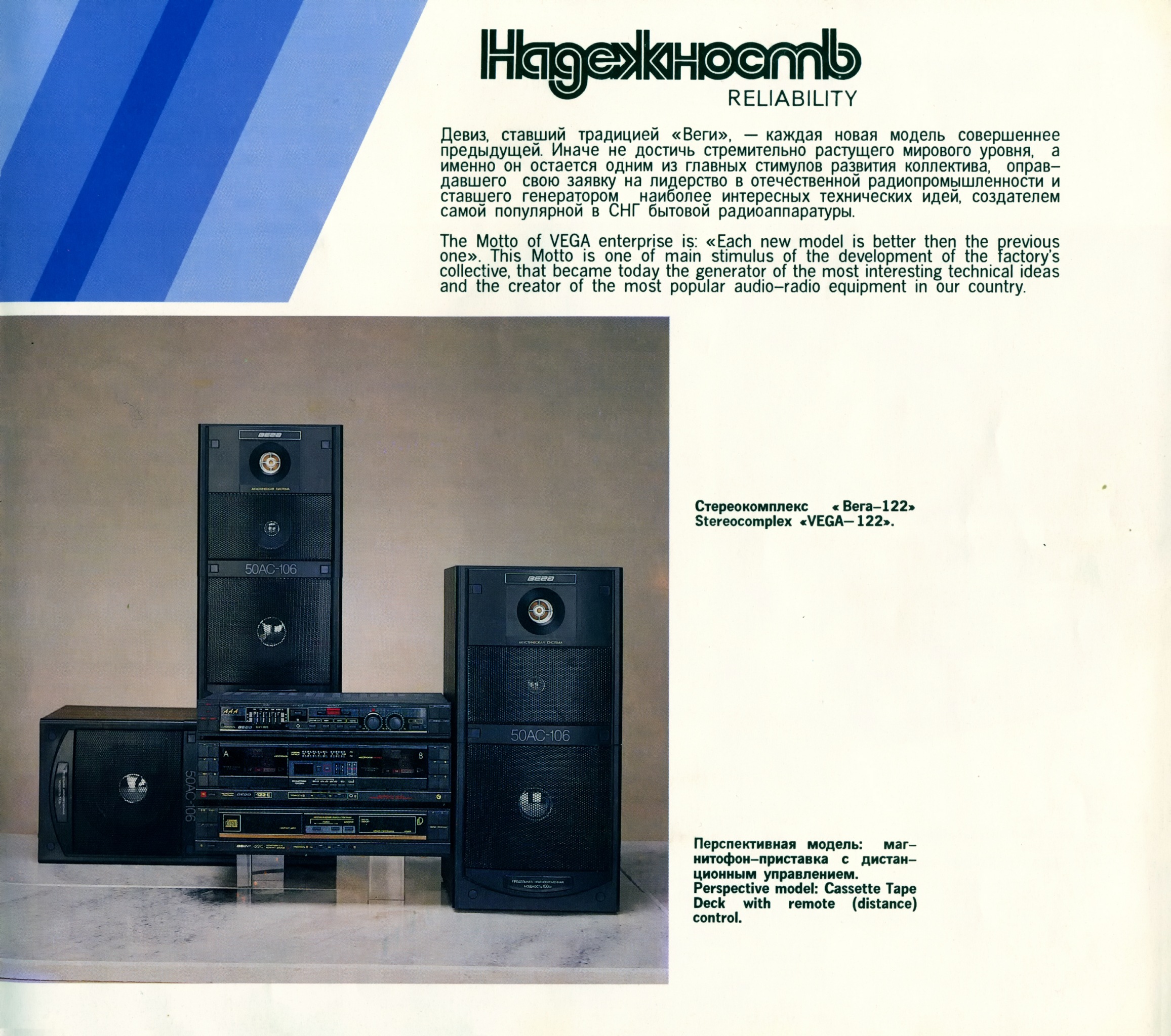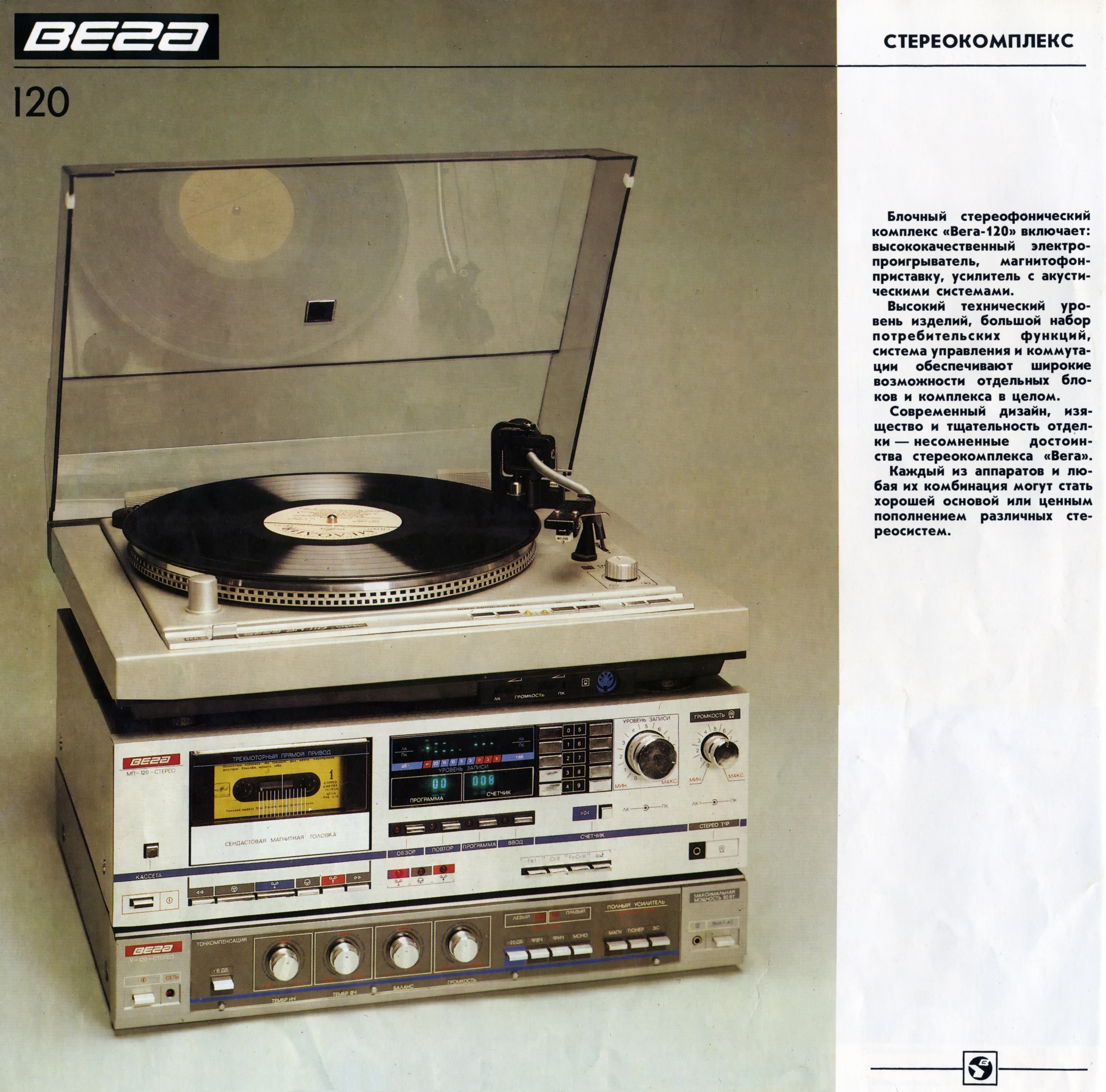 Особенно умиляет гордая надпись на магнитоле Вега - 328: "СССР 60 лет." Кнопки поверху из металла, хромированные элементы дизайна, подсветка при работе от сети, 8-ми! коленчатая антенна длиной более метра, раздельный темброблок по ВЧ и НЧ, вход и выход, ручной и автоматический уровень записи, отменное звучание и расширение стереобазы. И даже фирменная наклейка!