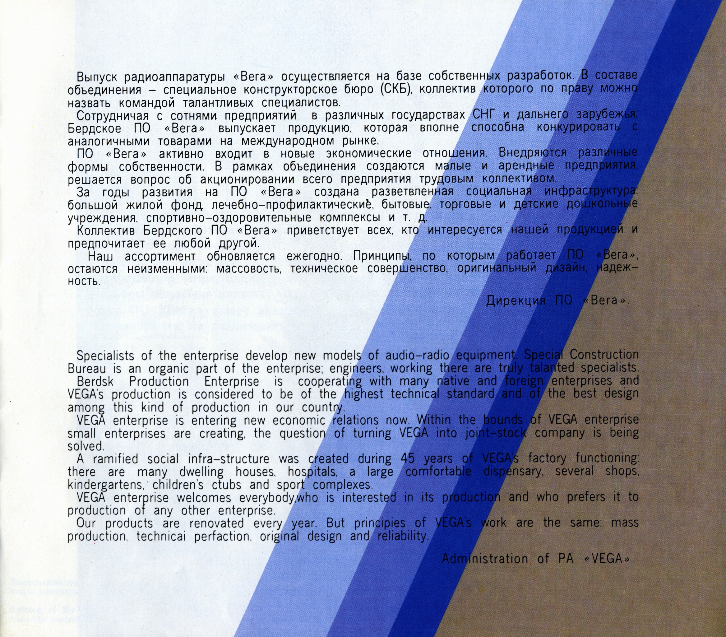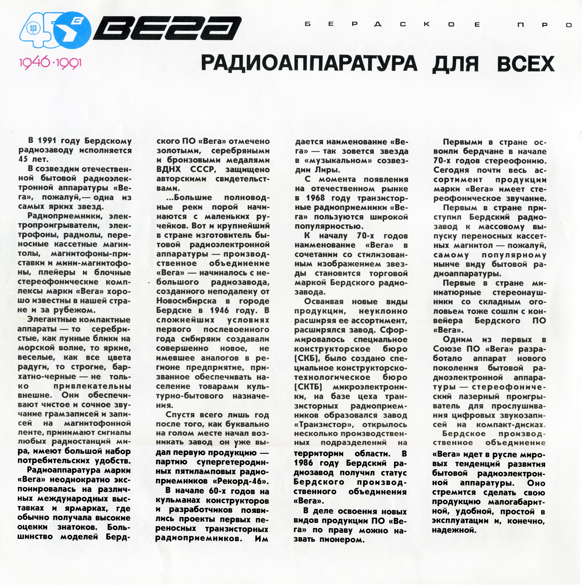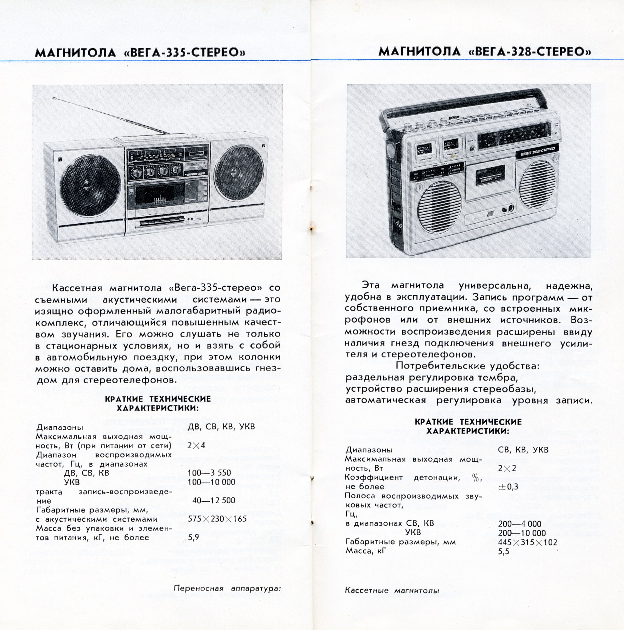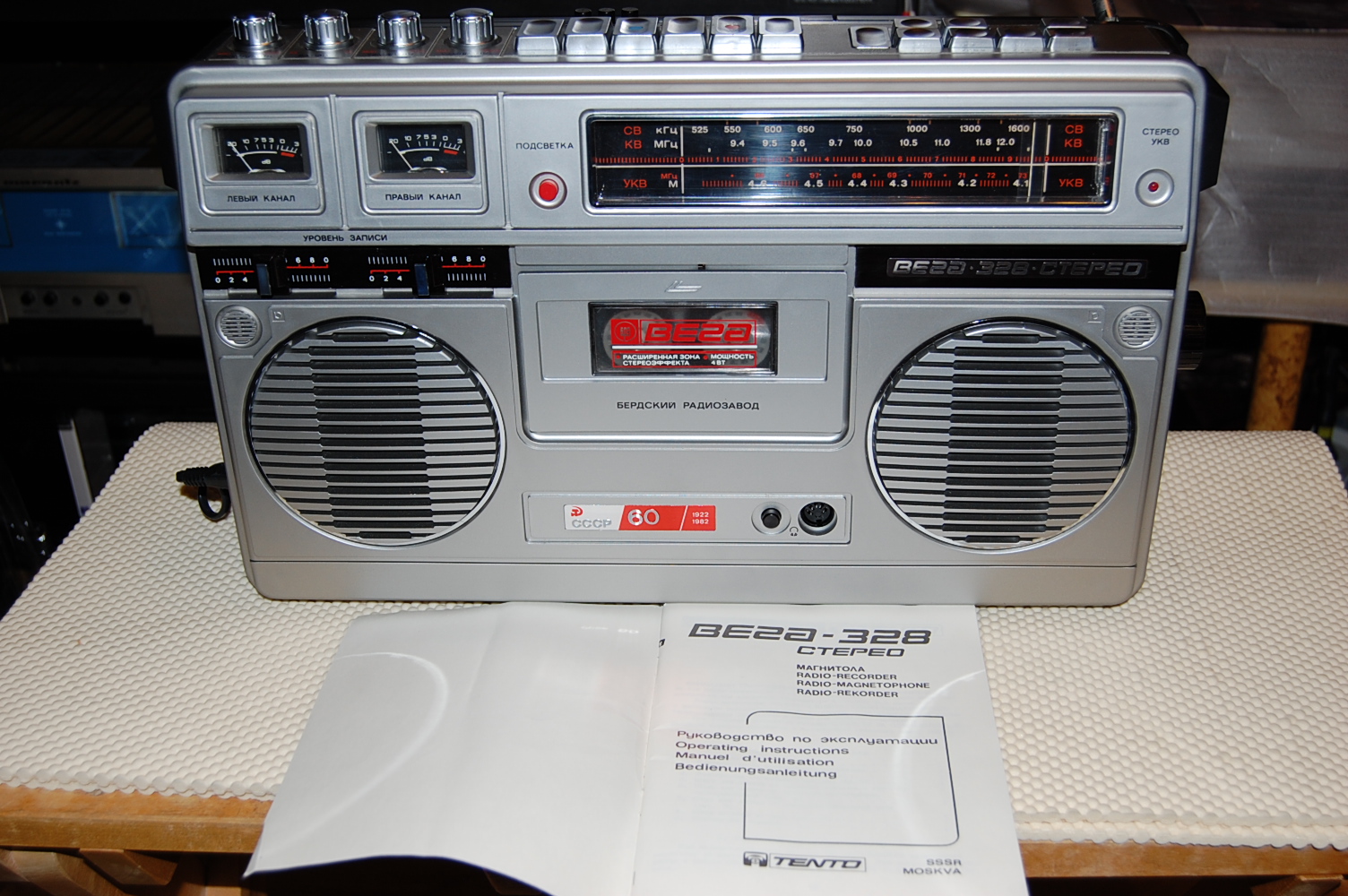 На удивление приятное и полновесное звучание у этой, одной из первых СТЕРЕОмагнитол в СССР, Веги - 328. А для внешнего рынка - "Tento - 328". Цена 1982 года ровно 500 рублей 00 копеек! Инструкция на четырёх языках, отпечатанная на великолепной вкусно пахнущей бумаге из сибирского леса. О, этот аппарат сделан на совесть! И несмотря на год - 1982, он работает, даже после извлечения из коробки спустя более 30 лет! Радио ловится отлично, и у магнитофона также работает воспроизведение (подмотка - в норме! = 35 г), и уже еле-еле - перемотка. Но резина не сгнила, что говорит о её высоком качестве! А в "Электрониках" и даже в "Берестье - 004" пассики да ролики уже давным-давно "поплыли" в пластилиновый рай. Недаром сибирский завод БРЗ был знаменит своим хорошим качеством продукции на весь огромный Союз и за его пределами с 1946 года. Увы, такую промышленность разорили и загубили гайдаровскими "реформами".