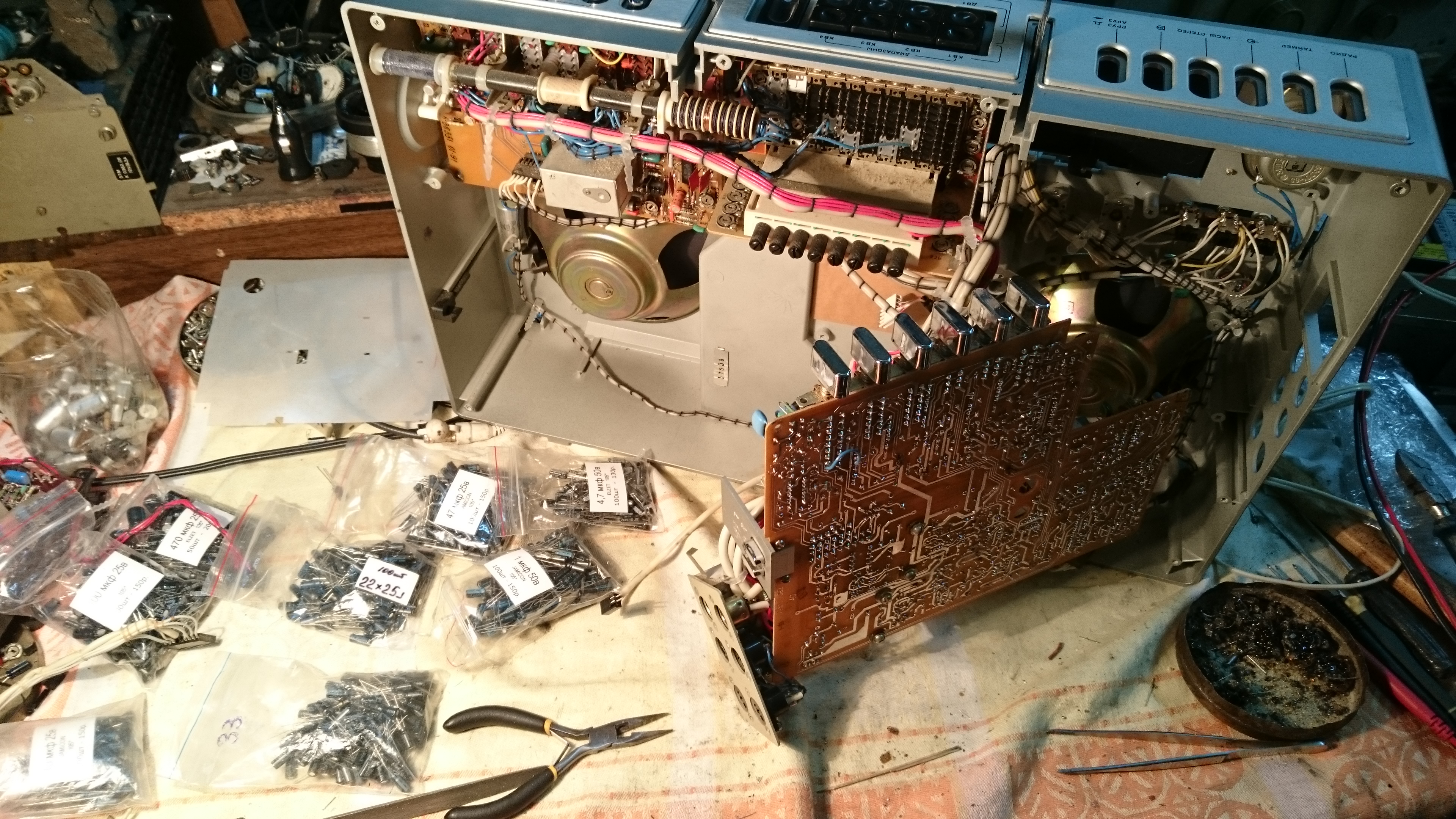 А пока – замена всех конденсаторов, чистка, пропайка, отмывание маховика от вековой тины некачественного каучука, приварившегося к нему насмерть. Подбор пассика, ролика, и далее, по длинному списку. Предварительное прослушивание после запуска работоспособности подтвердило слова древнего старца. Но с обычной оговоркой, присущей сказкам стариков…