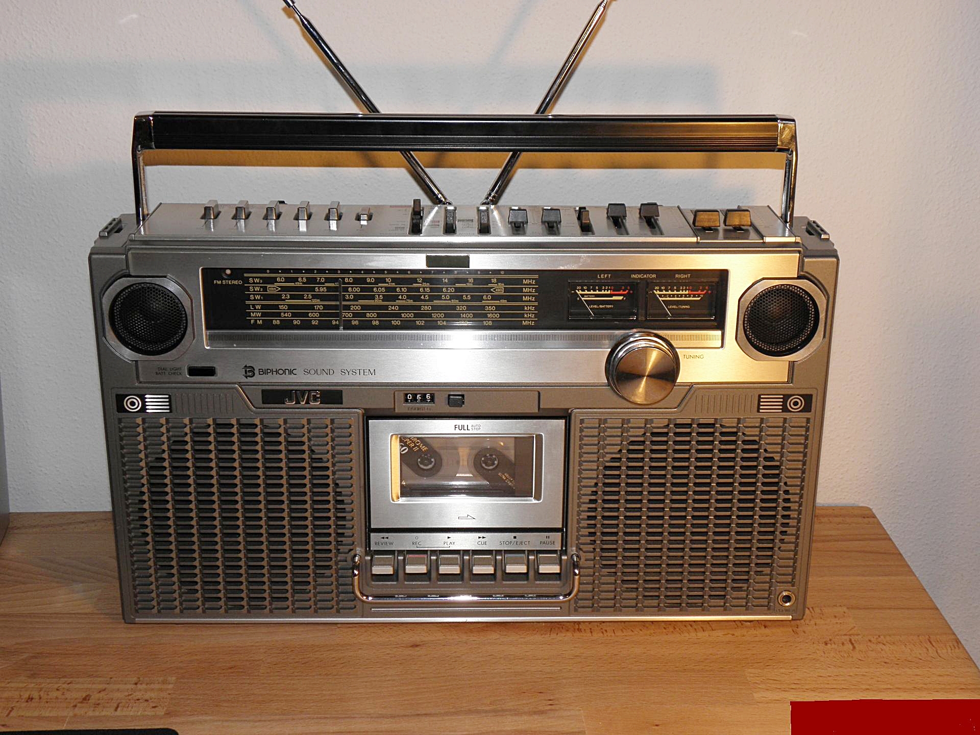 Ну если можно говорить, как о типичной, классической форме/виде -геттобластера, какой он должен быть, мне лично представляется, JVC М70 -это и есть само выражение классического образа машины 80-х, от него просто отдает этим. Немного брутальности, четкие линии, всё на своем месте, нет ничего лишнего,размер и форма, цвет тоже правильный, вот всё это образует и отражает в общий классический вид бумбокса, всё это чувствуется, когда он стоит перед вами. Ну и конечно отличное звучание и приём. -В этом аппарате просто нет недостатков. -Не знали?