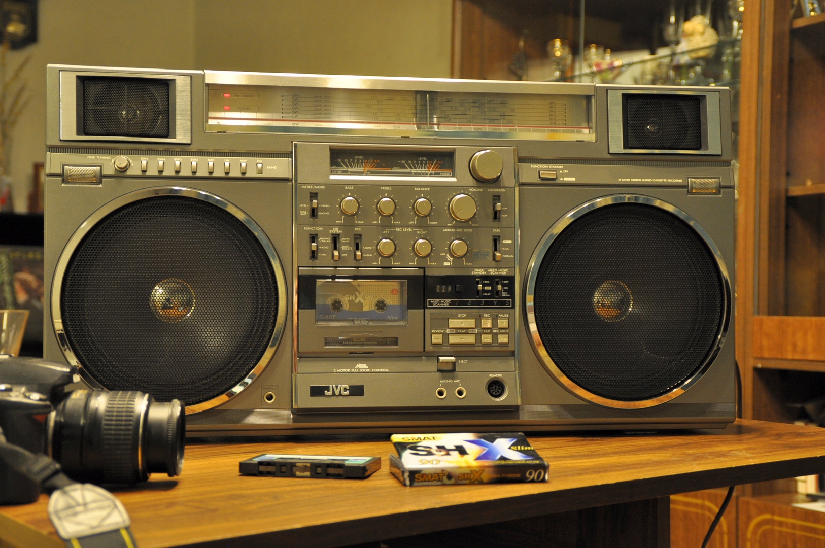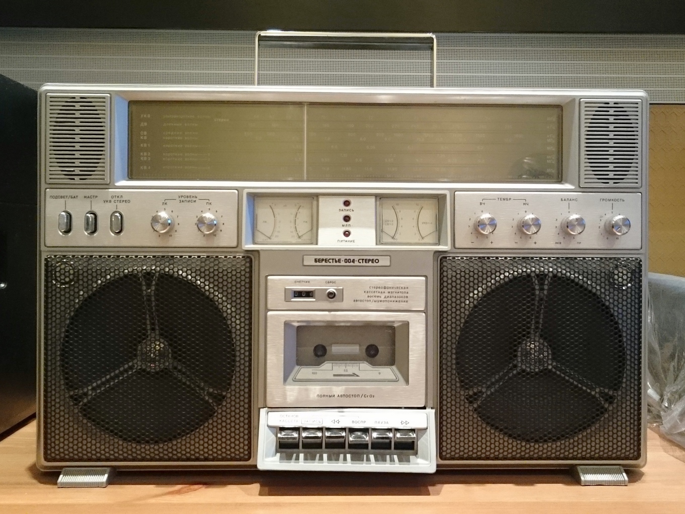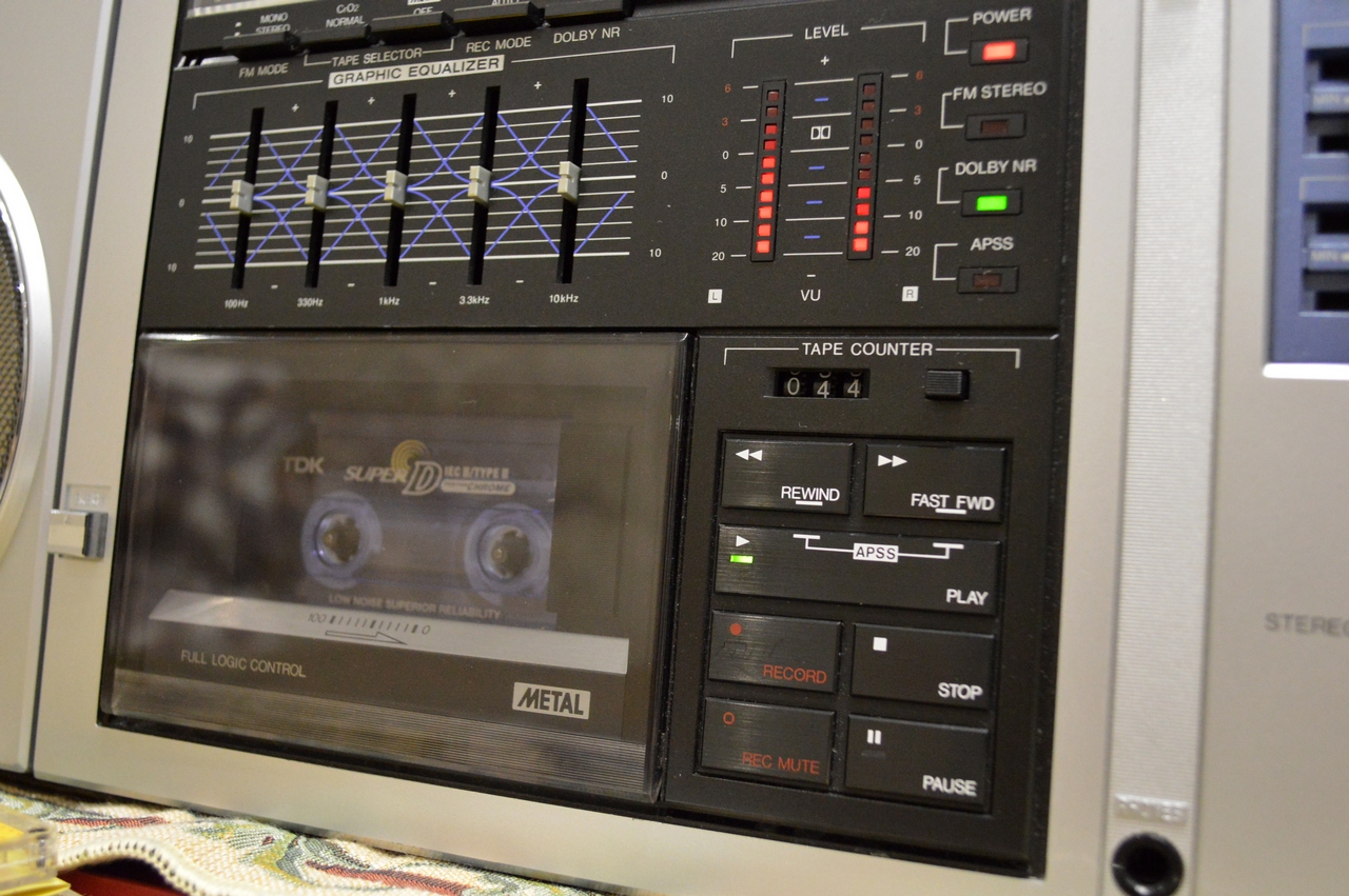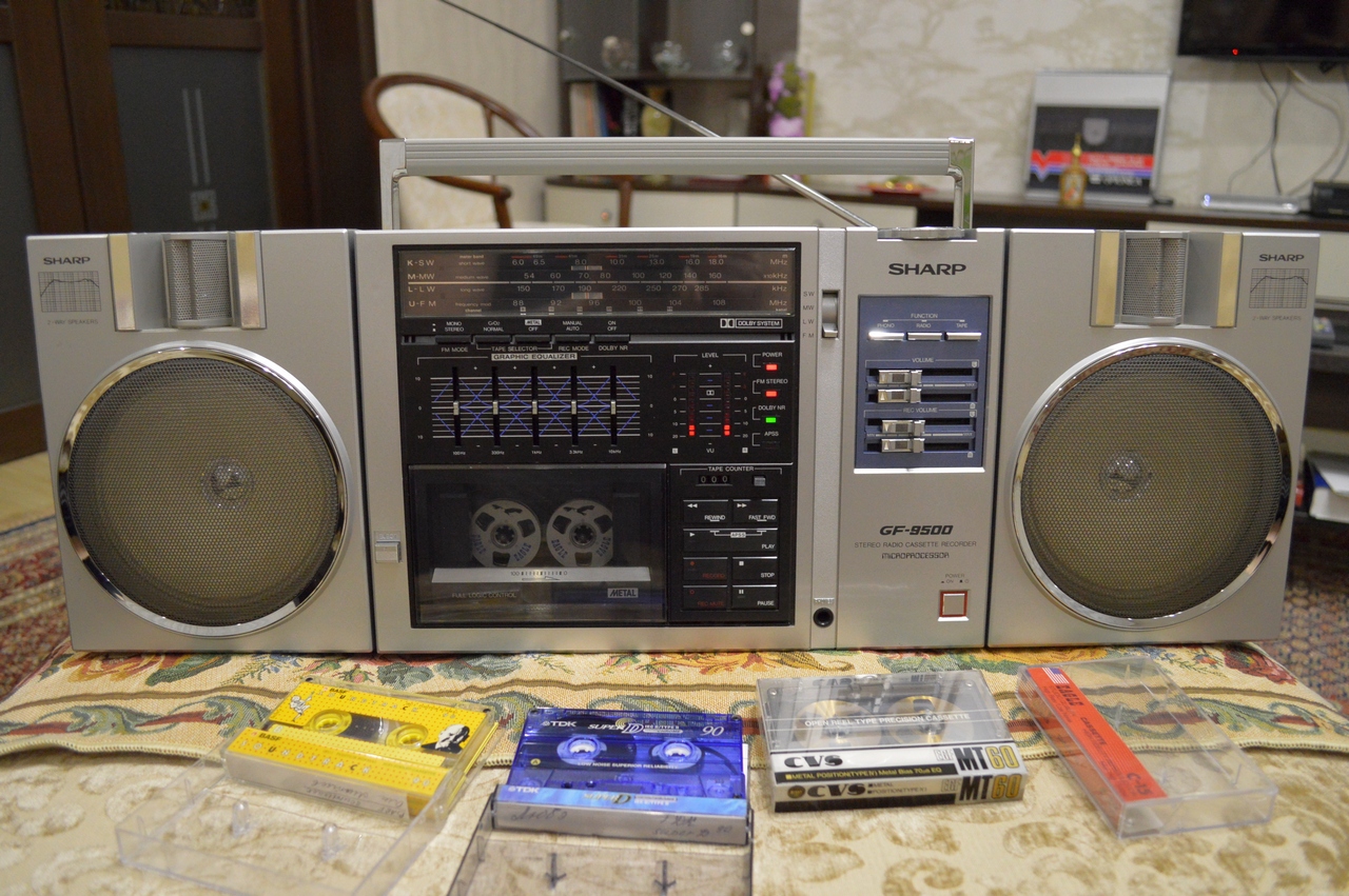 А вот результат моих поисков на протяжении года, из 4-х последних JVC M90. Всё родное, головка meta perm в идеале - как новая. Чрезвычайно сочное звучание. После замены пассиков, смазки, полного ремонта и наладки по тест лентам и приборам, аппарат заиграл поразительно чисто. Точная настройка позволяет неотличимо на слух записывать кассеты 3- типов. Разница, по сути, только в шумах, и больше зависит от качества ленты... Это одна из немногих переносных магнитол, способных записывать кассеты на очень высоком уровне. АЧХ простирается до 18 кГц по измерениям согласно стандарту МЭК (-20 дБ, на металле). При условии незапиленной головки. В противном случае, при цикле записи-воспроизведения появляется сильная паразитная амплитудная модуляция (ПАМ), отражающаяся на слухе в виде "расхлябанности" звука. Обычно мастера "не заморачиваюся" добросовестной шлифовкой головок или их подбором и качественным ТО, и поэтому, большинство аппаратов не способны нынче выдавать свои высокие характеристики, заложенные в них изначально 30 лет назад. Особенно это касается топовых магнитол, которые, при должном обращении, способны поразить своей игрой.