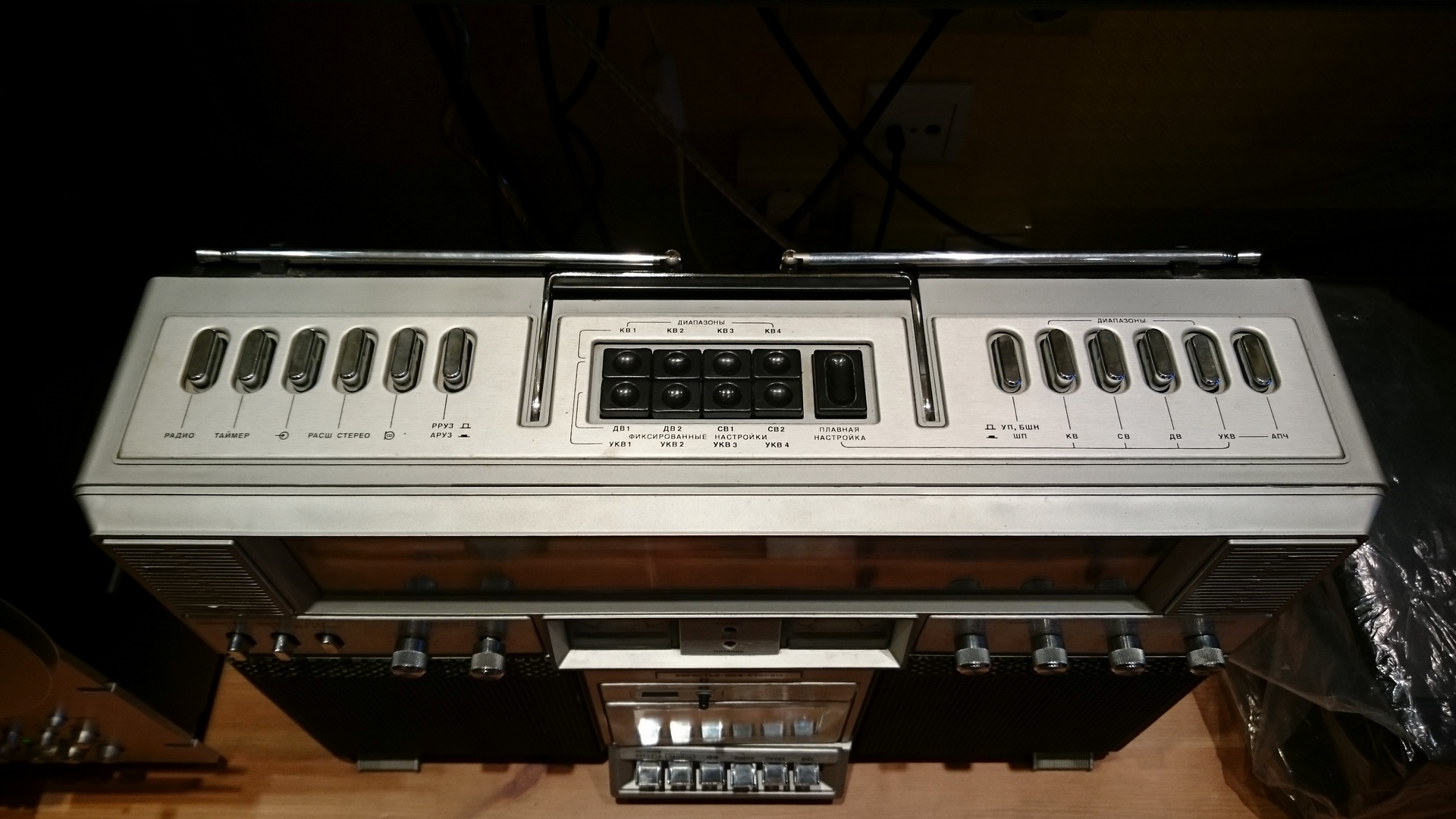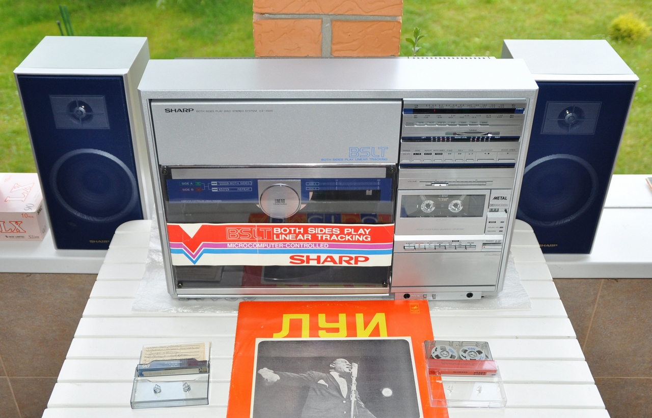 Так много девушек красивых, и не очень? Sharp VZ - 3500Z Мне недавно попался, почти случайно, экземпляр в удивительном состоянии. VZ - 3500Z, отличается от VZ - 3500H, в основном, наличием светодиодных индикаторов уровня сигнала, разбегающимися от центра, и колонками. Акустика двухполосная (16 см и 5см), с фазоинверторами. Аппарат как новый по виду и по работе. Иглы, головка магнитофона, родные и в идеале. Аппарат долгие годы хранился у вдовы щепетильного любителя, как гласит легенда...