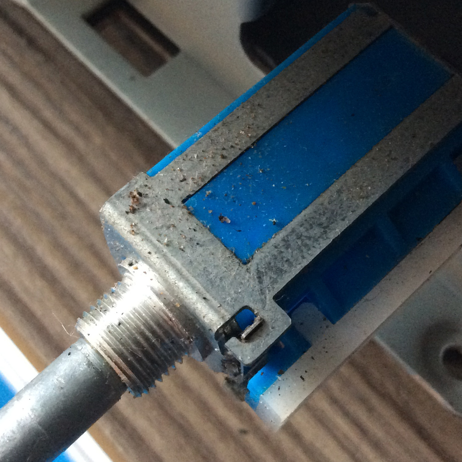 2. Я нашел и смазал ровно одно длинное соединение - от ручки громкости до самого резистора (не ошибаюсь?) идет длинный латунный штифт, на нем есть шайбочка крепления к панели. Она почти не крутилась - я её промыл и капнул маслом - великолепно, мягко вращается. Вопрос в другом - есть несколько переключателей типа ALPS (?), так вот ровно под декоративно ручкой где штифт уходит внутрь корпуса есть место - нужно ли в него добавить капельку масла? Я на фотке покажу это место обязательно, просто чуть позже. И есть ли другие места, требующие смазки?