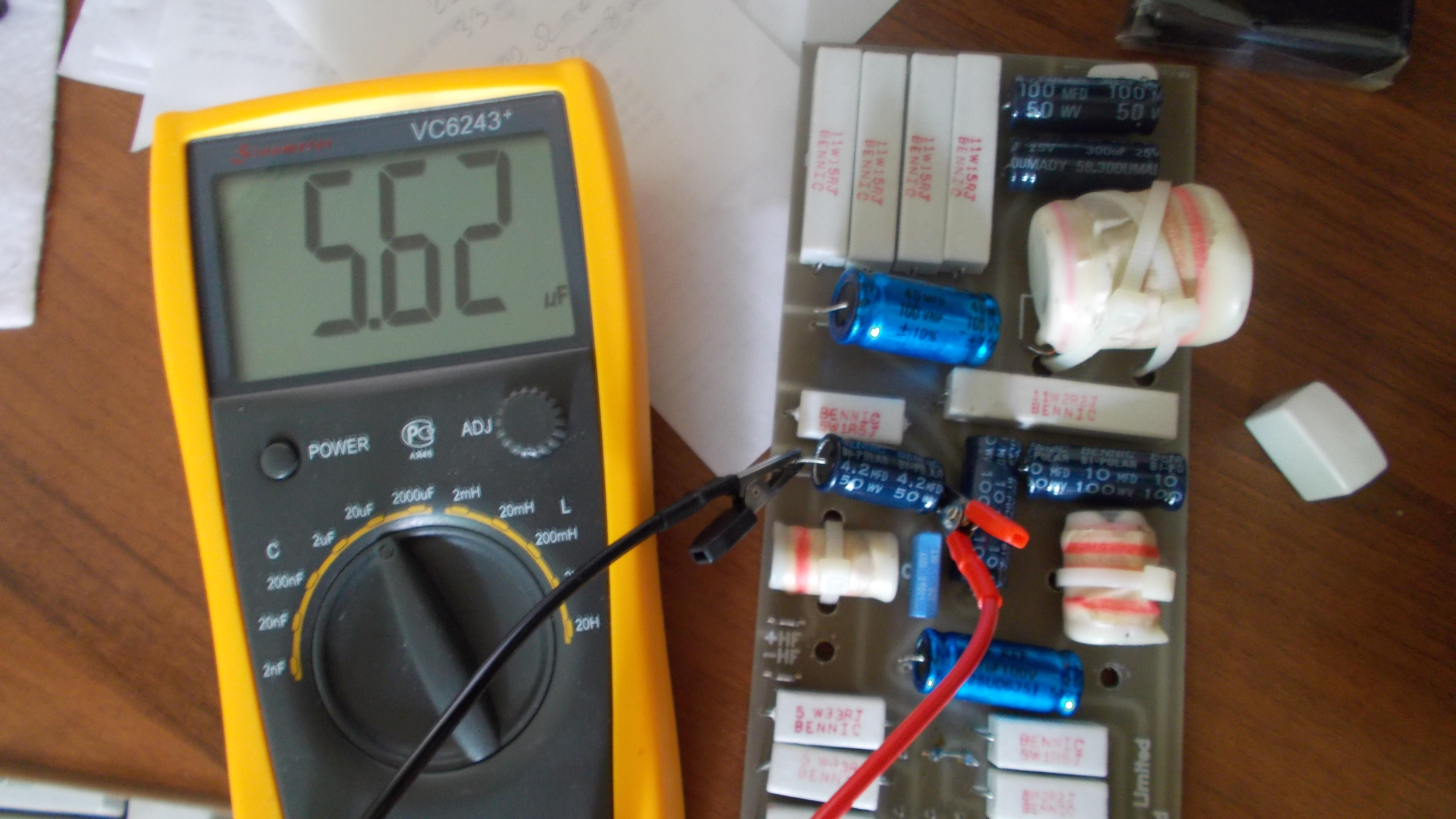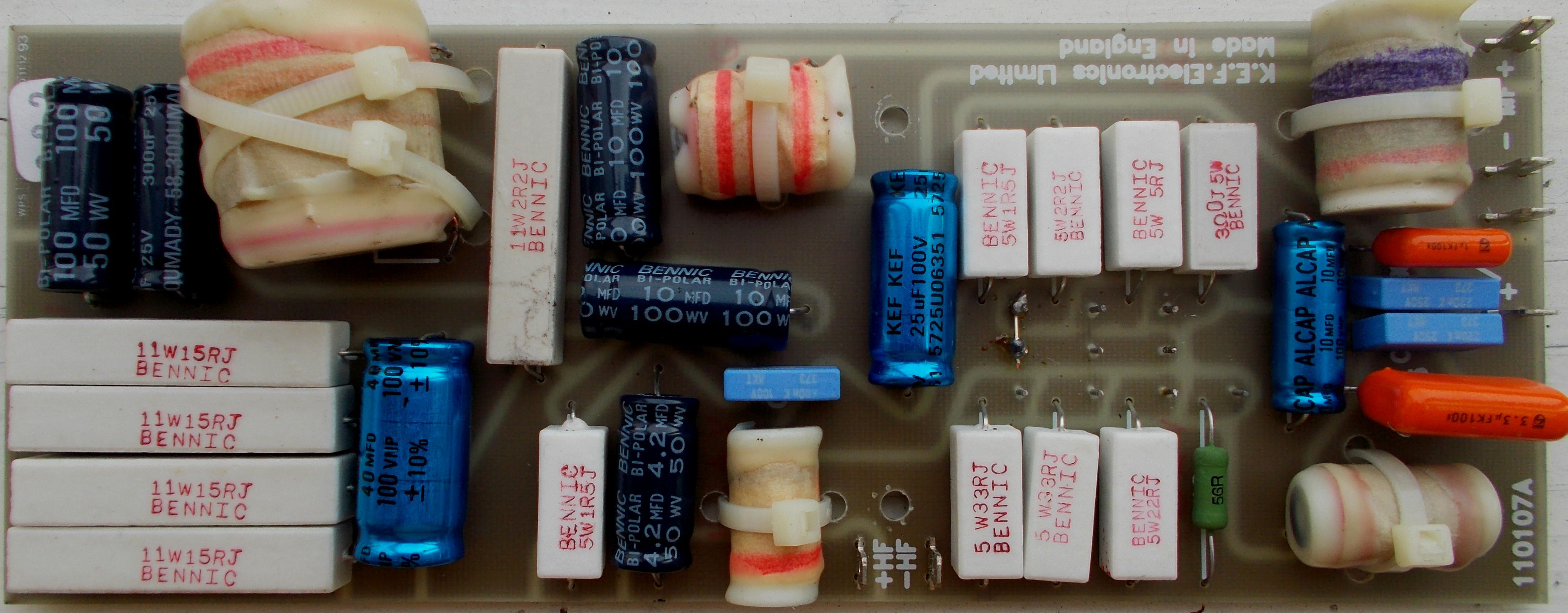 Я не буду ничего говорить про ваши ас, хороши они или нет, это решать вам. Но что бы оценить их, нужно с чем то сравнить... А теперь вашему вниманию предоставляю фильтр  топовых KEF  Reference 107/2. Как можно видеть, в них один китайский и тайваньский мусор. Снизу чуть левее середины фото кондер (электролит!!!) на 4,2 мФ имеет на самом деле емкость 5,62 мФ в одной колонке и почти 7 мФ !!! в другой. Отклонение от заявленного номинала до 80% !!! при допустимых 2%!!! Вопрос: откуда тут взяться звуку-то?